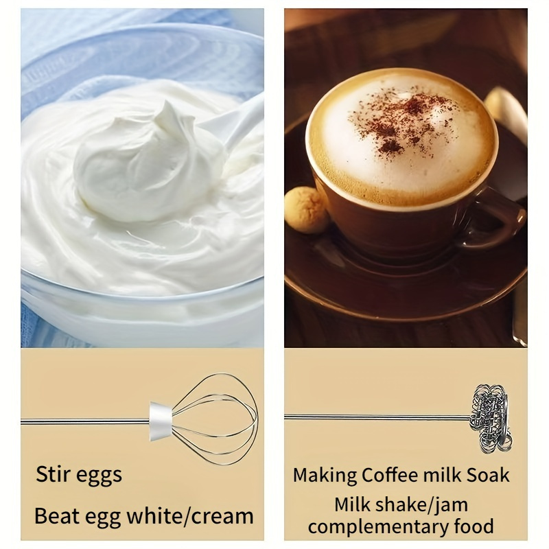 Электрический ручной взбиватель для молока 2-в-1, перезаряжаемый пеномейкер с насадкой для взбивания яиц