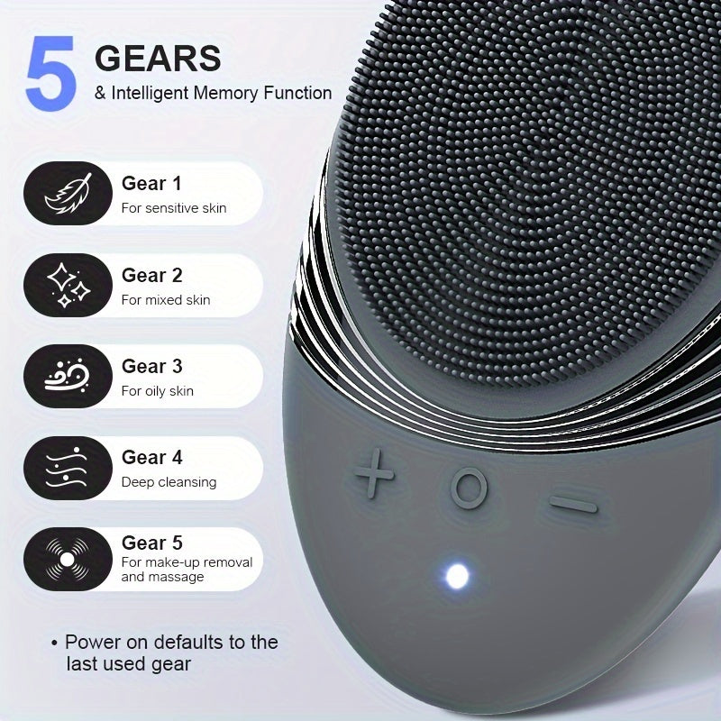 Электрическая силиконовая щетка для умывания лица с мягким отшелушиванием и массажем 5 уровней