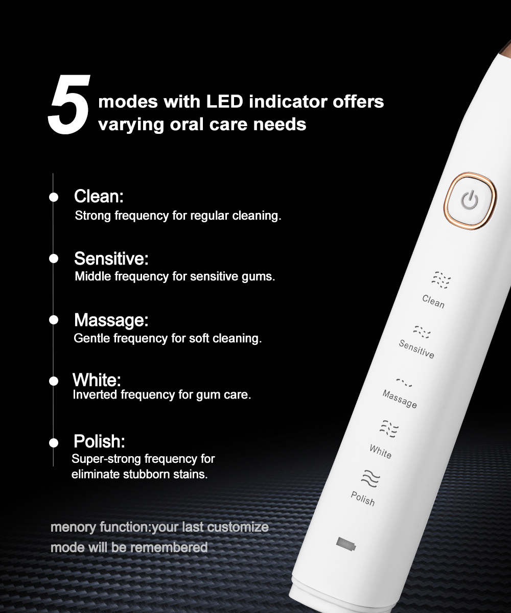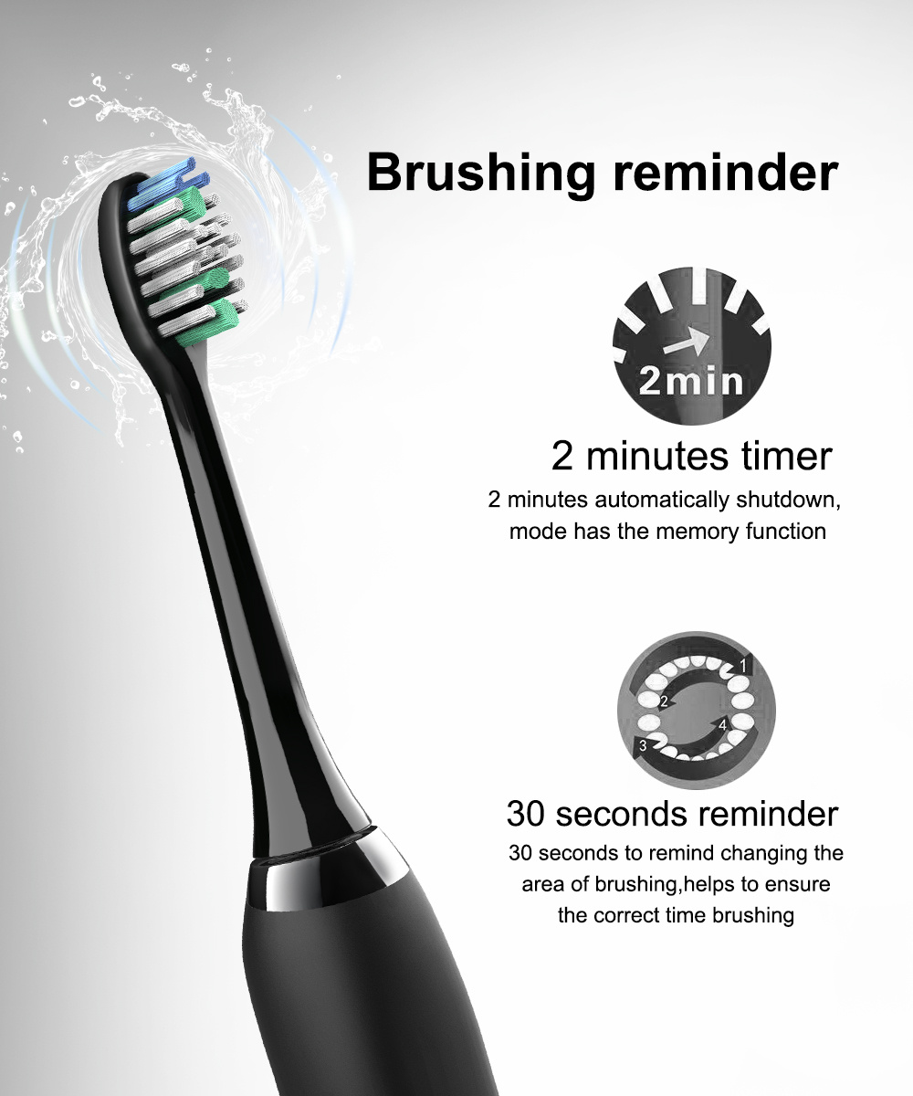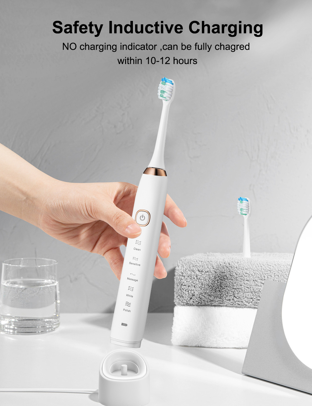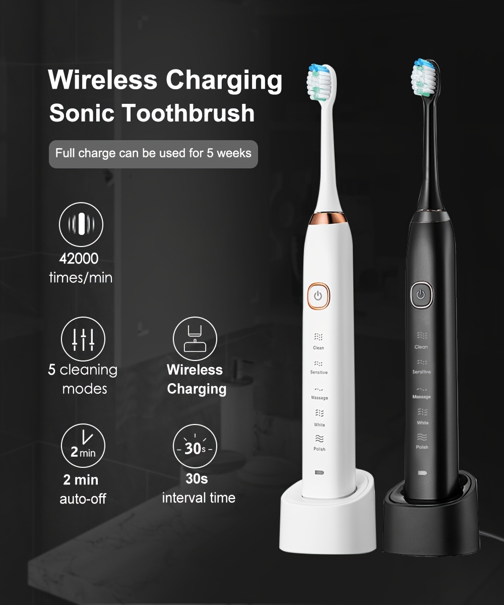 Электрическая звуковая зубная щетка с перезаряжаемой батареей, 8 сменных насадок и дорожным чехлом