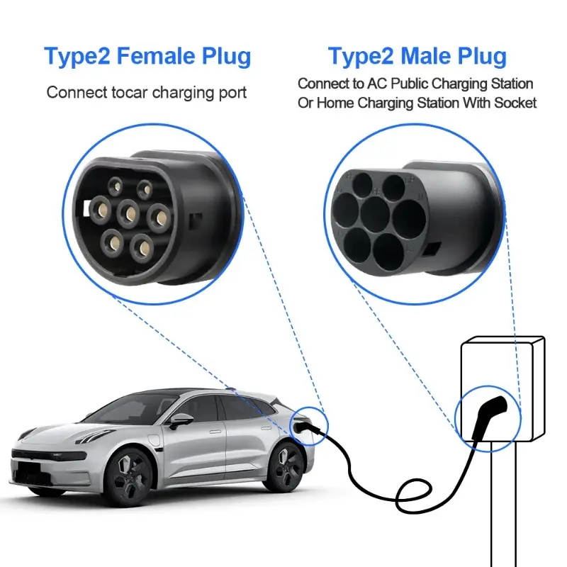 Кабель для зарядки электромобилей 16A/32A 5м Тип 2 IEC 62196 AC для общественной зарядки