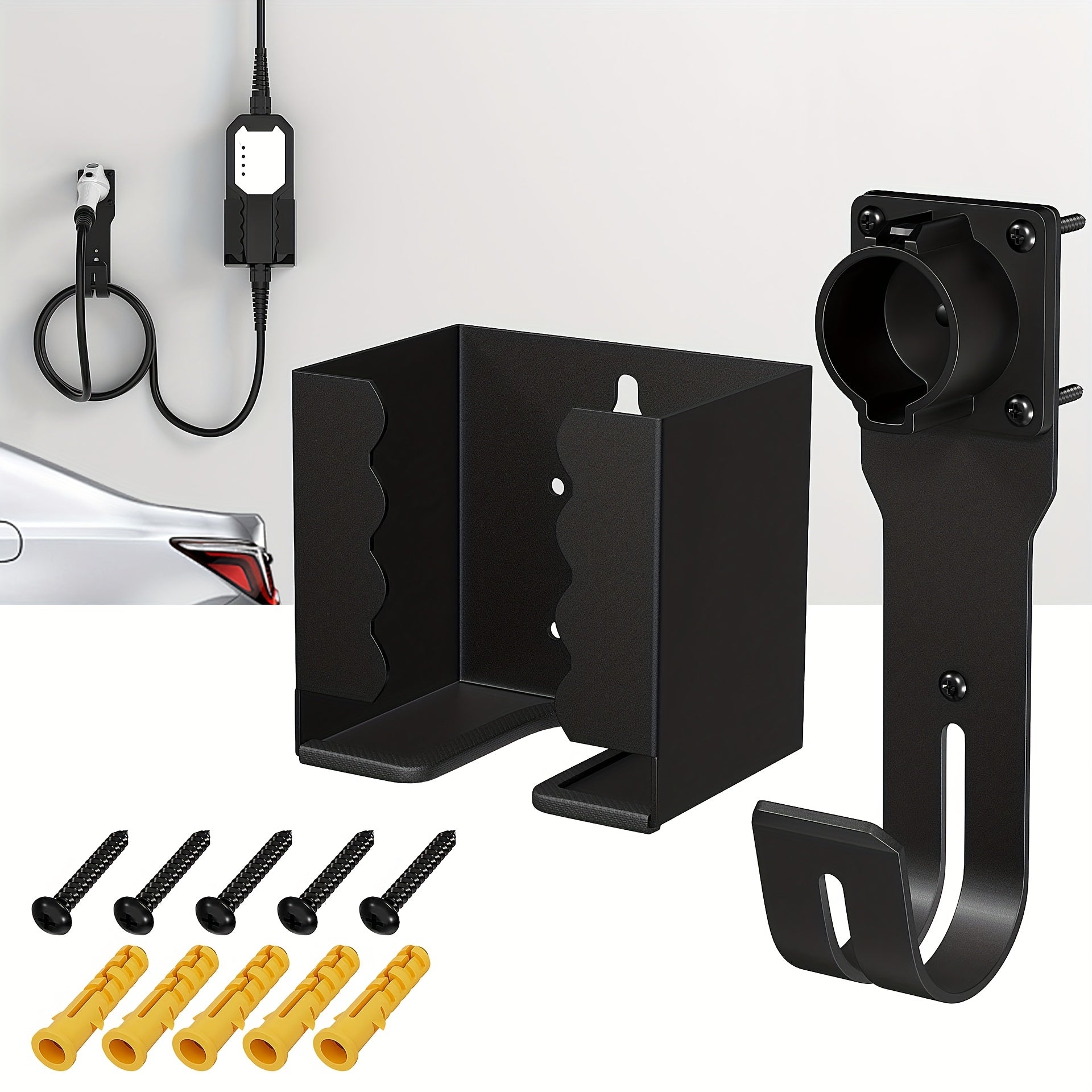 Комплект настенного зарядного устройства для электромобилей с черным кабельным держателем для гаража, прочный