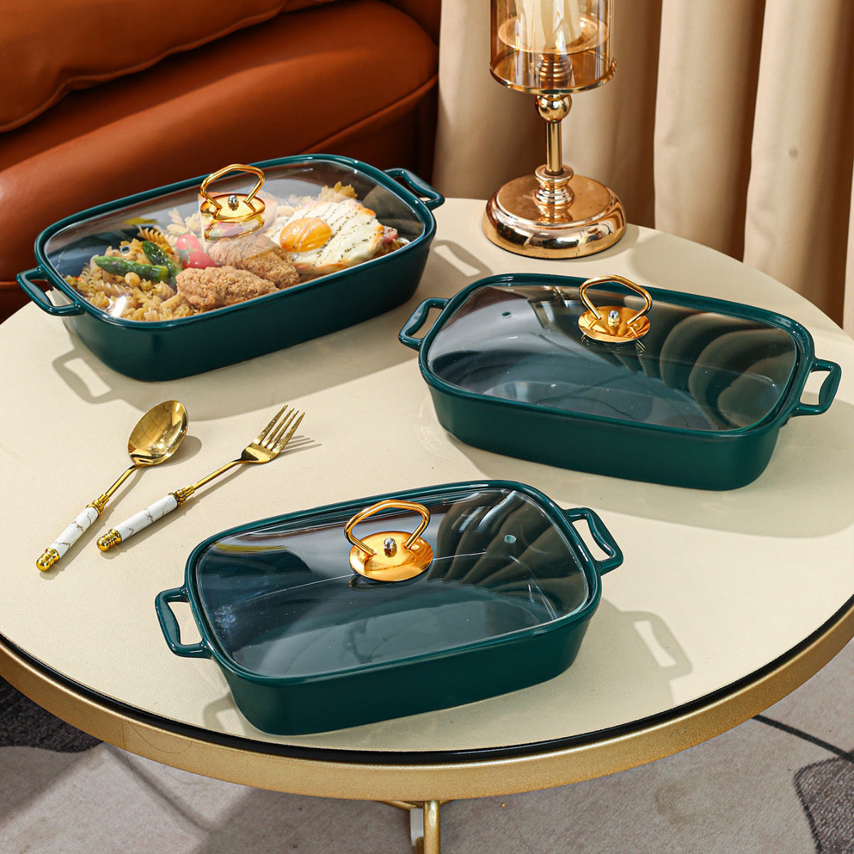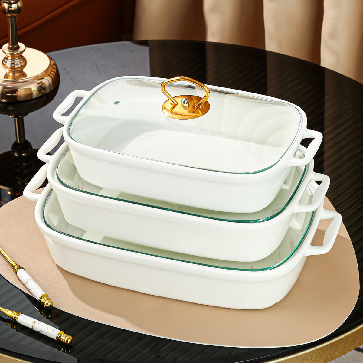 Элегантная керамическая кастрюля с крышкой из стекла - универсальная посуда для запекания, жарки и подачи - прочная фарфоровая посуда для дома и вечеринок