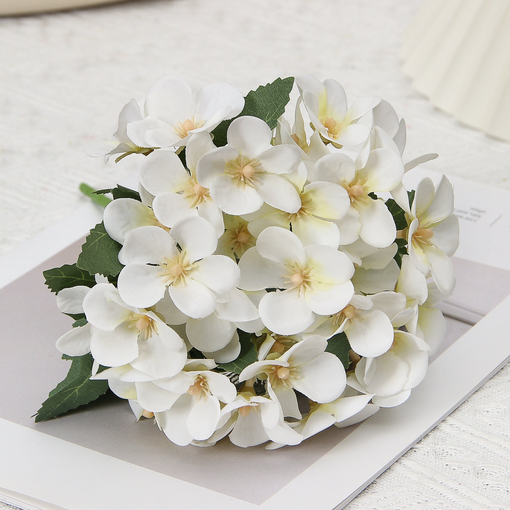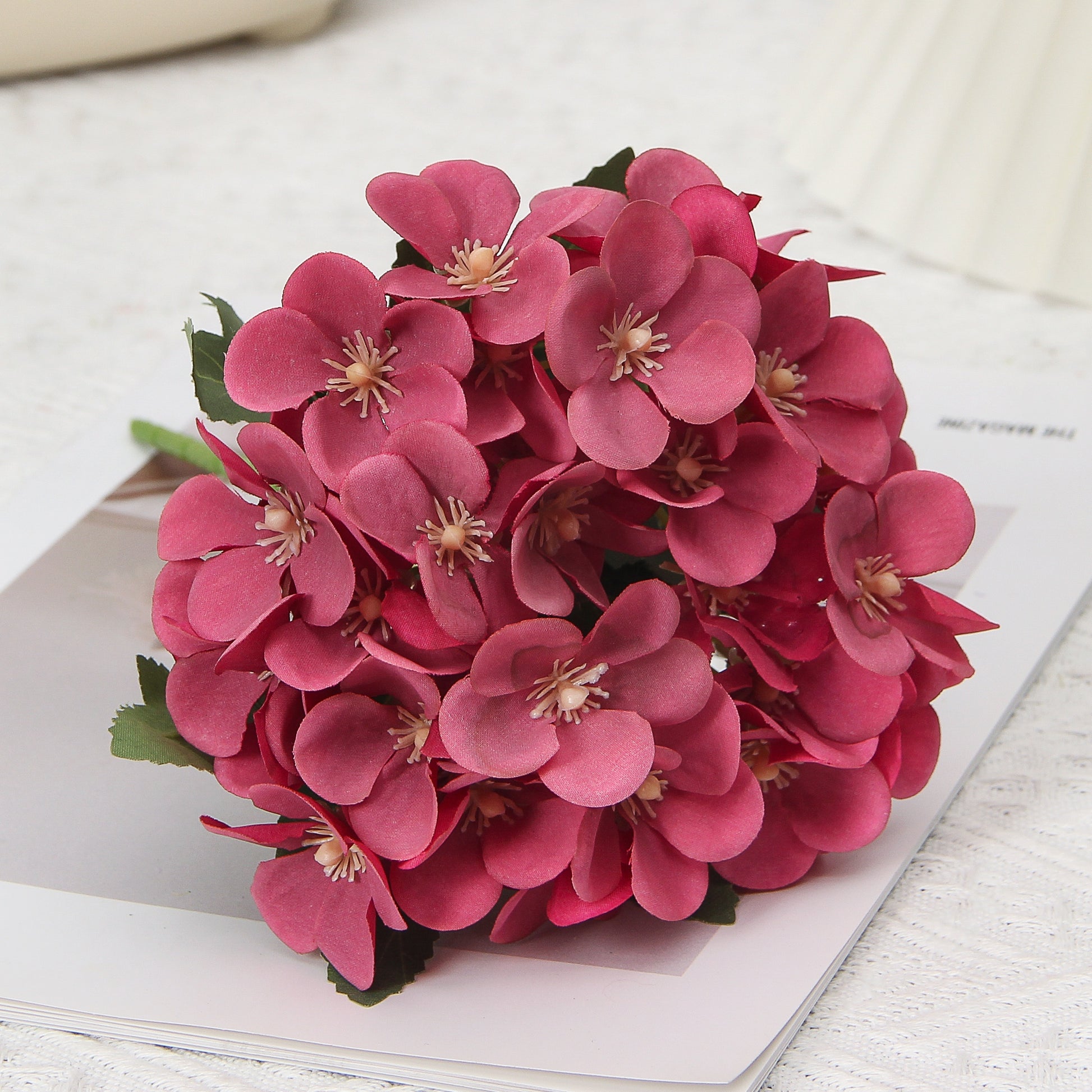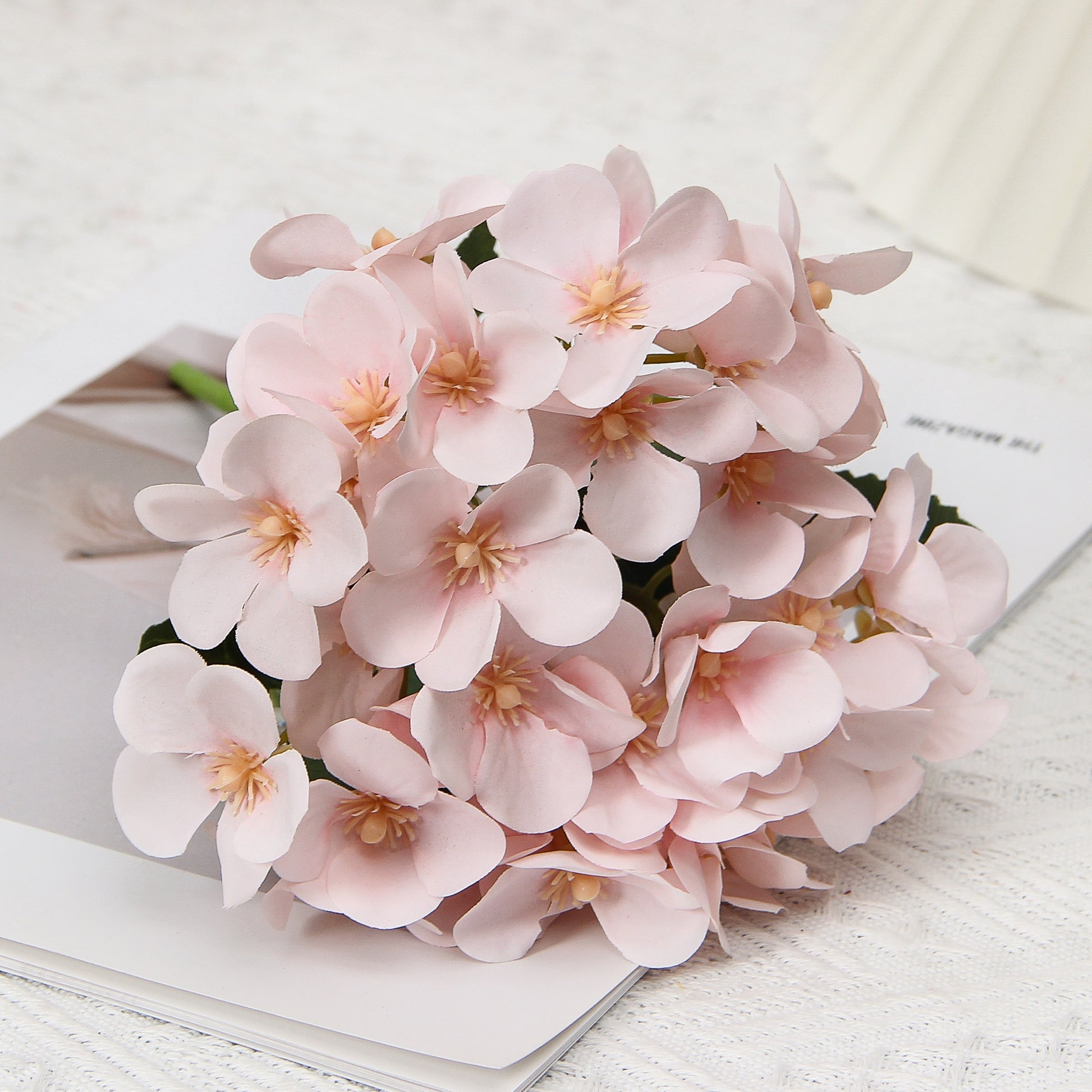 Элегантная искусственная композиция из цветов бегонии в ткани, идеально подходящая для любого стола.