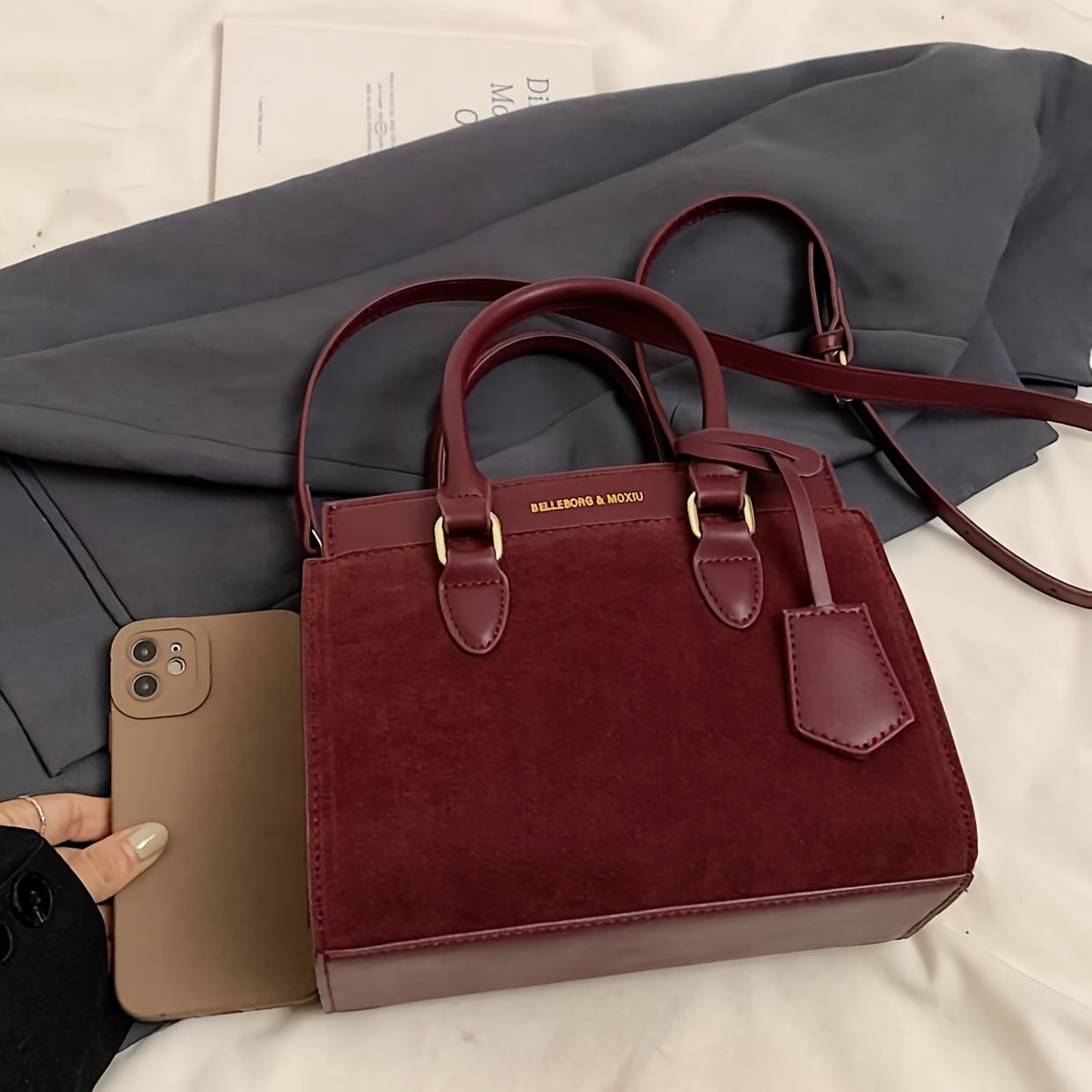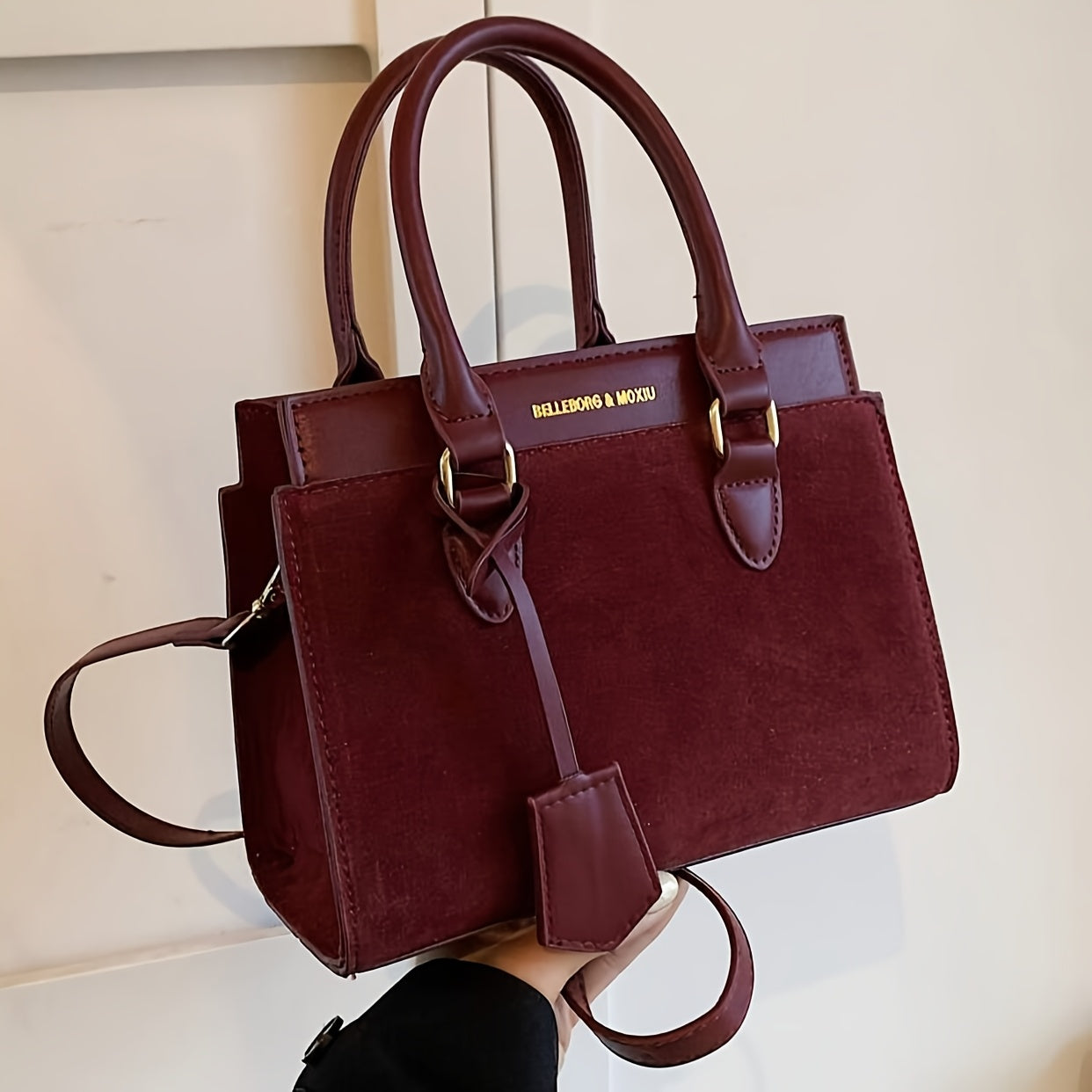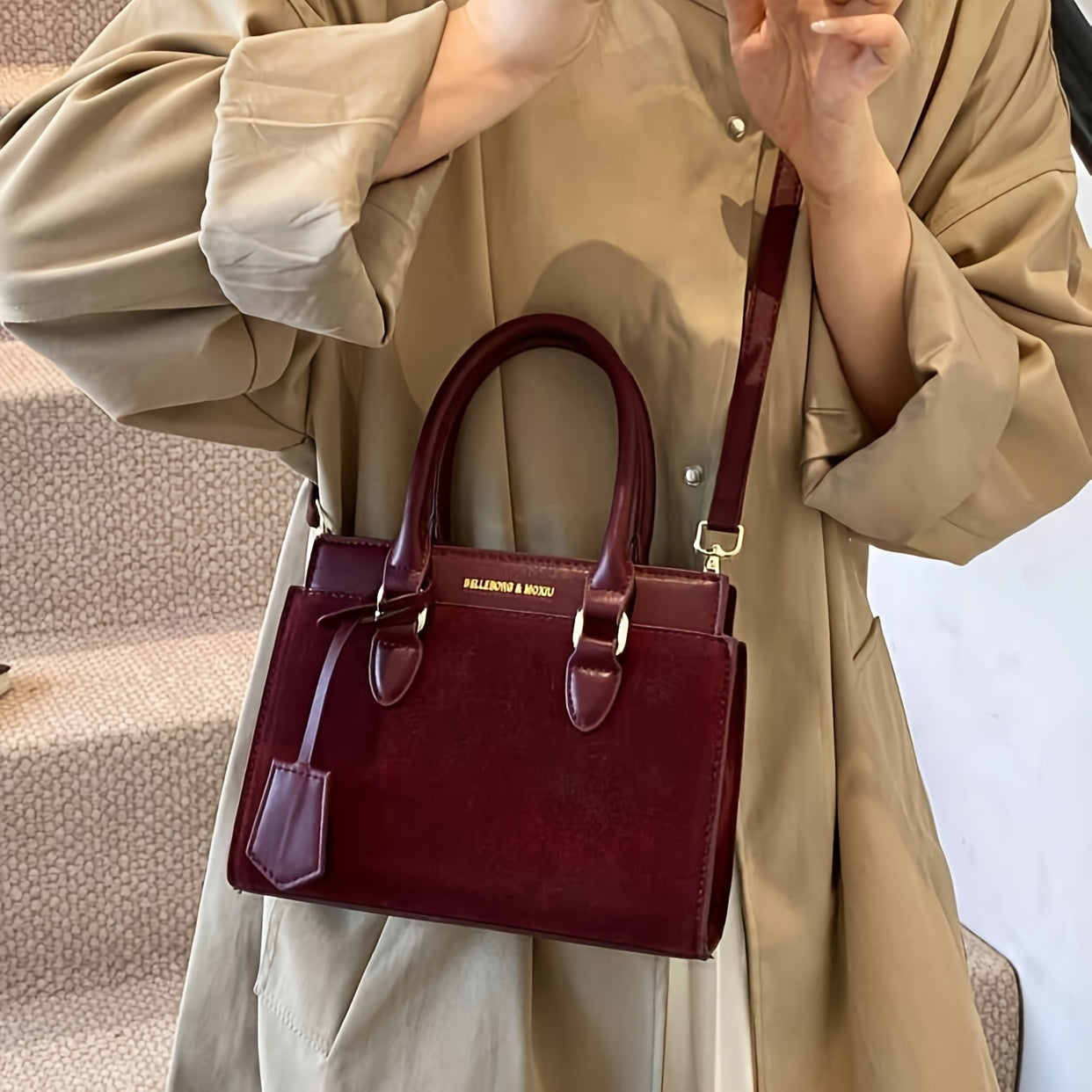 Элегантная бордовая сумка-тоут с золотистой фурнитурой, съемным плечевым ремнем и застежкой на молнии для женщин.