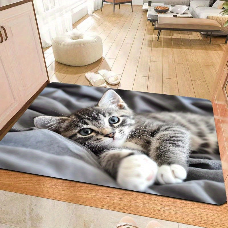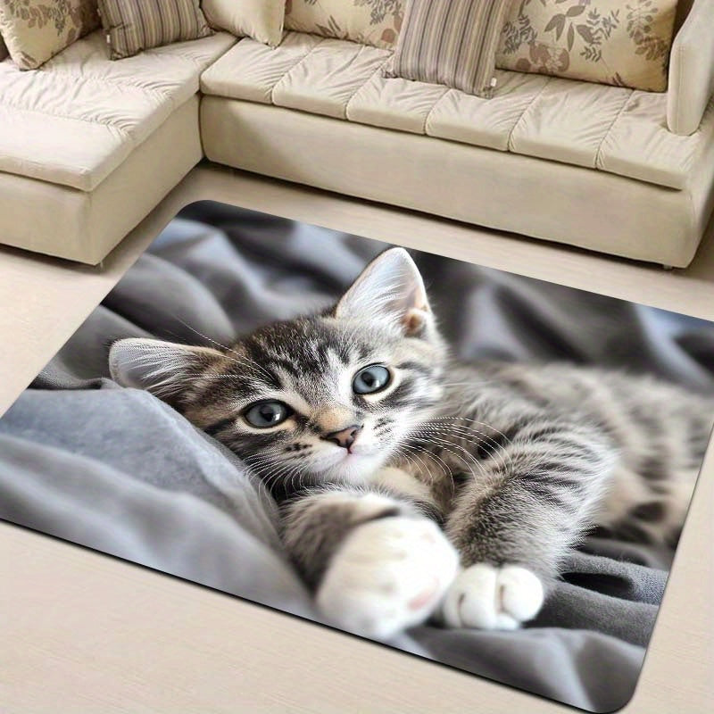 Элегантный коврик для пола с рисунком кошачьей кровати — функциональный коврик для игровой комнаты, ванной комнаты, кухни и жилых помещений — легкоочищаемый полиэстеровый коврик с противоскользящей ПВХ-основой