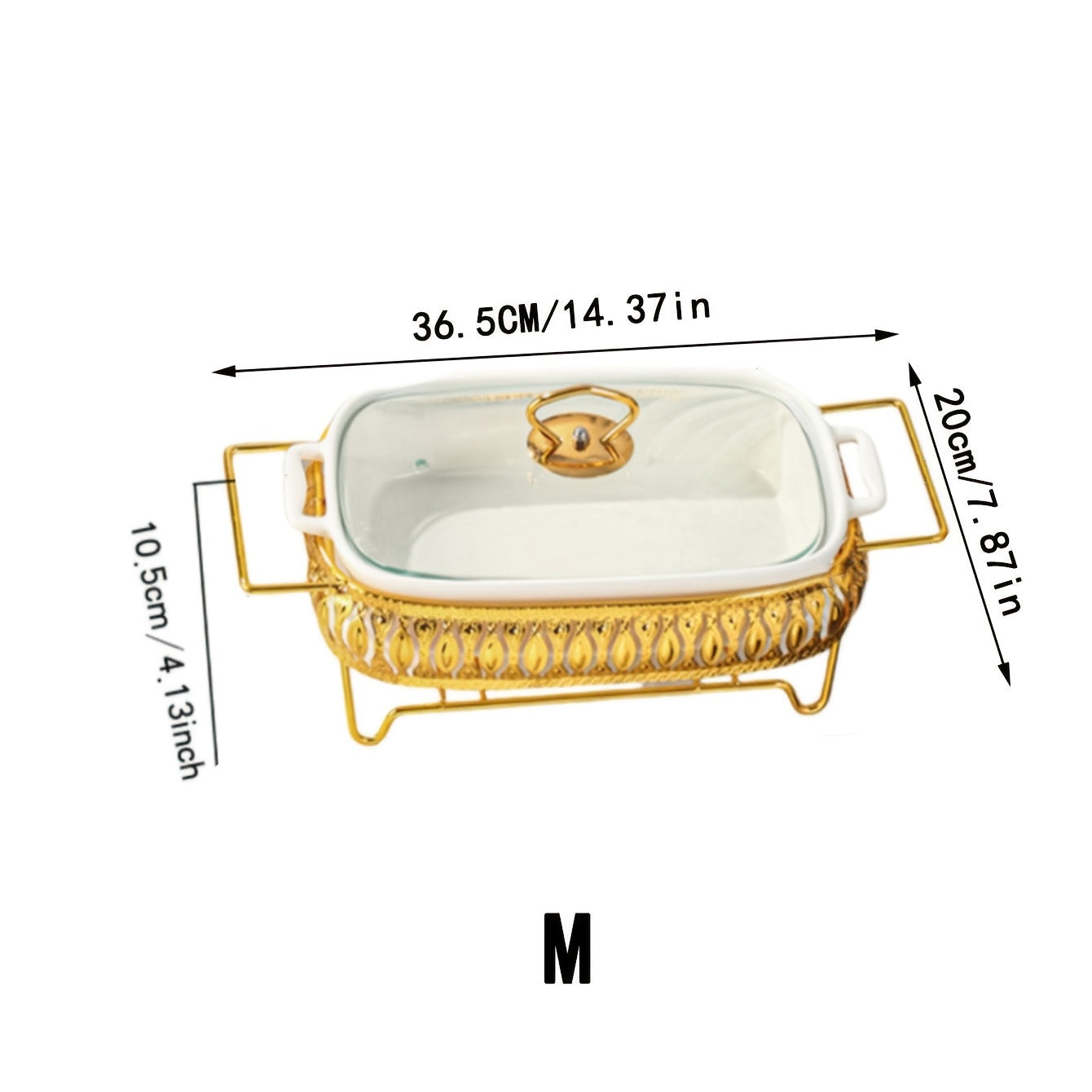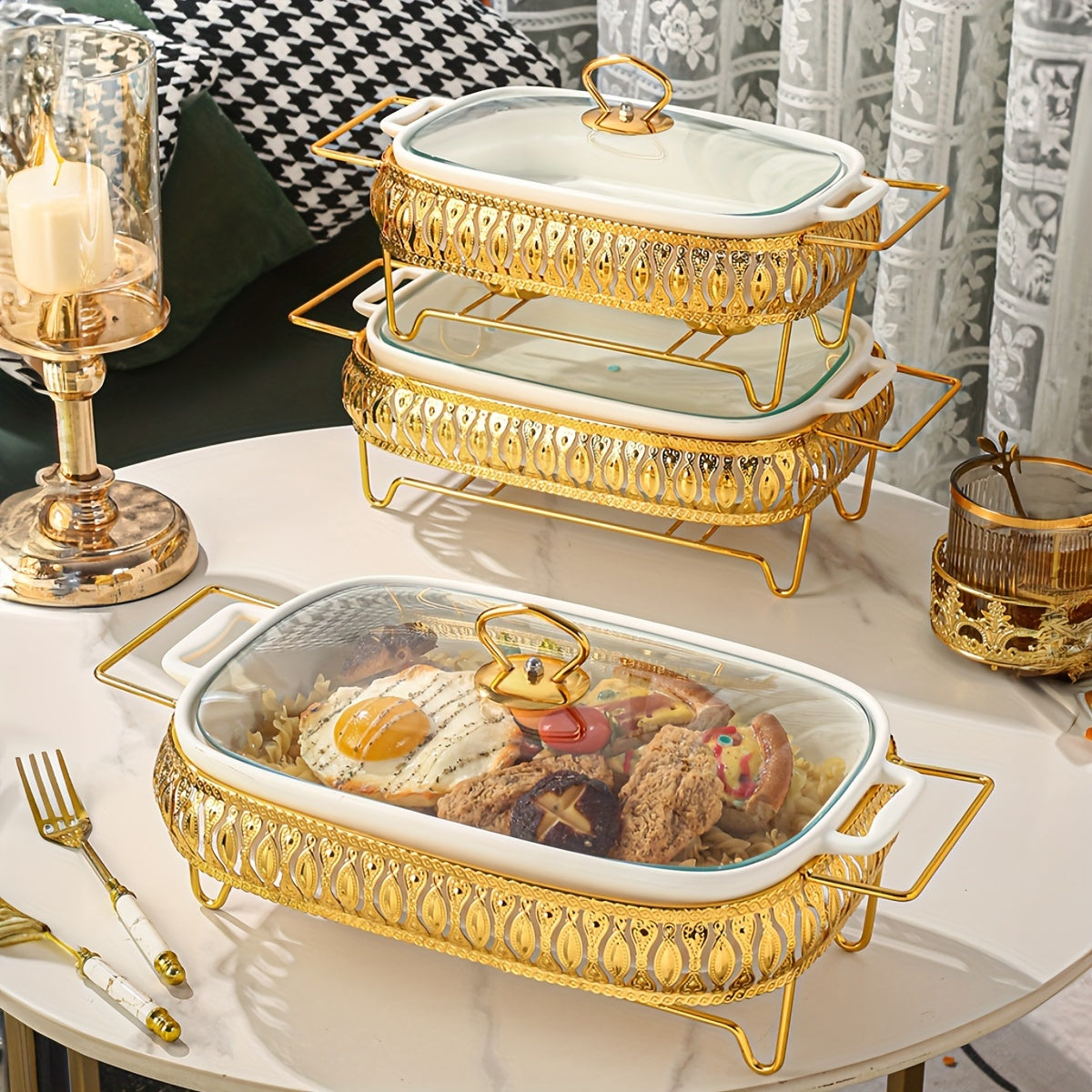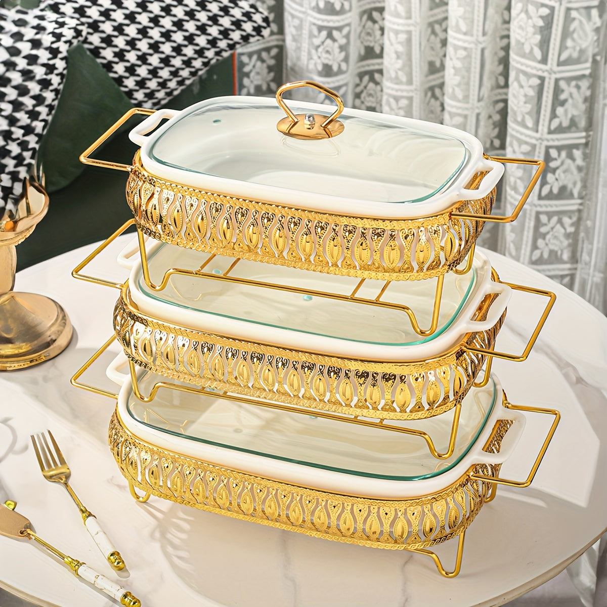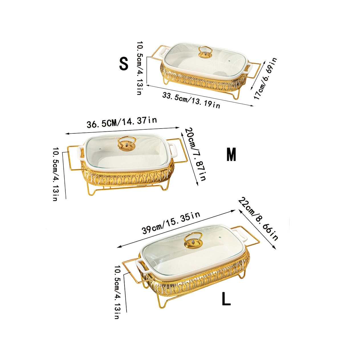 Элегантный набор керамических сервировочных блюд с крышкой, подсвечник и золотая отделка - идеально подходит для вечеринок, домашнего угощения и коллекции посуды.