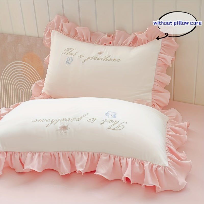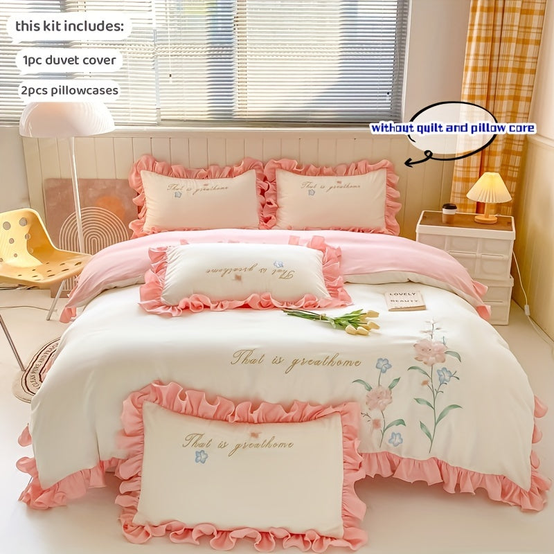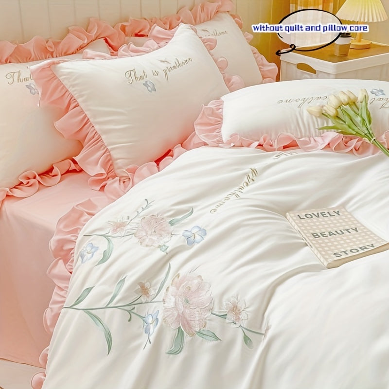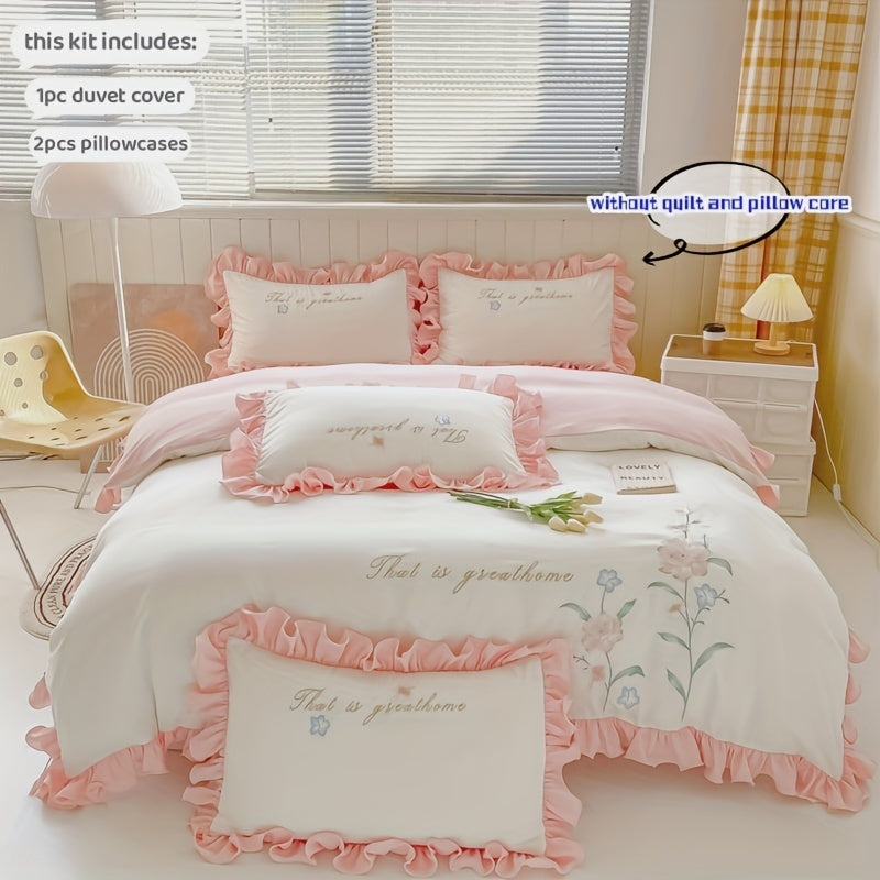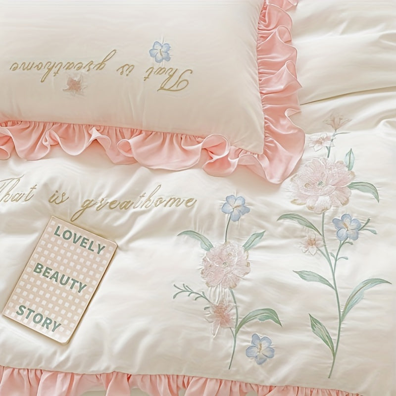 Элегантный вышитый комплект постельного белья с кружевным чехлом на пуховик и наволочками