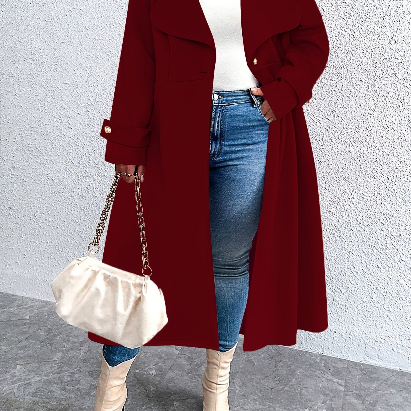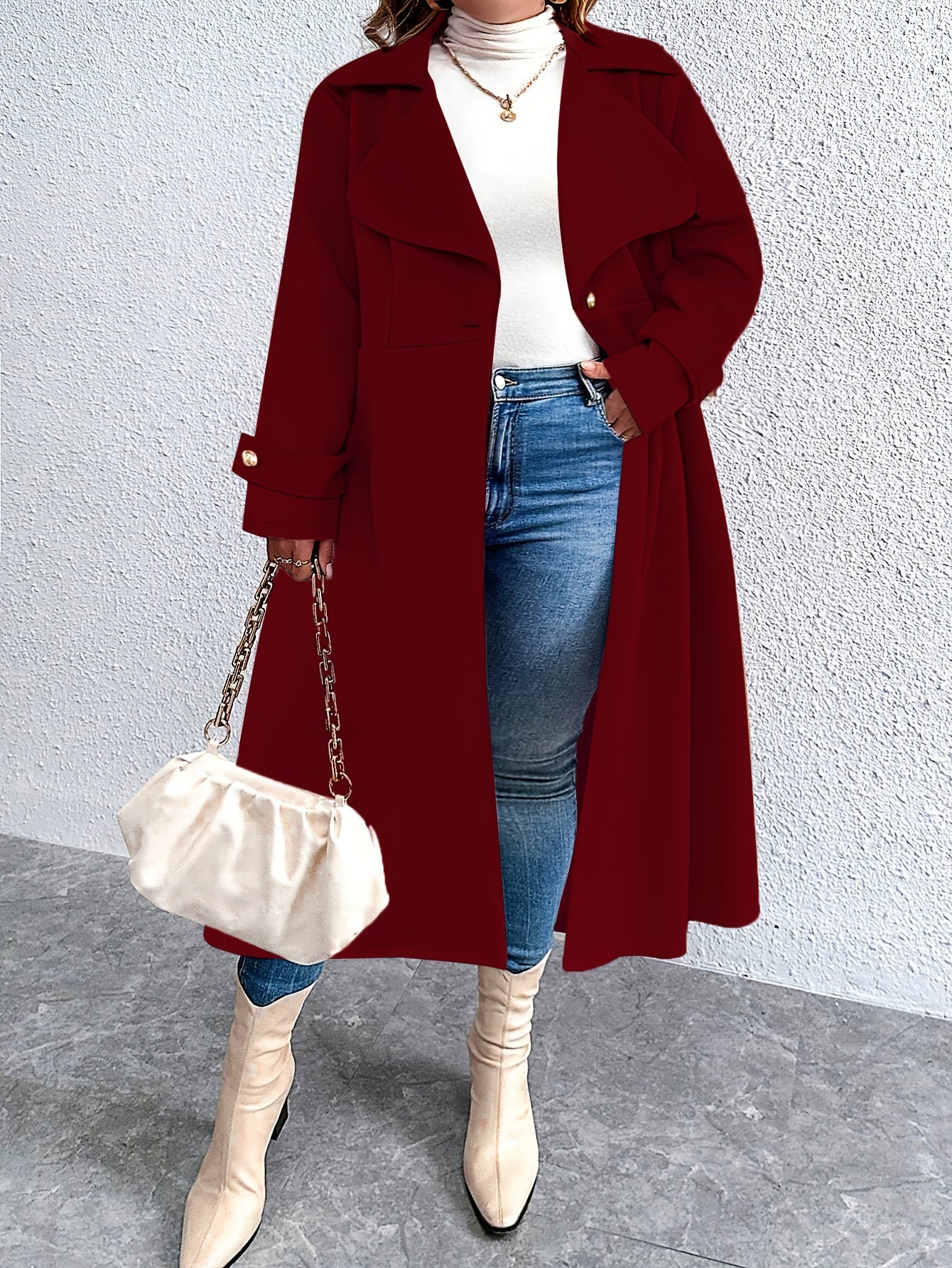 Пальто большого размера с длинной линией, с застежкой на пуговицы и вырезом-отложным воротником для осени и зимы
