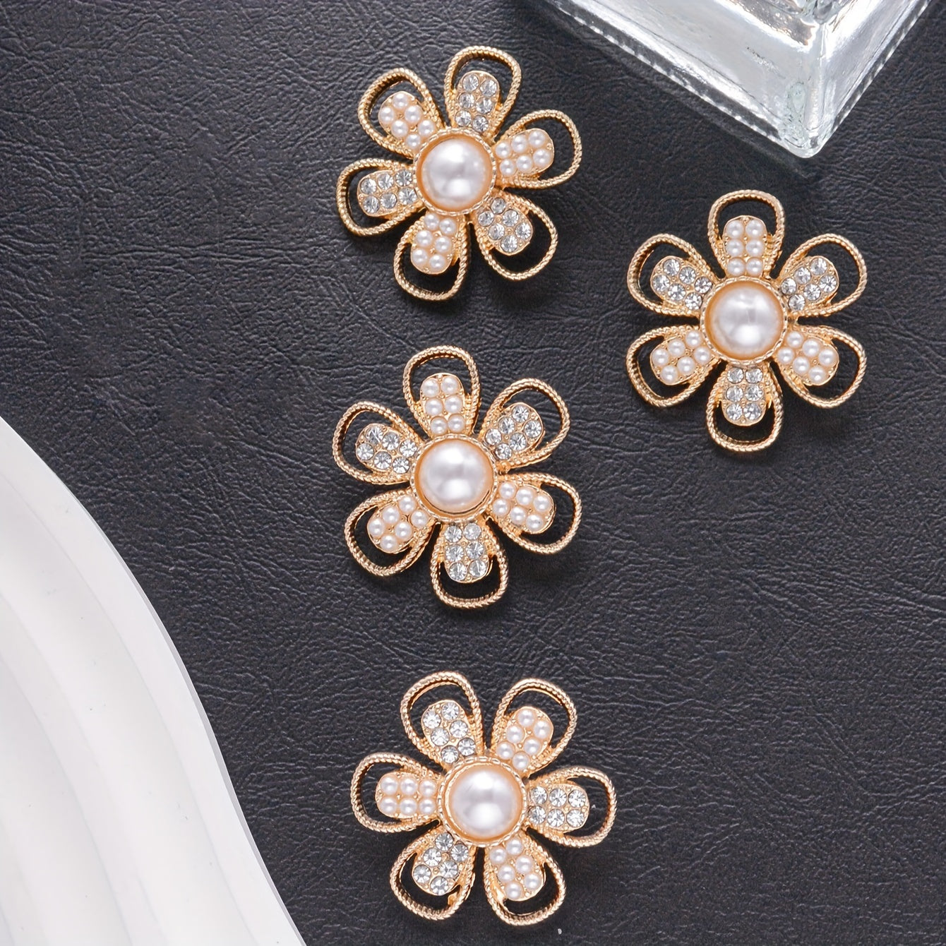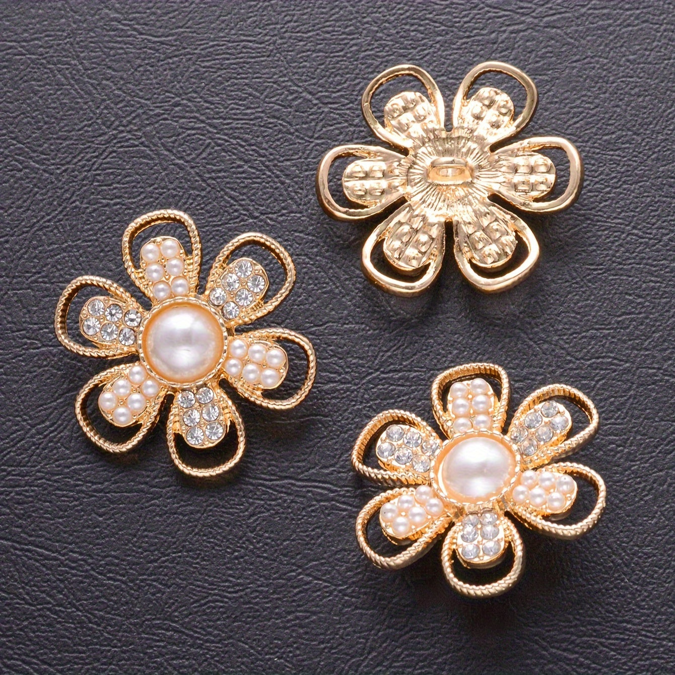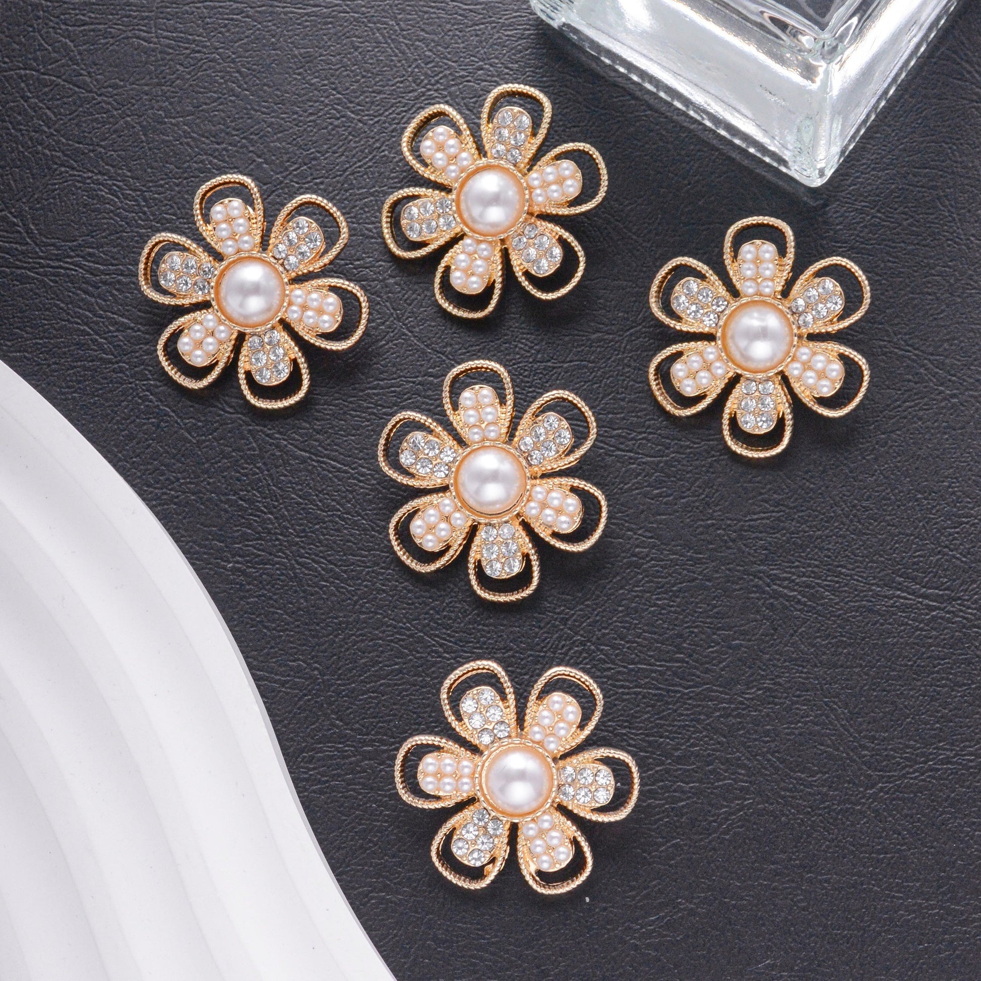 Элегантный набор из 5 кнопок в форме цветов с перламутровыми и стразовыми деталями - идеально подходит для свитеров, пальто, пиджаков и проектов DIY в моде.
