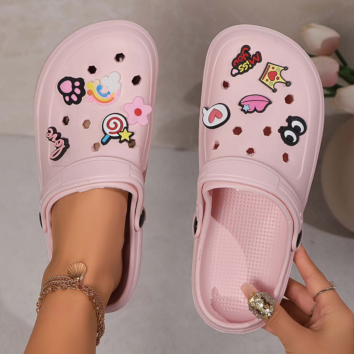 Элегантные летние сабо для женщин - дышащие пляжные сандалии с толстыми подошвами и деталями-талисманами, универсальная обувь без задника для прогулок на свежем воздухе.