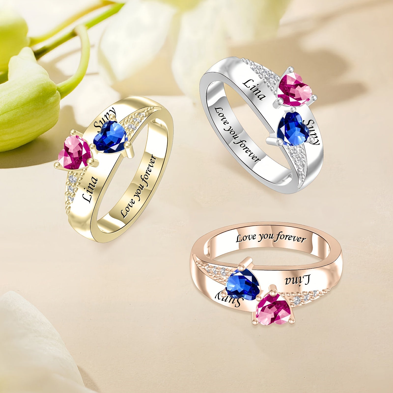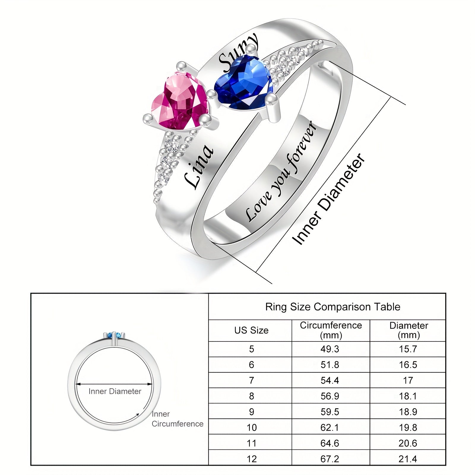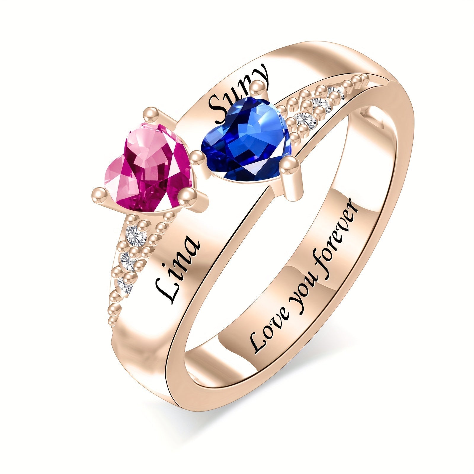 Женское серебряное покрытое медью кольцо с индивидуальной гравировкой имени и камнем рождения