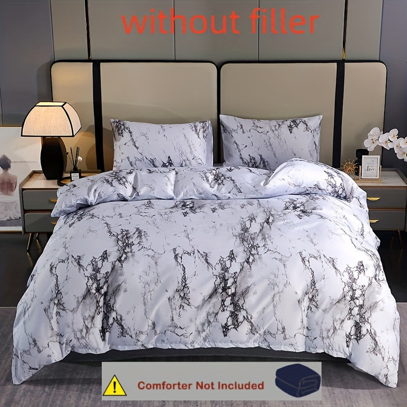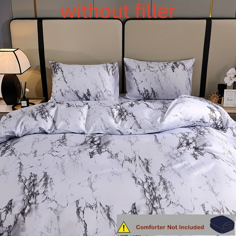 Yuqori sifatli oq marmar bosma duvet qopqog'i to'plami, yostiq qoplami bilan, yotoqxona va mehmon xona uchun