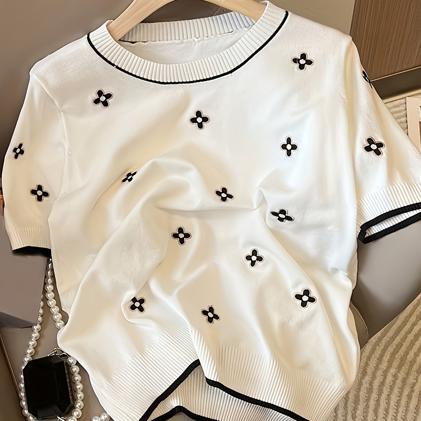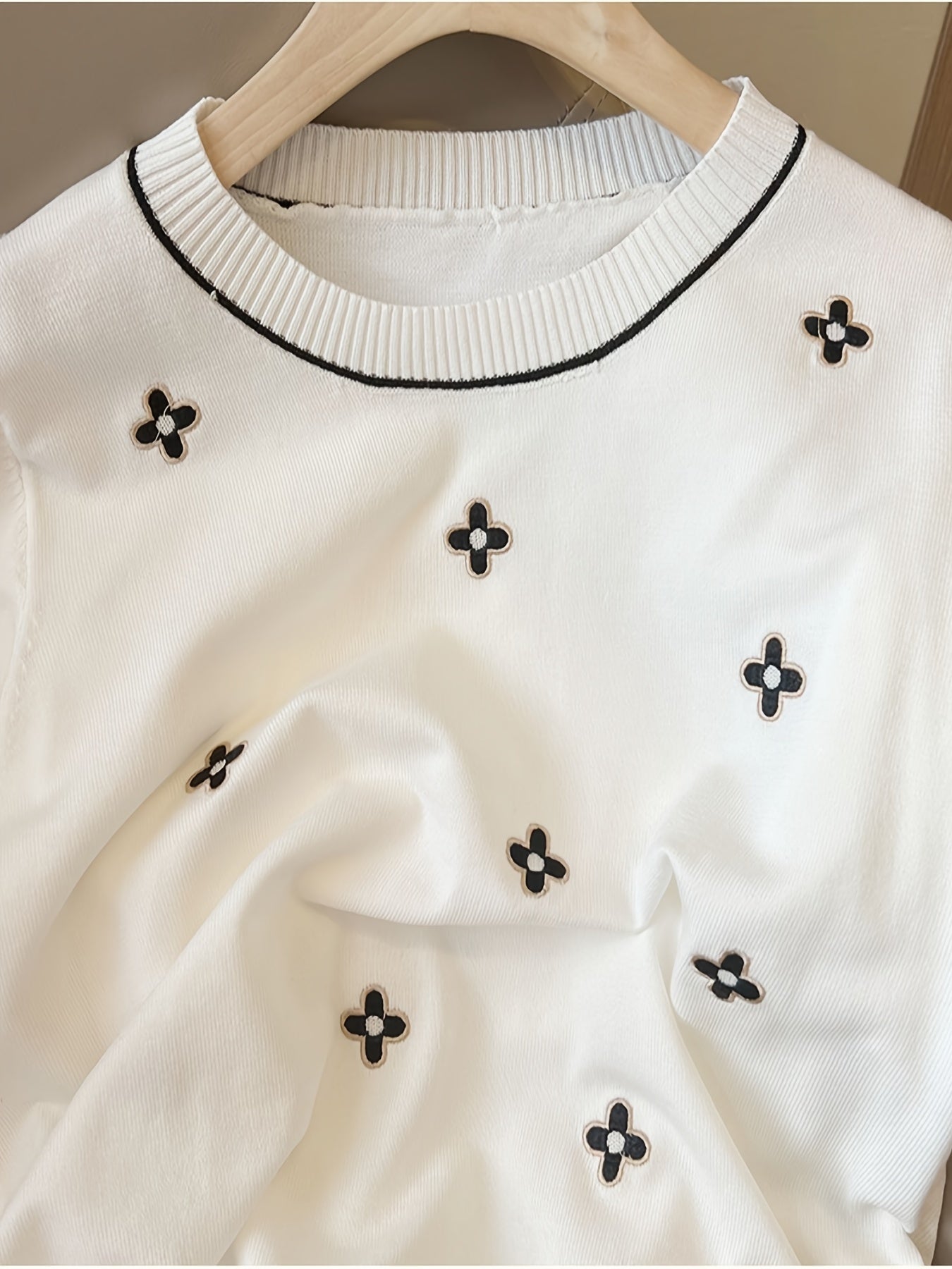 Женский свитер с цветочной вышивкой и круглым вырезом, весна-лето, повседневный, вязаный материал