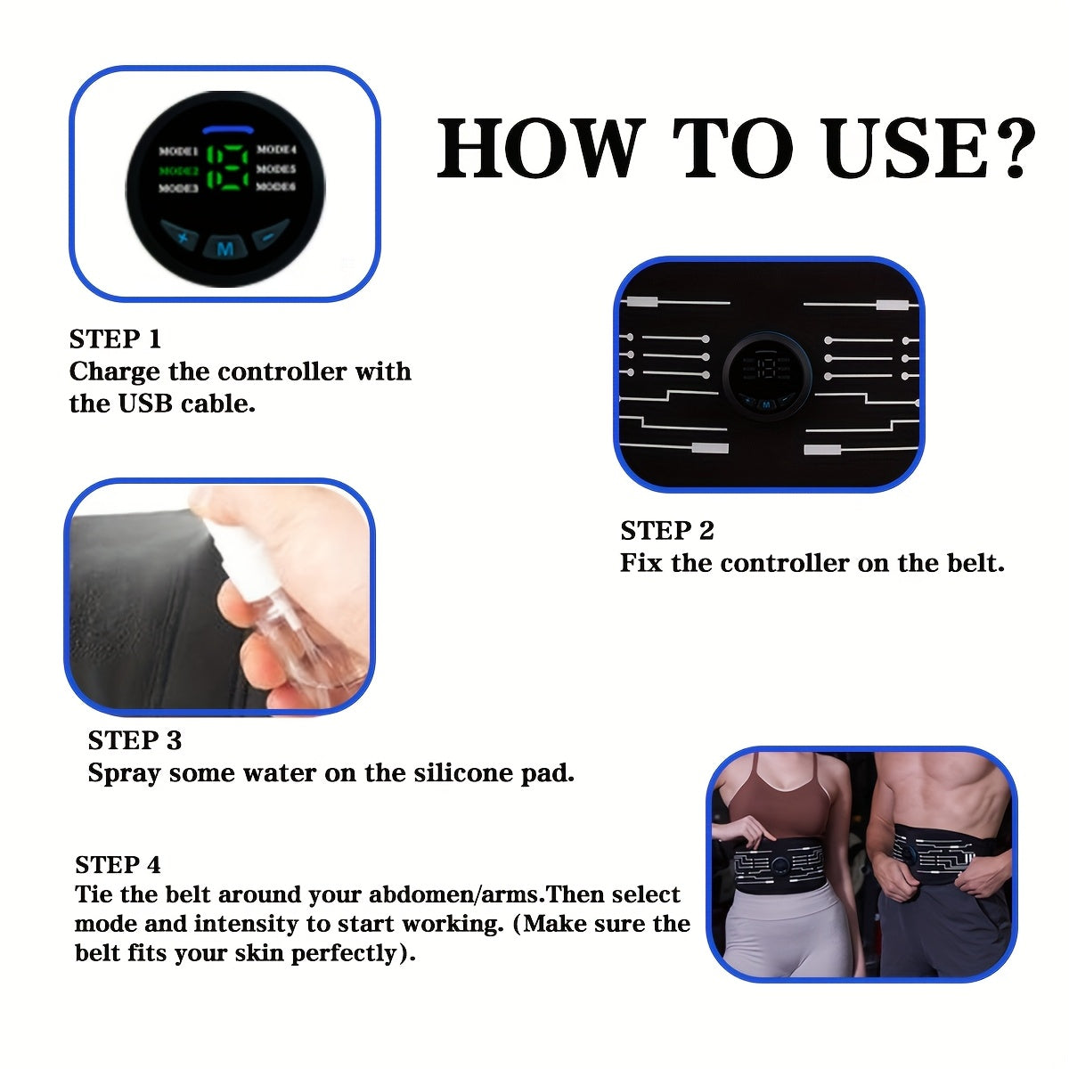 Ремень для массажа EMS с зарядкой USB, 6 режимов, 18 уровней интенсивности, массажер для всего тела