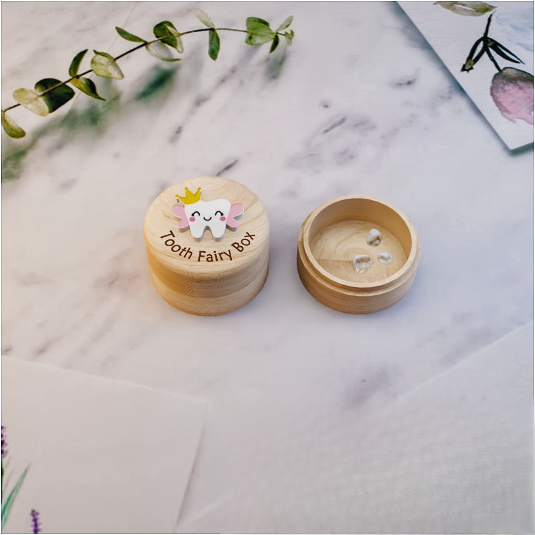 Очаровательная деревянная шкатулка для зубной феи - идеальна для сохранения зубов и волосиков малыша, замечательный сувенир на рождение и подарок на детский душ.