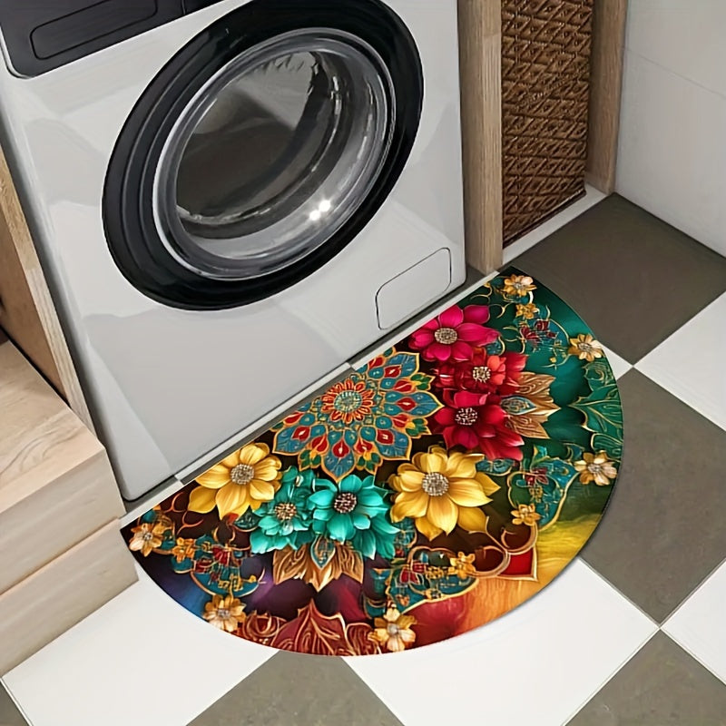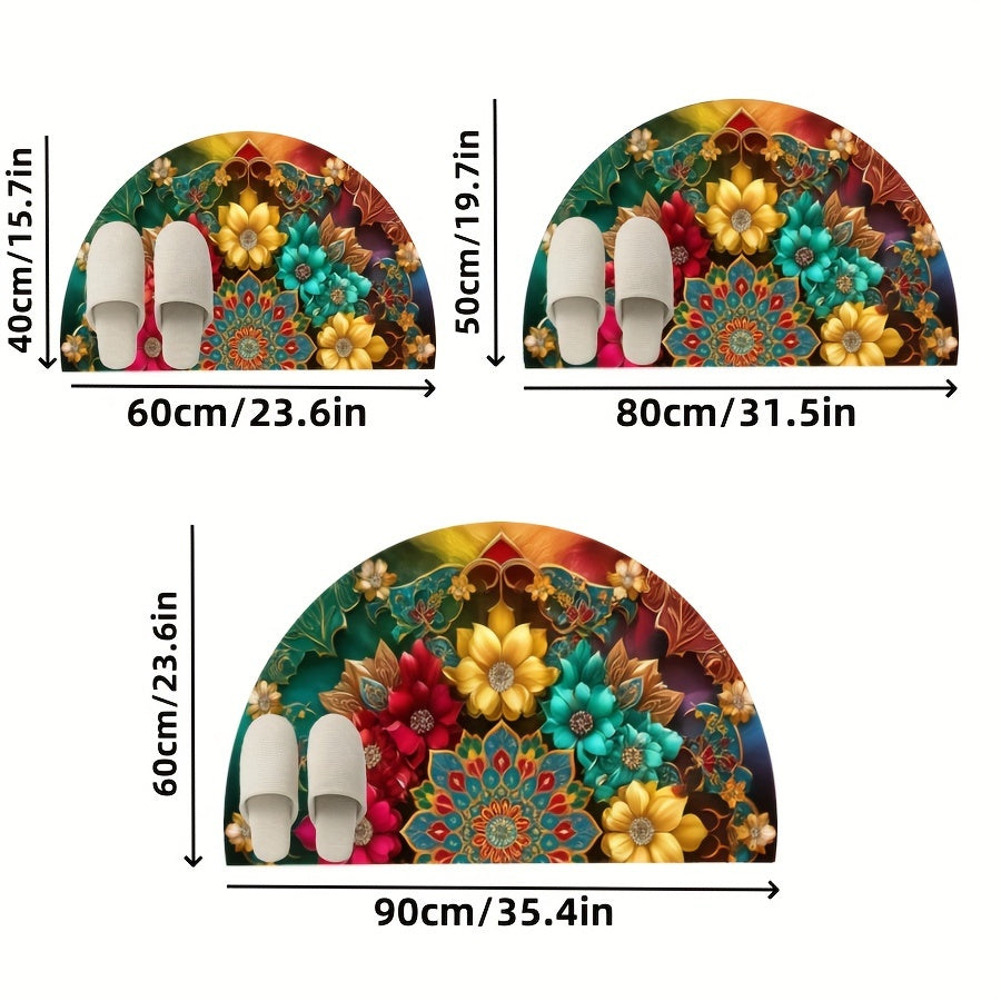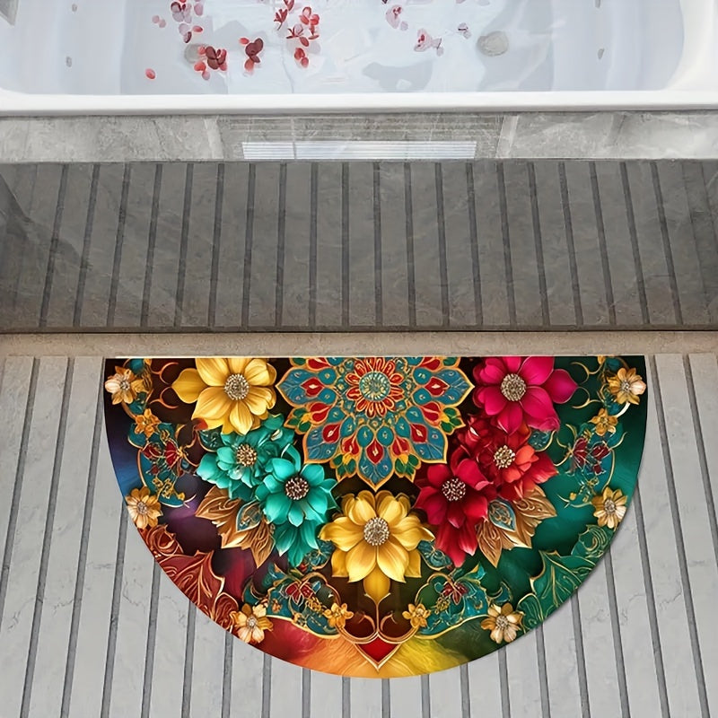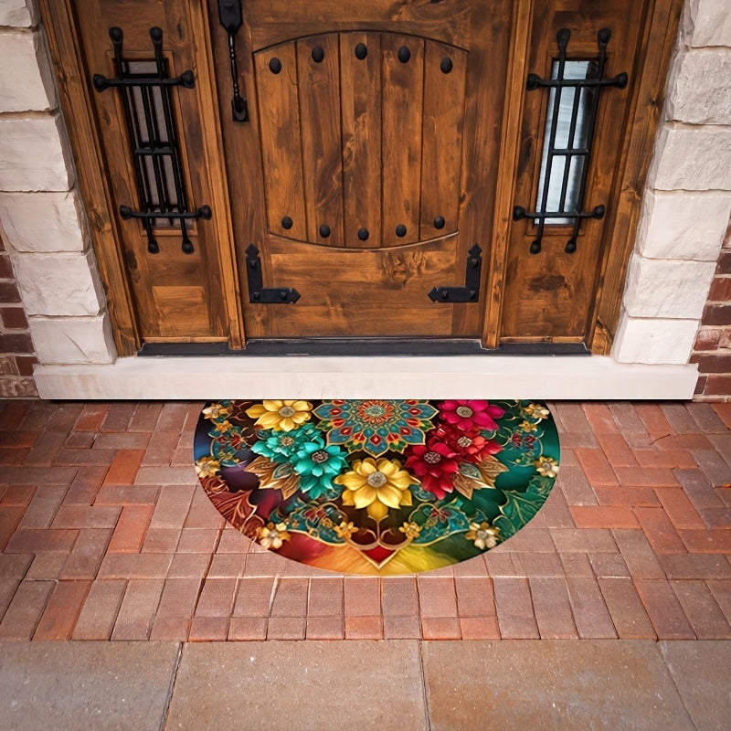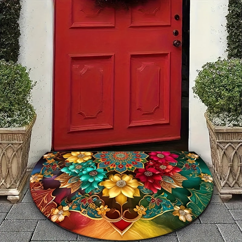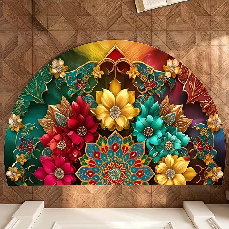 Богемский мандала с цветочным узором, полукруглый ковер, нескользящий, устойчивый к пятнам, дверной коврик