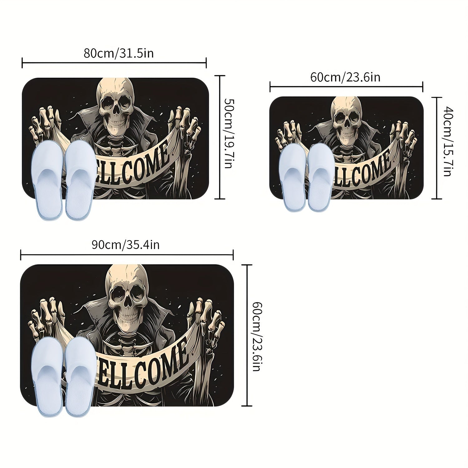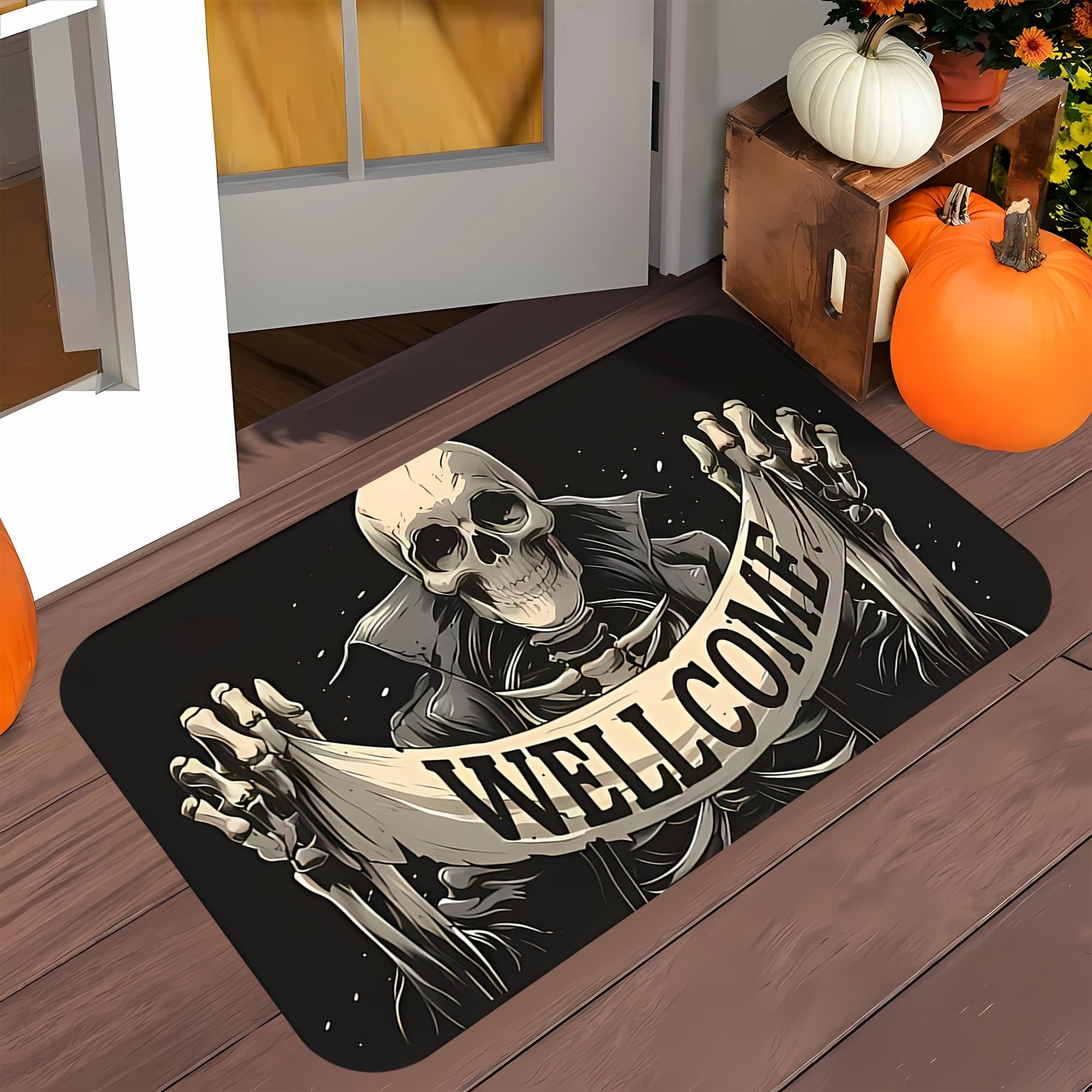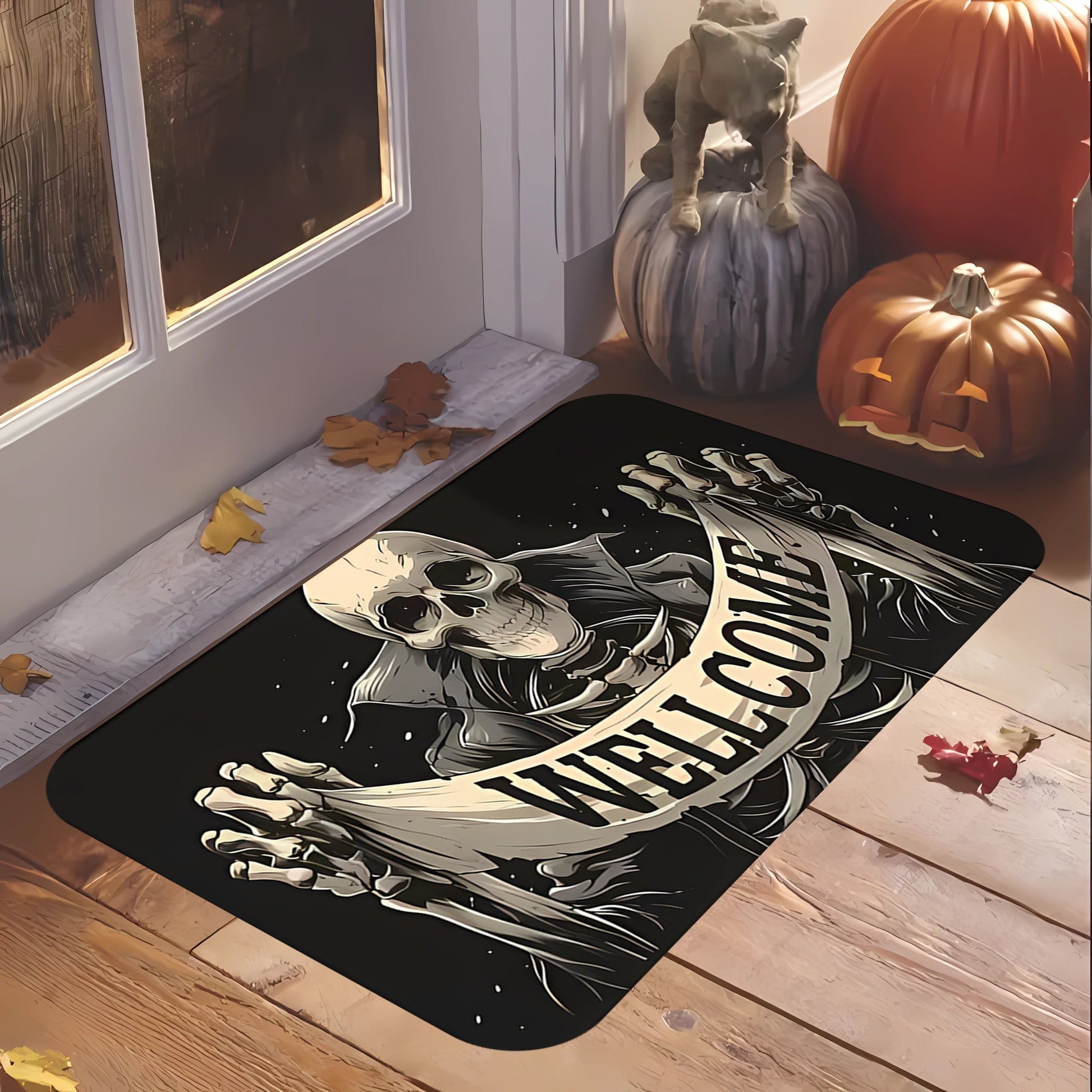 Коврик для двери с изображением черепа на Хэллоуин, нескользящий, устойчивый к пятнам, фланелевый