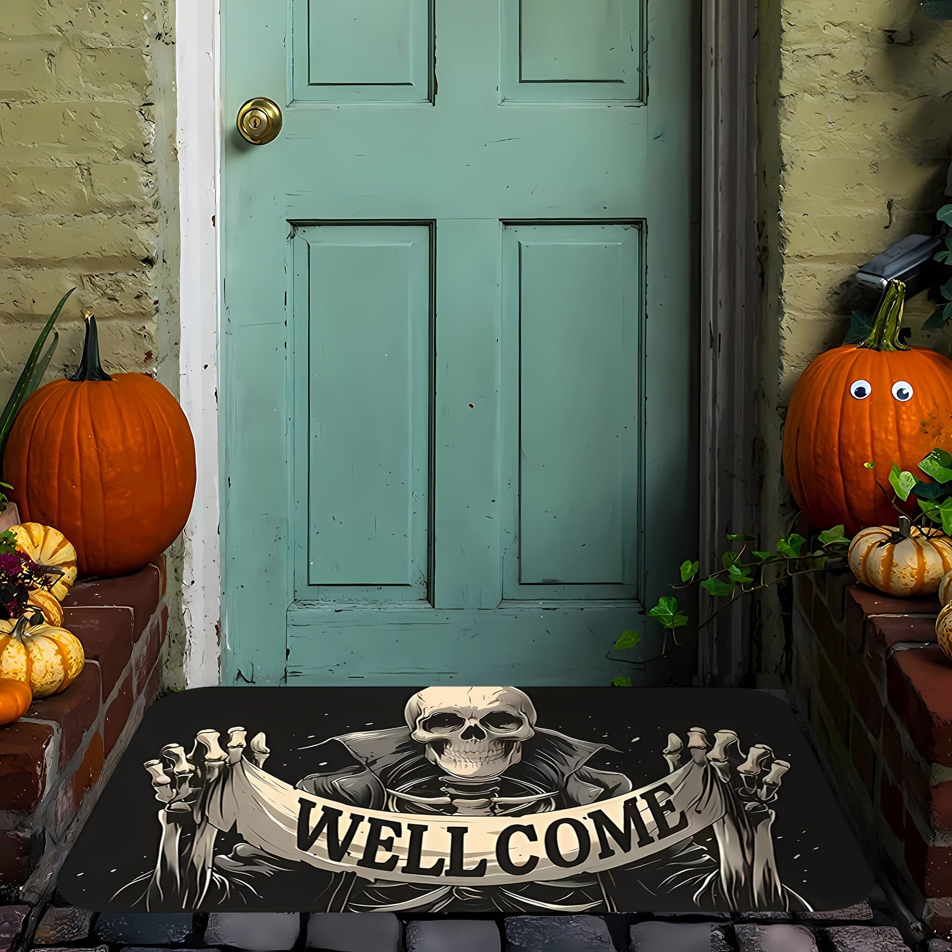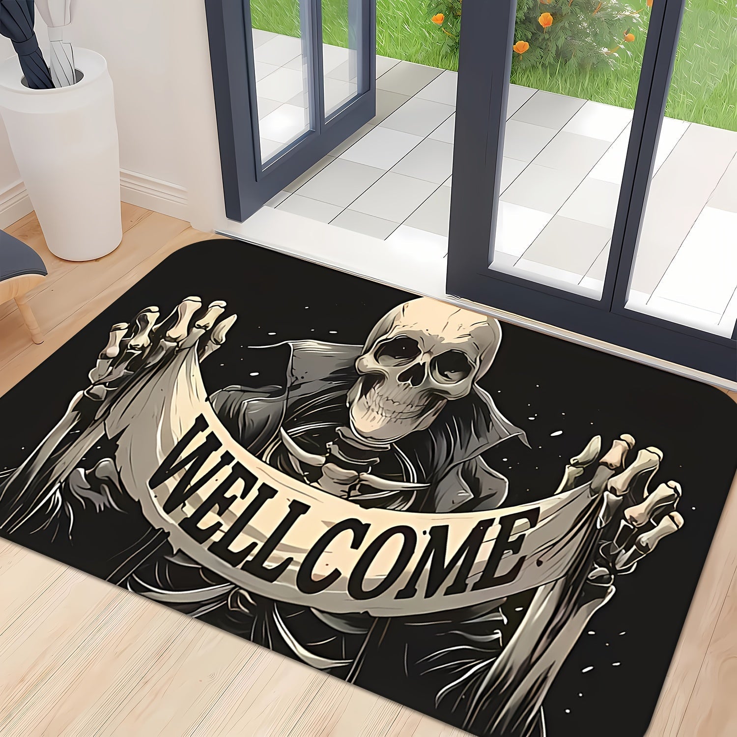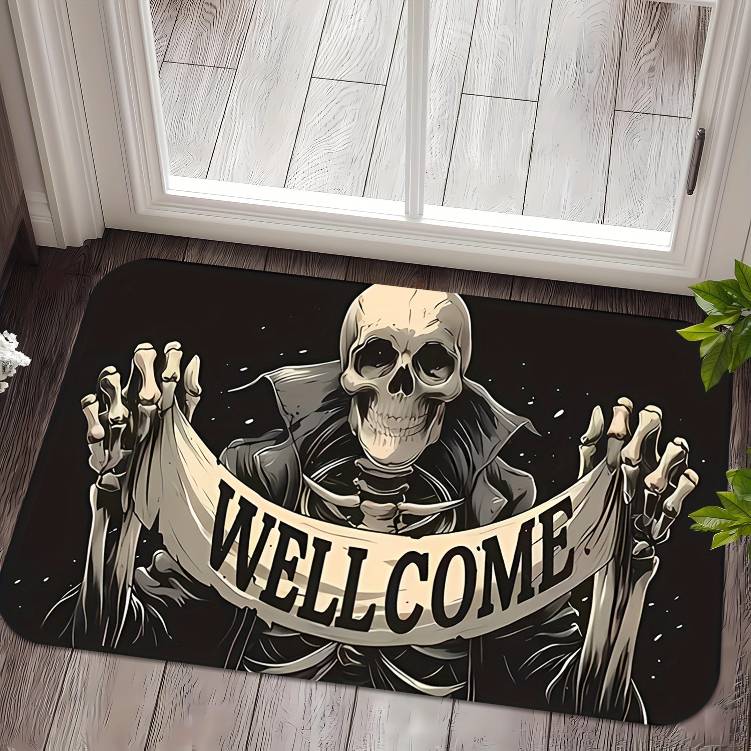 Коврик для двери с изображением черепа на Хэллоуин, нескользящий, устойчивый к пятнам, фланелевый