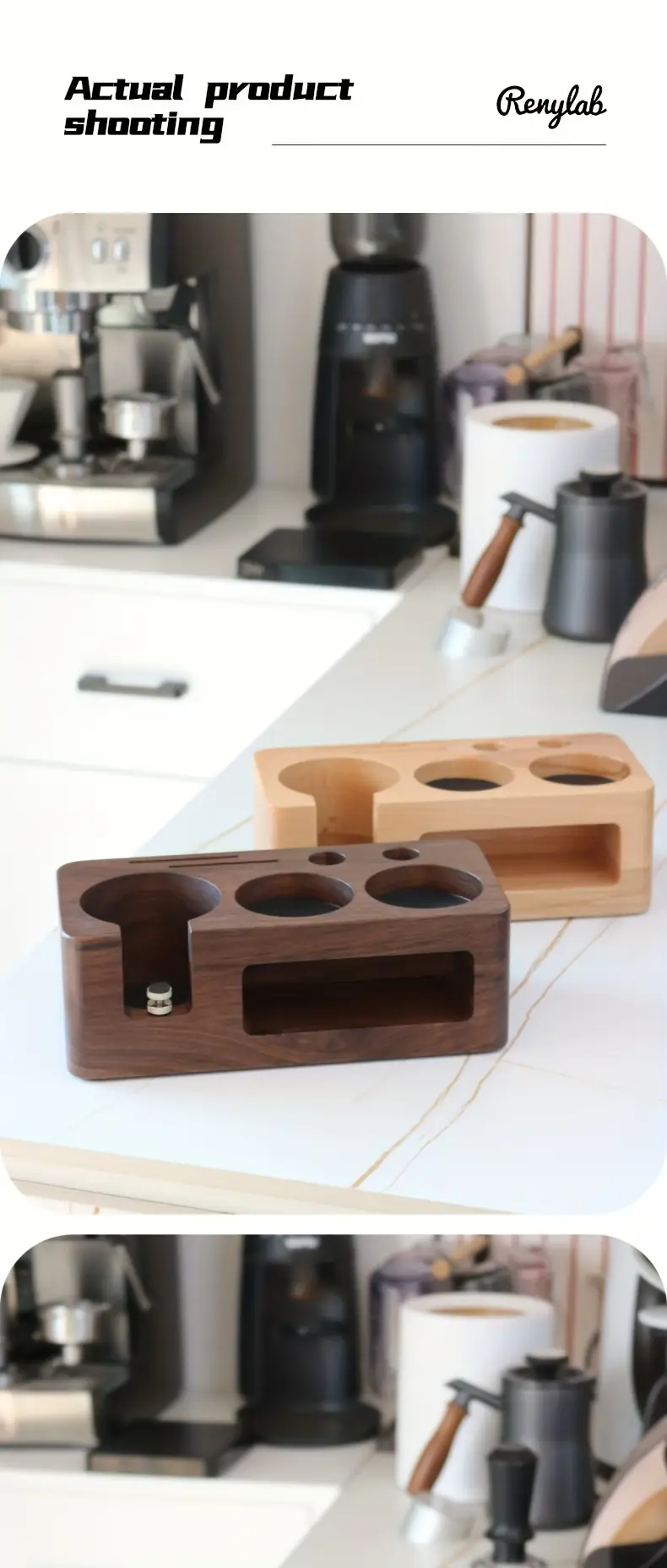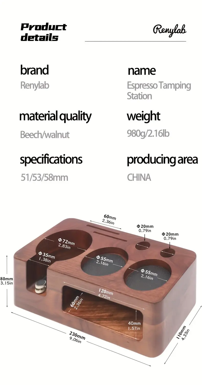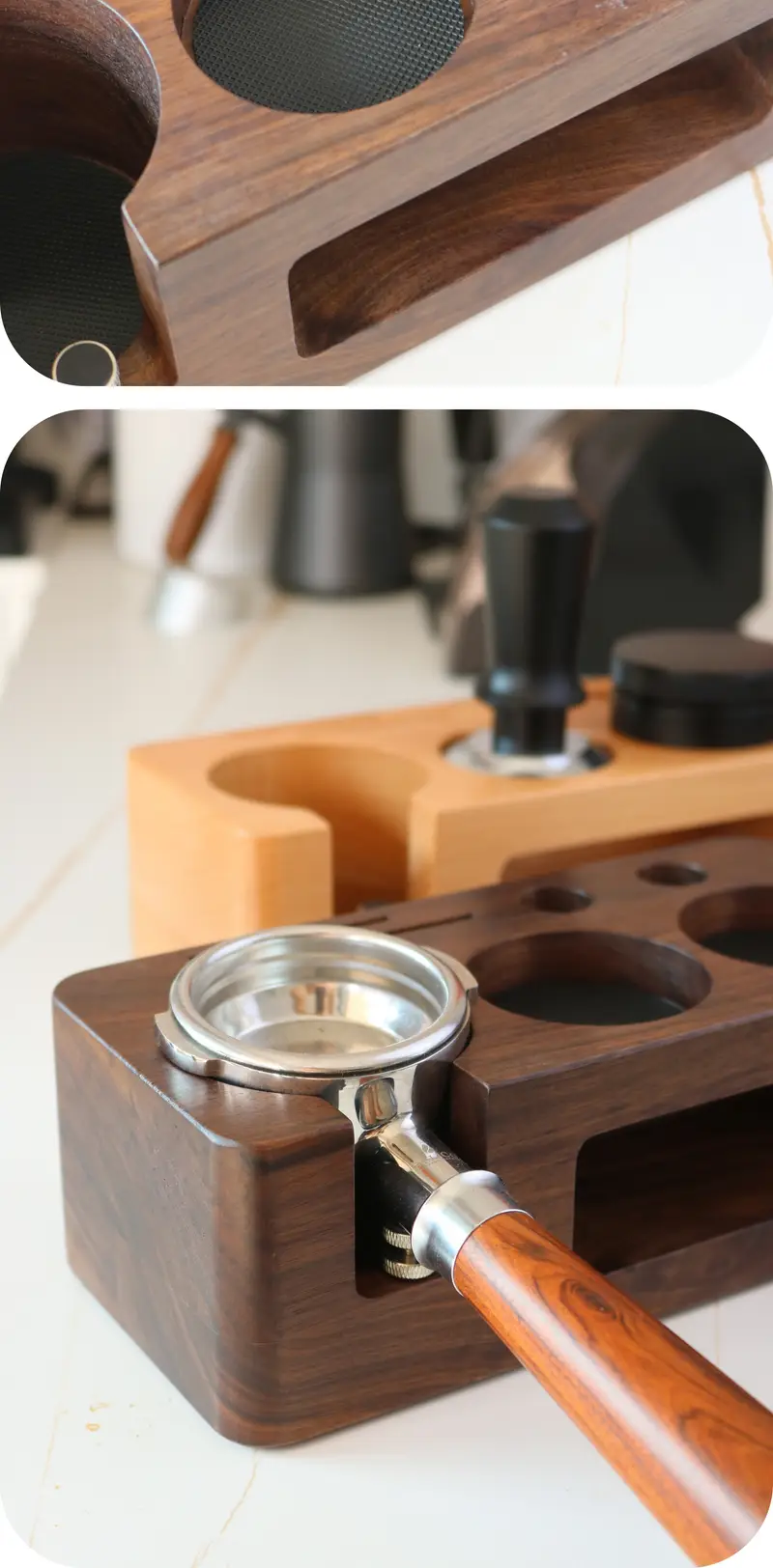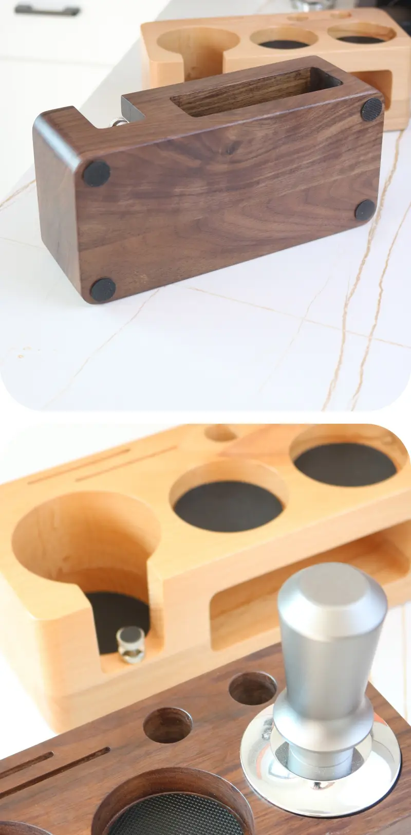 Набор для утрамбовки эспрессо с держателем для тампера и распределительным инструментом, ореховое дерево и бук