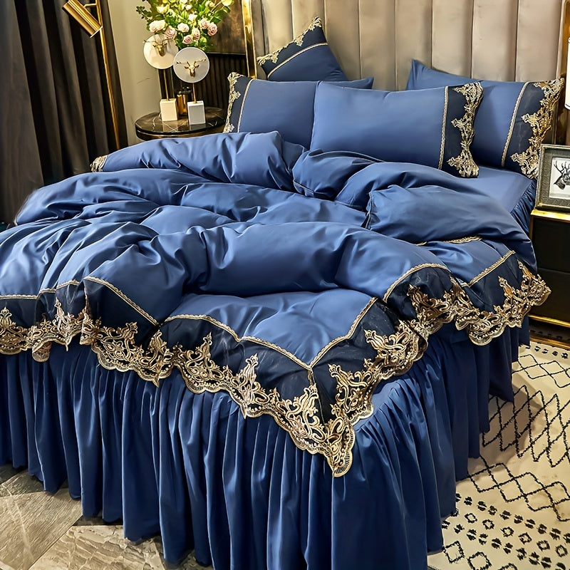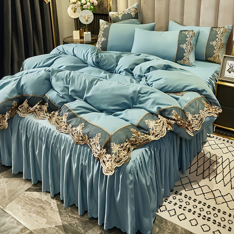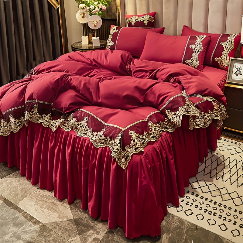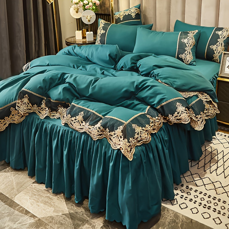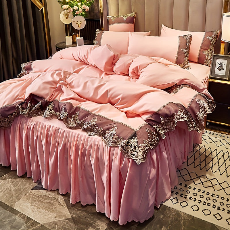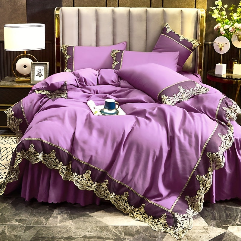 Европейский комплект постельного белья с кружевом и ворсом, 2/3 предмета, однотонное, наволочки, чехол на пуховик, моется в машине