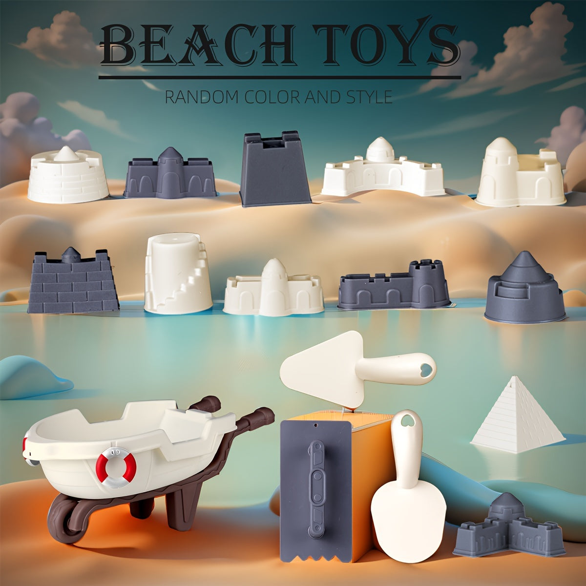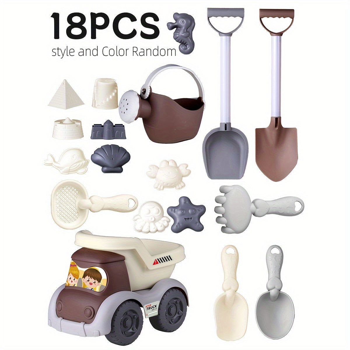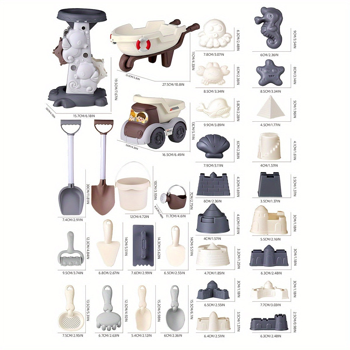 Детский набор пляжных игрушек с лопаткой, ведром, машинкой и башней в сером цвете для детей от 3 лет