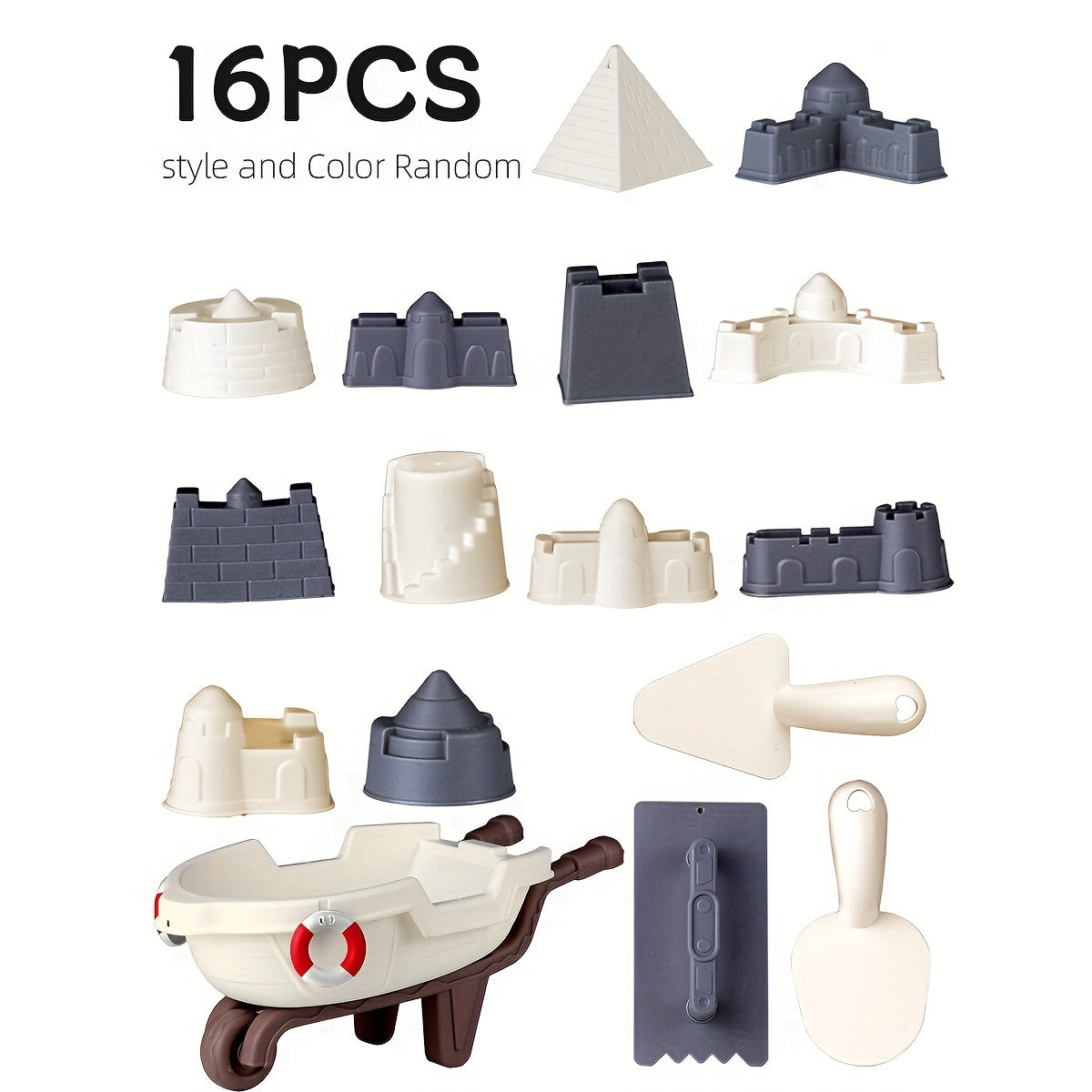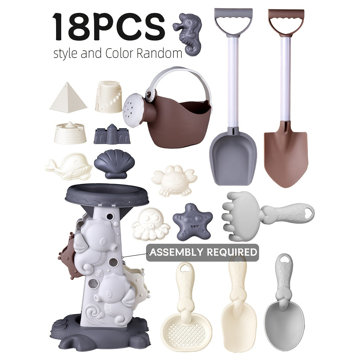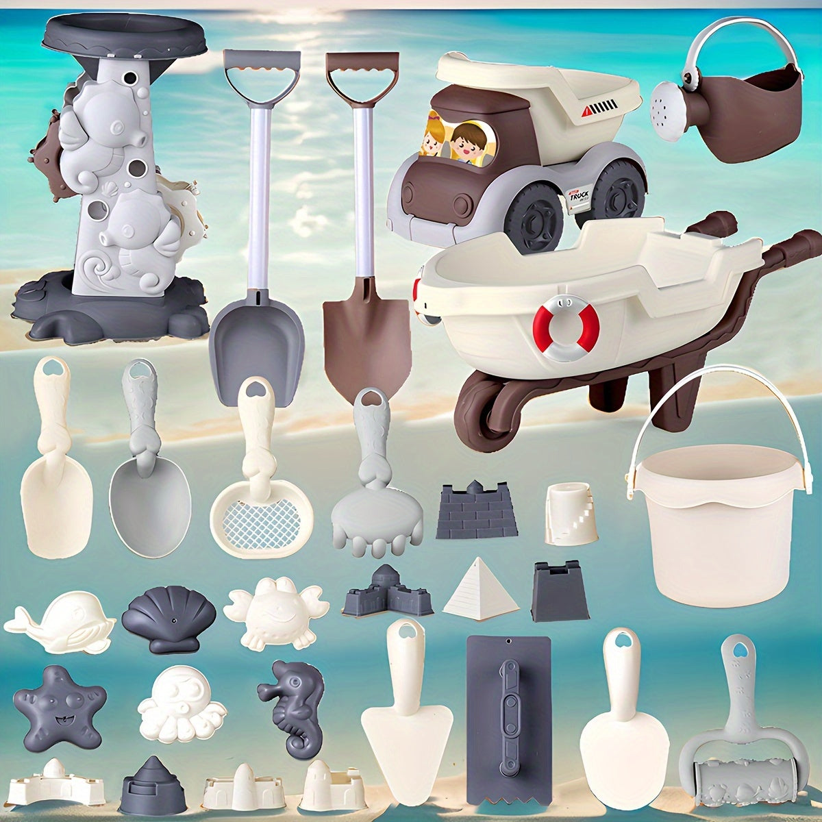 Детский набор пляжных игрушек с лопаткой, ведром, машинкой и башней в сером цвете для детей от 3 лет