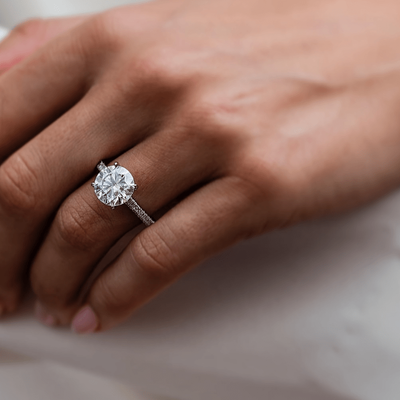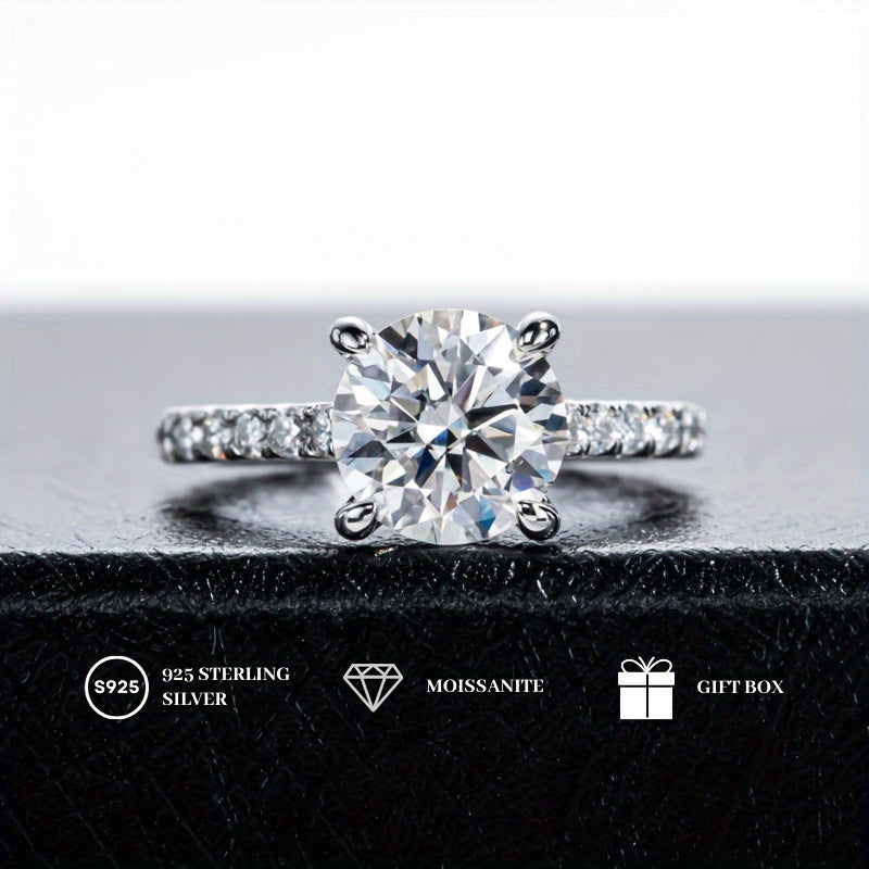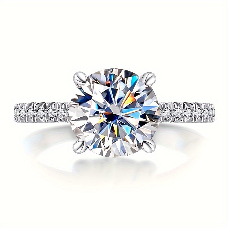 Изысканное кольцо с круглой огранкой из моиссанита весом 5 карат - выполнено из серебра S925, идеальный подарок на день рождения для нее