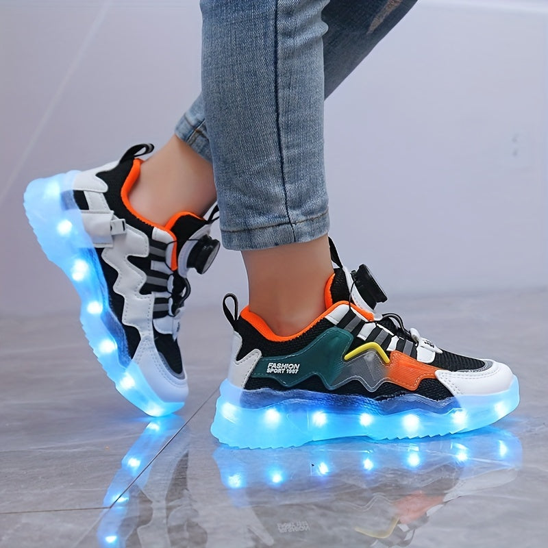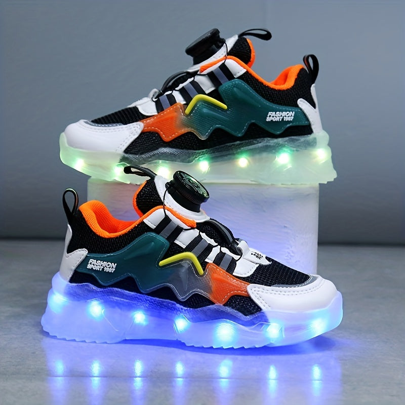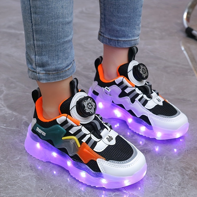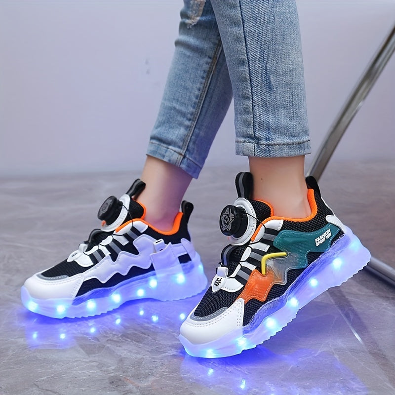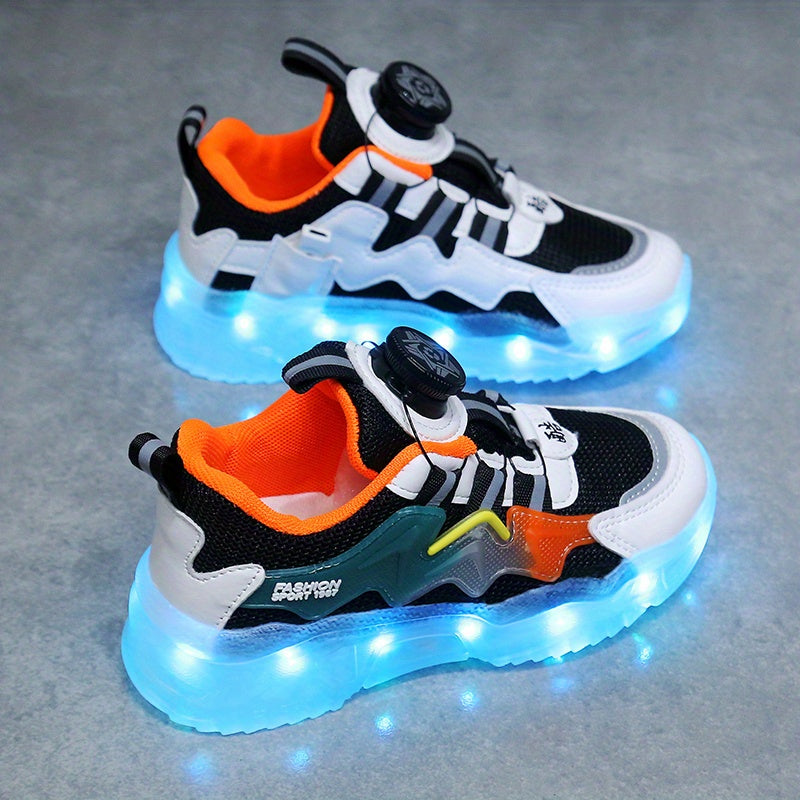 Детские беговые кроссовки с светящимися полосками, легкая ткань, весна, круглогодичный сезон