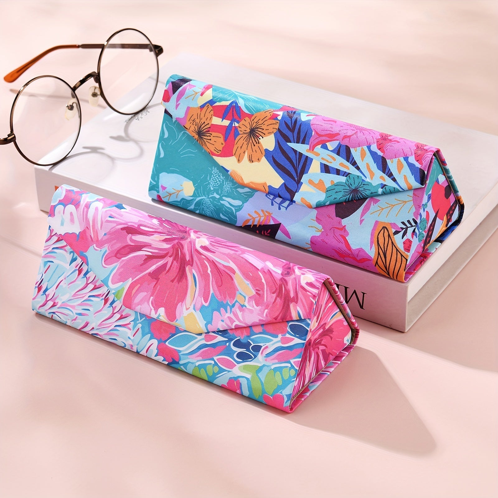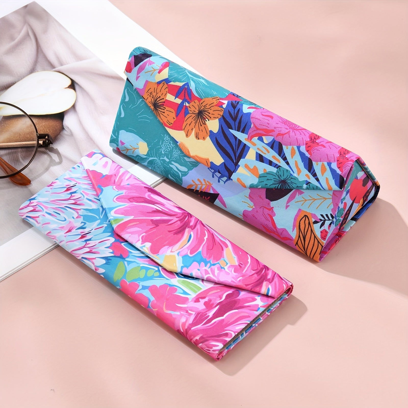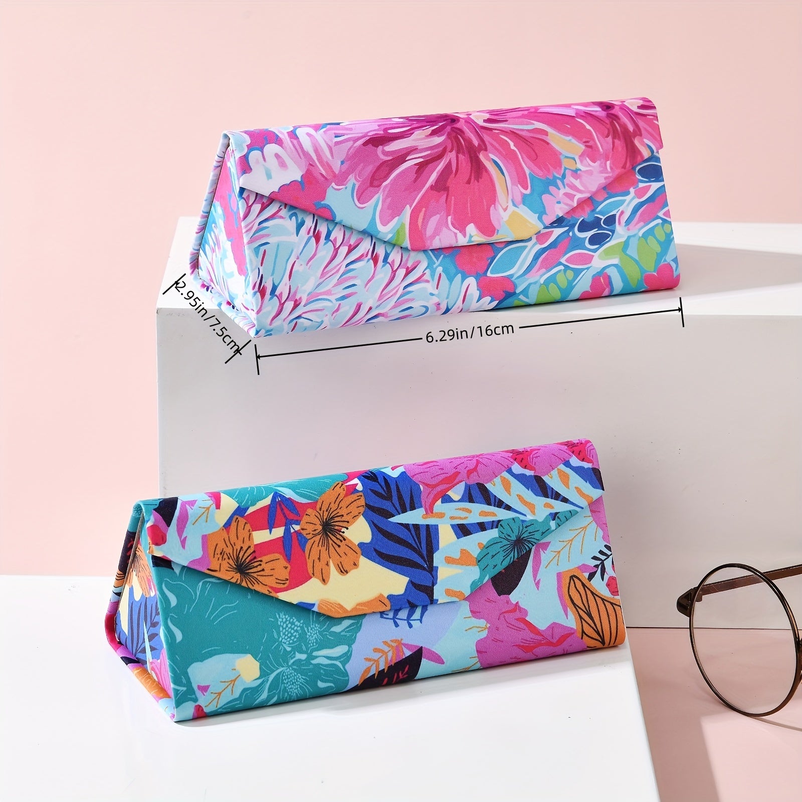 Модный и креативный, этот полужесткий складной футляр для очков украшен цветочным дизайном. Портативный и стильный, этот футляр идеально подходит для хранения ваших очков.