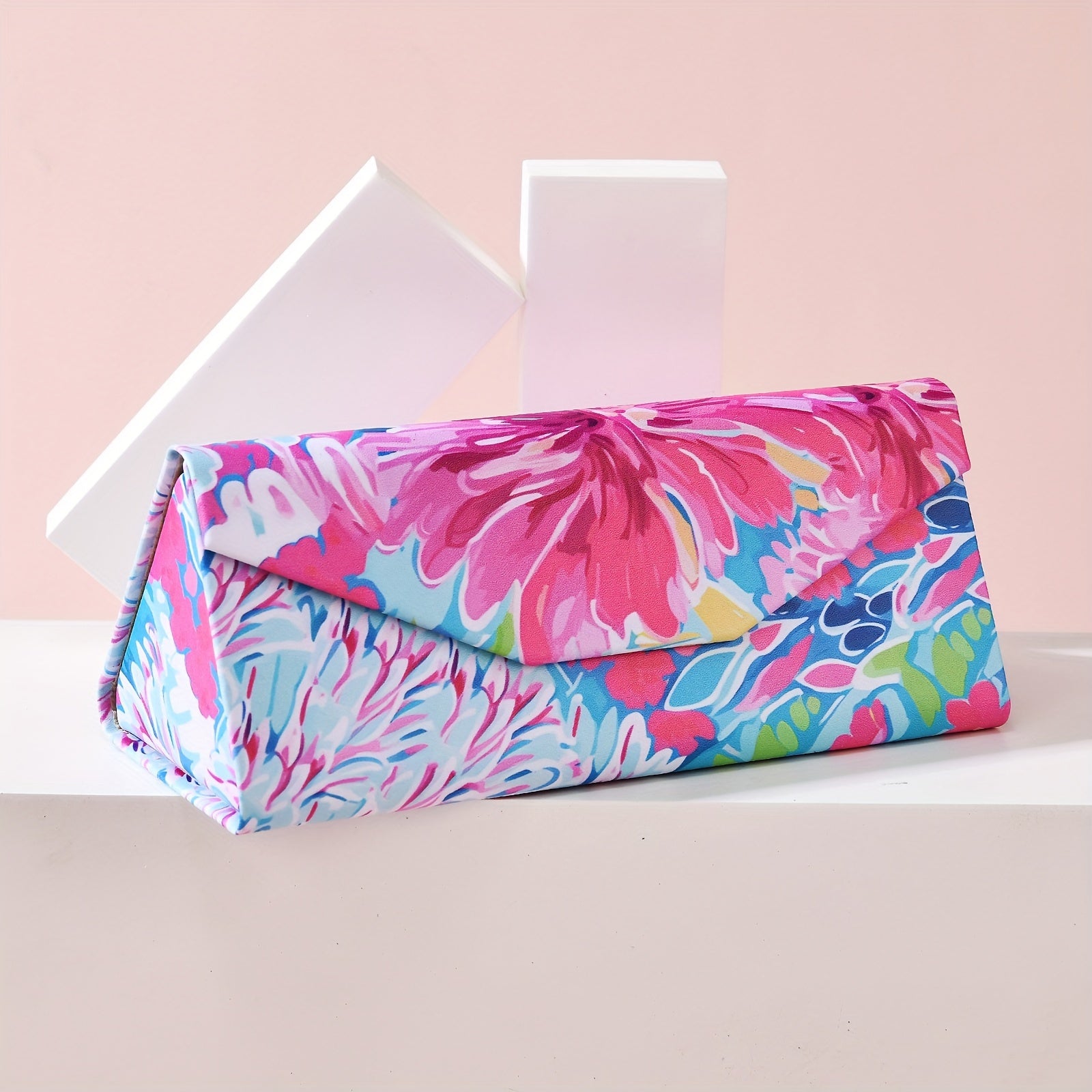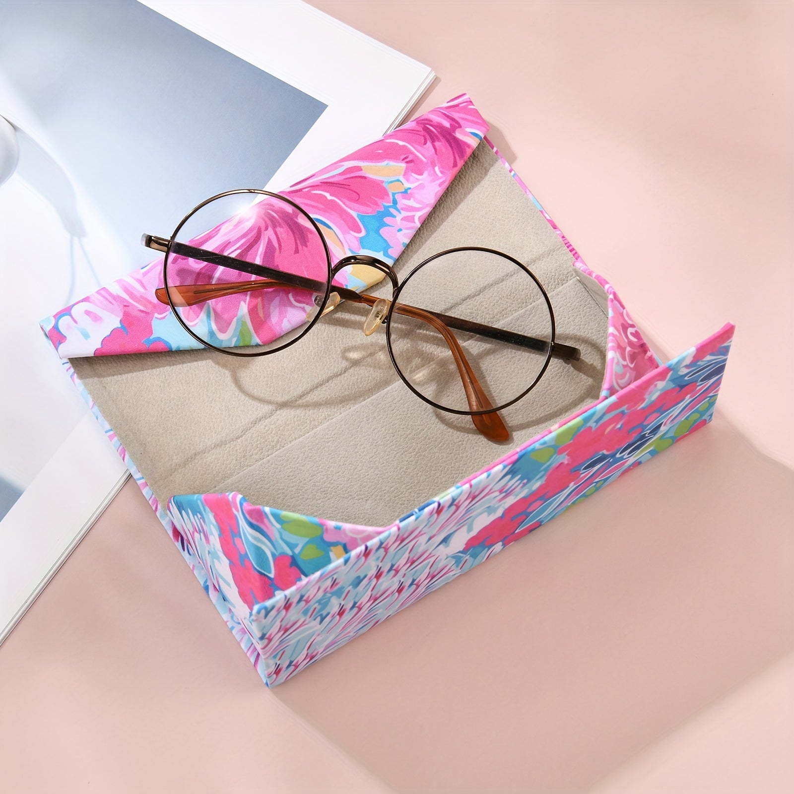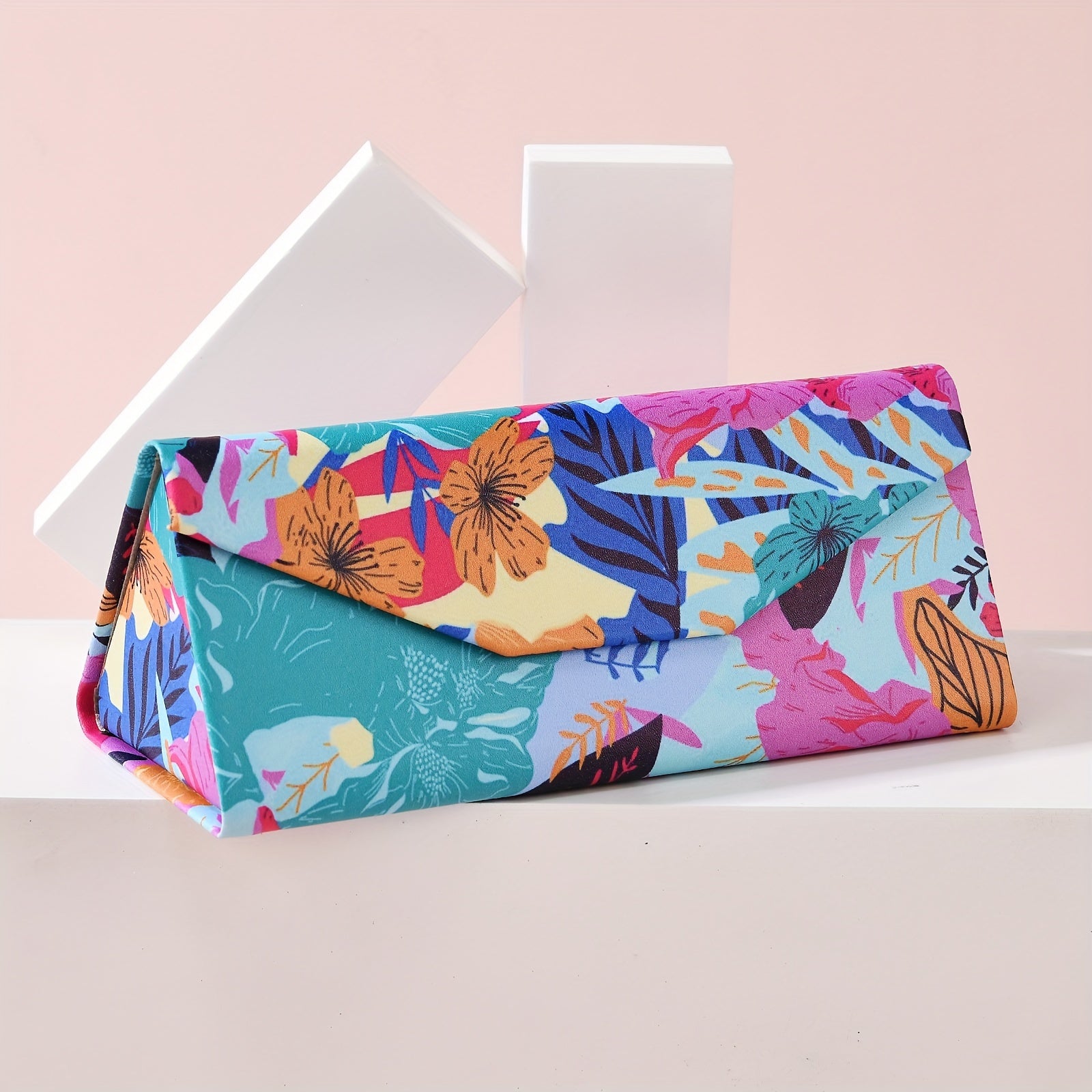 Модный и креативный, этот полужесткий складной футляр для очков украшен цветочным дизайном. Портативный и стильный, этот футляр идеально подходит для хранения ваших очков.