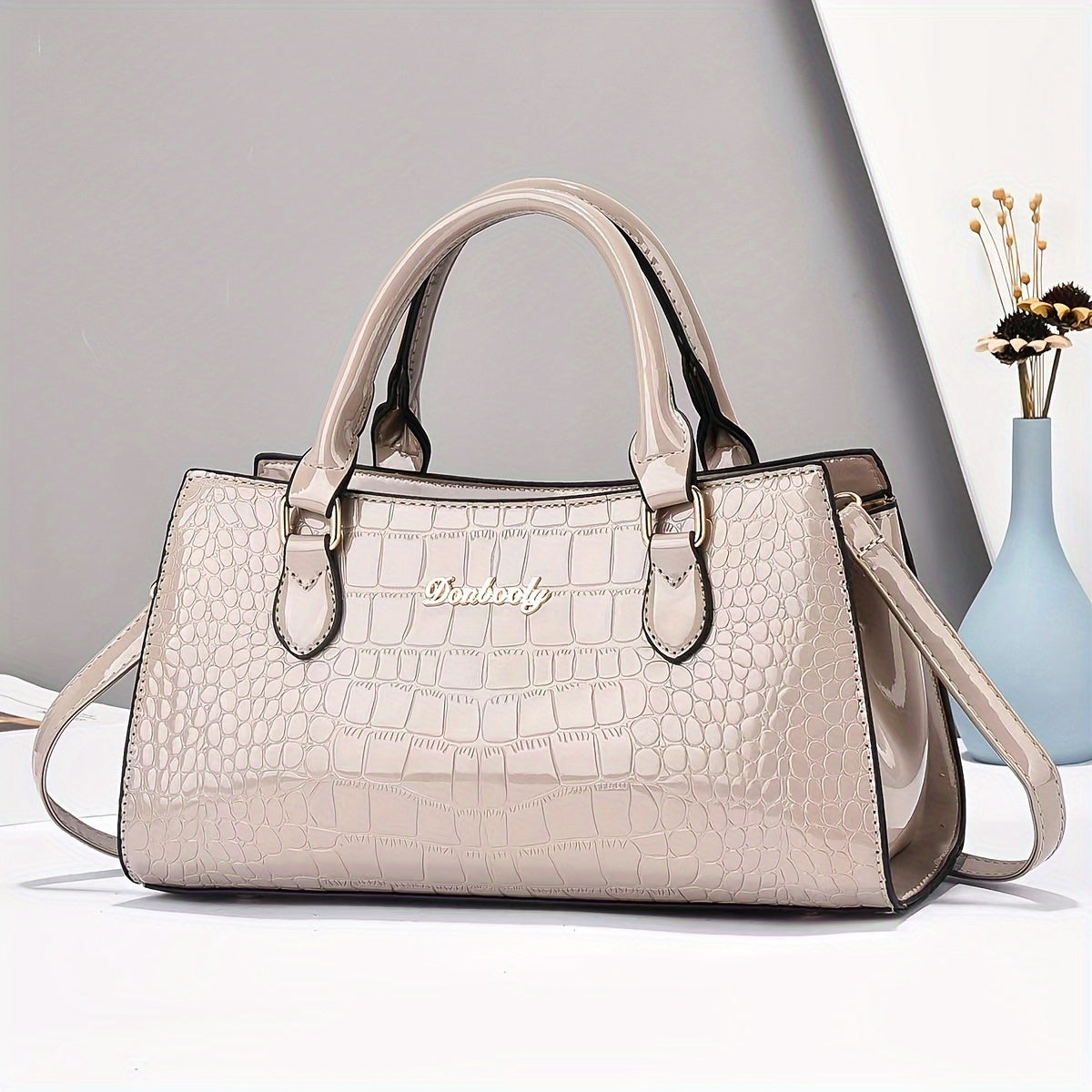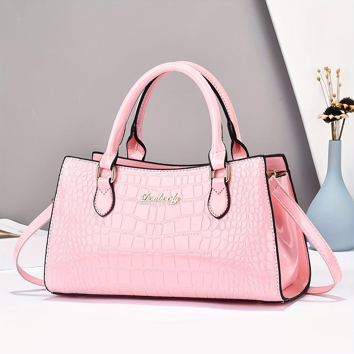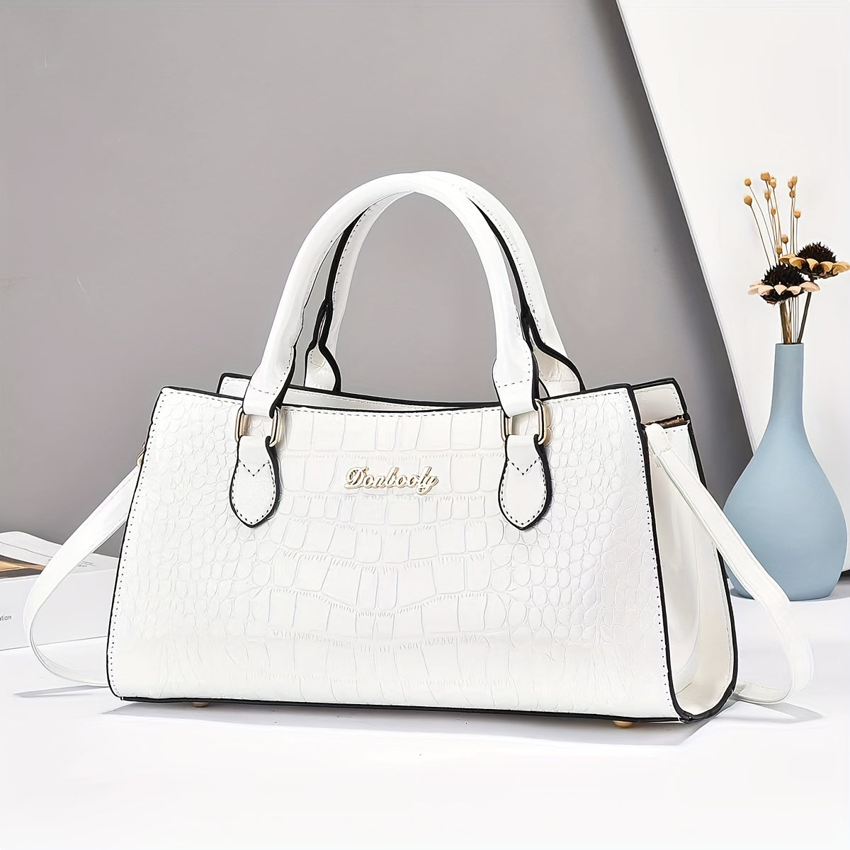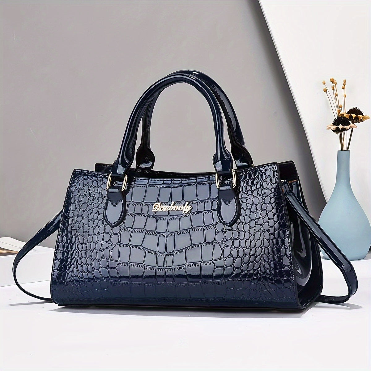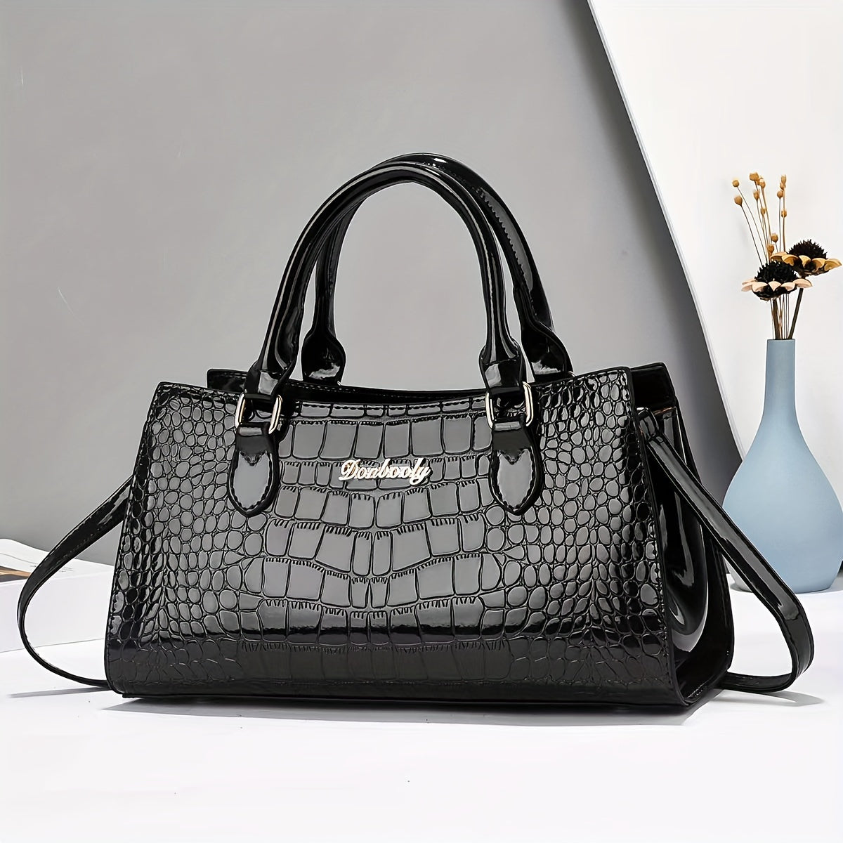 Модная женская сумка из черной кожи с тиснением под крокодила, с регулируемым ремнем, застежкой на молнии и ручкой на запястье. Легкая и универсальная для повседневного использования, может носиться как через плечо, так и на плече.