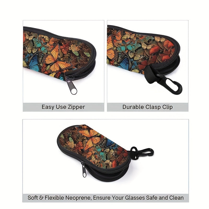 Модный чехол для очков с узором бабочки, изготовленный из водонепроницаемого винила с ярким дизайном, портативный и мягкий материал.