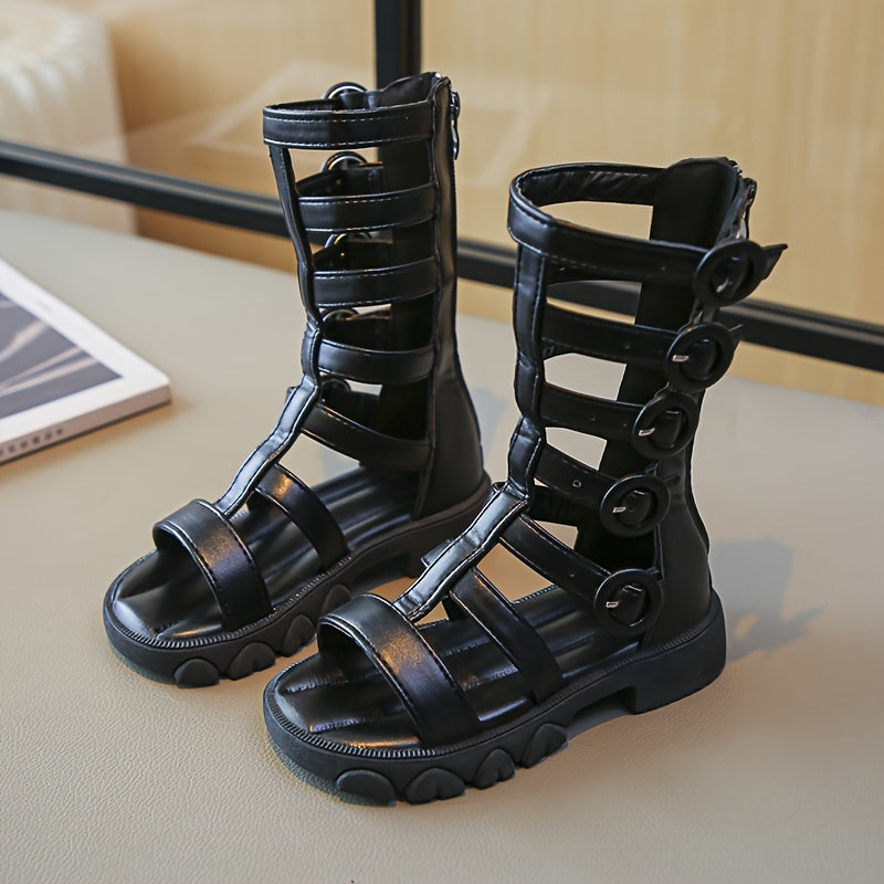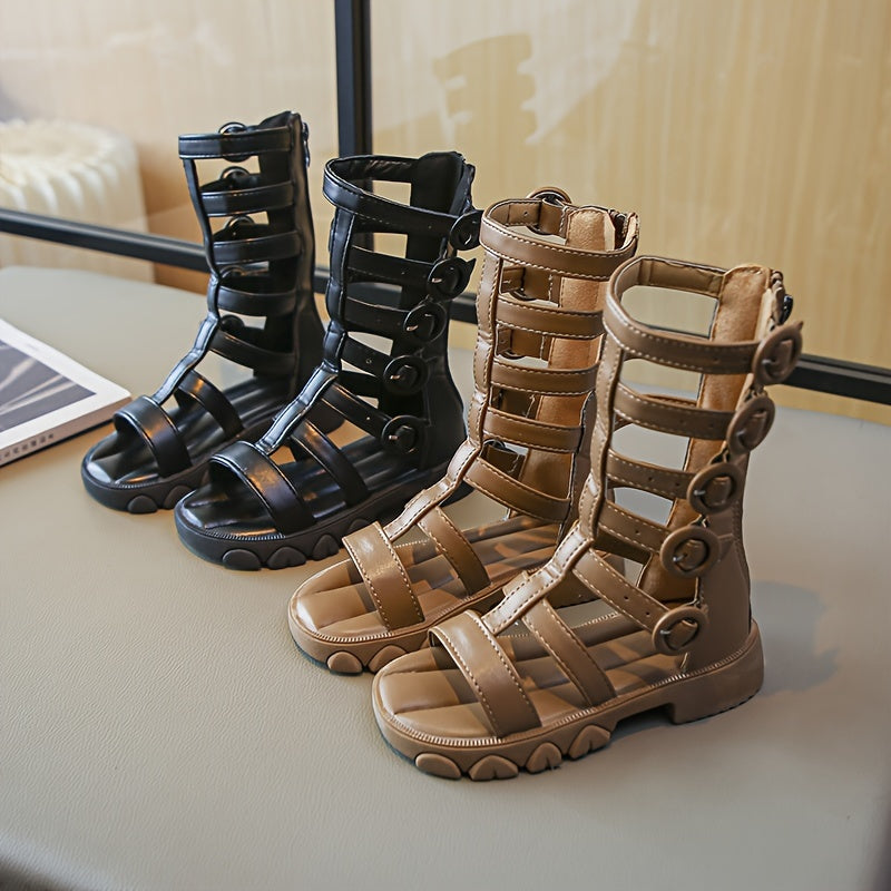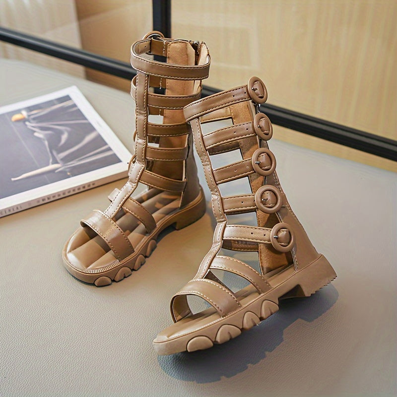 Девочки высокие сандалии на лето дышащие нескользящие с застежкой-молнией и вырезами