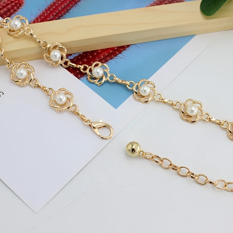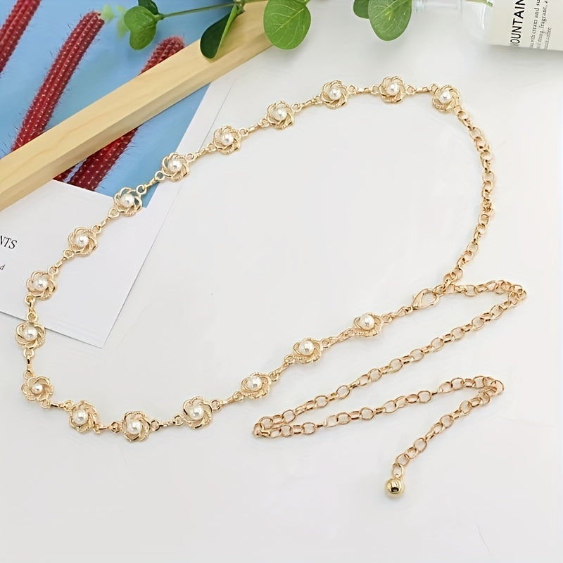 Женский пояс-цепочка с искусственными жемчужинами в корейском стиле, металлический тонкий ремень для платья и юбок