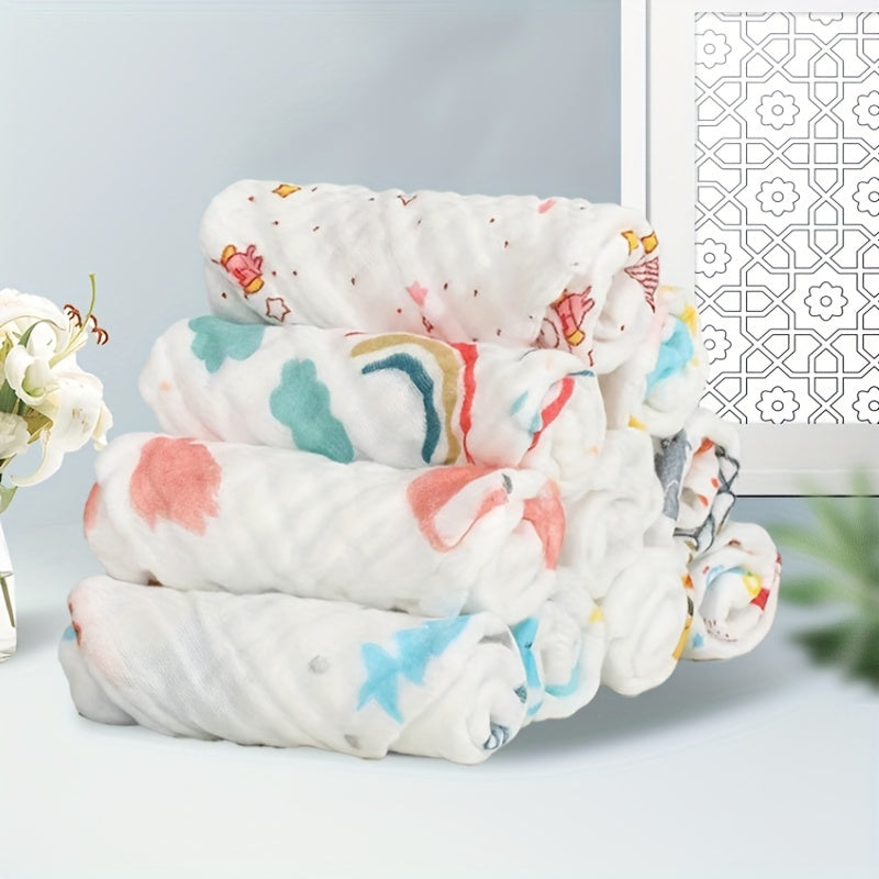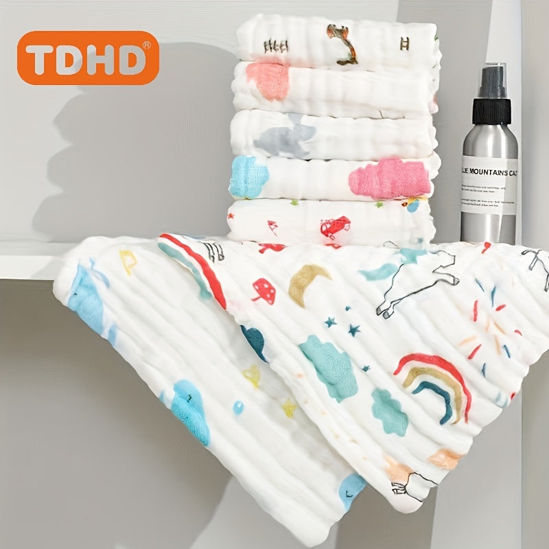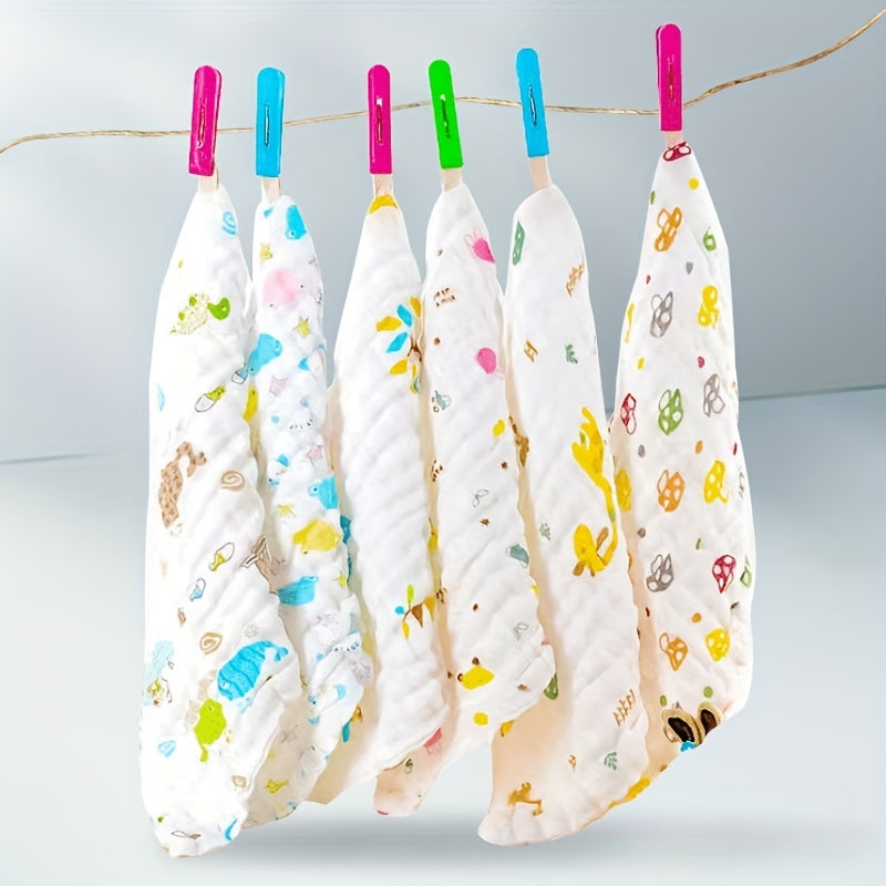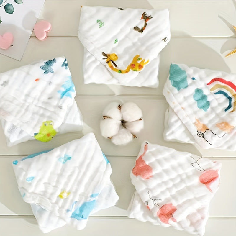 Пять штук детских квадратных полотенец из шести слоев хлопка с принтом