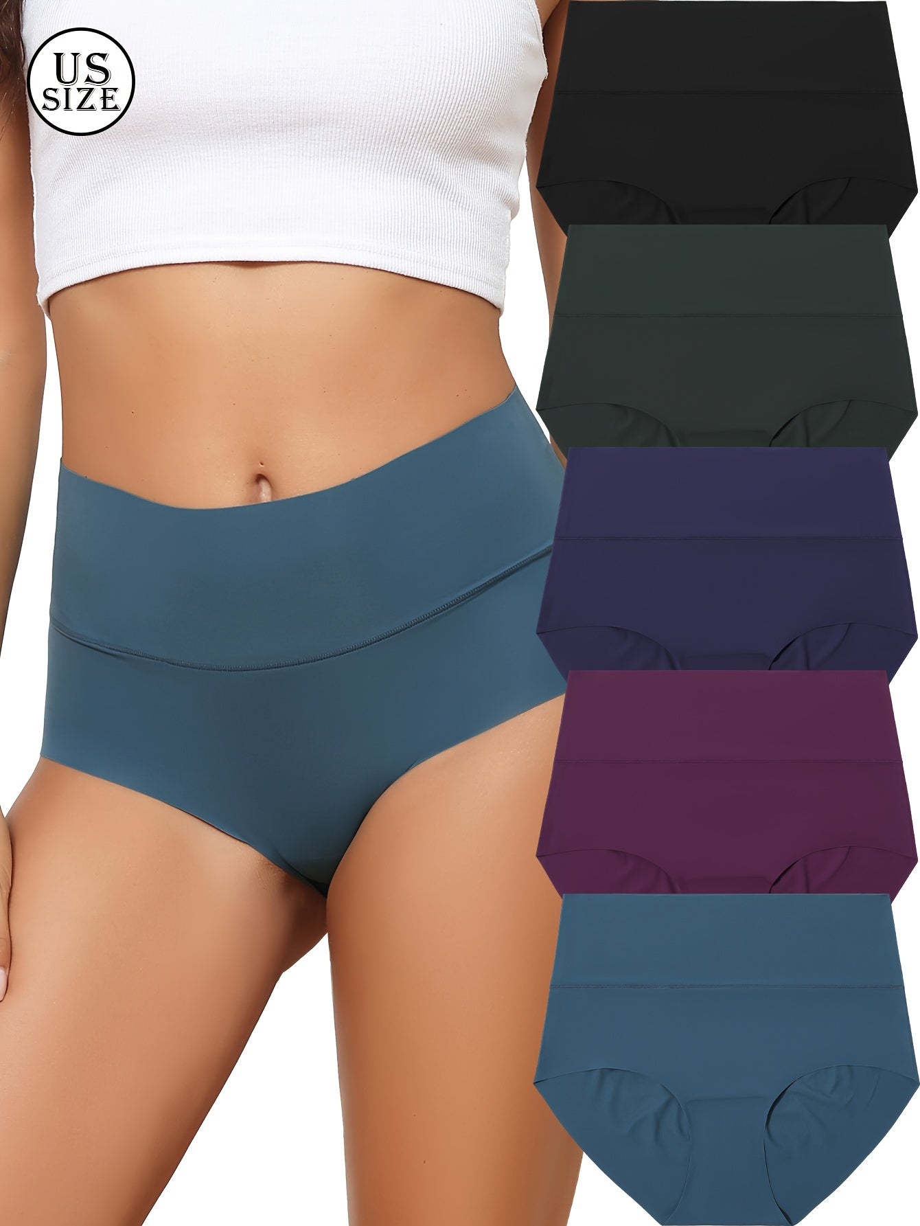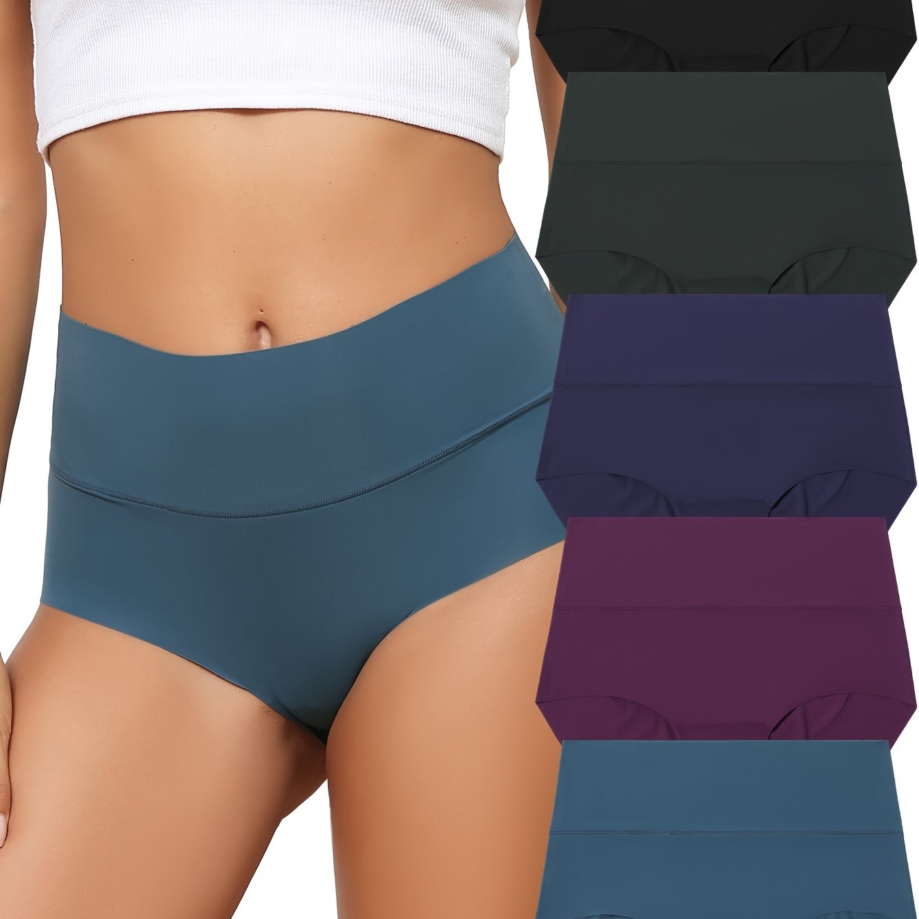 Пять плотных бесшовных трусиков с высокой талией для женщин, простые и удобные дышащие эластичные трусы.
