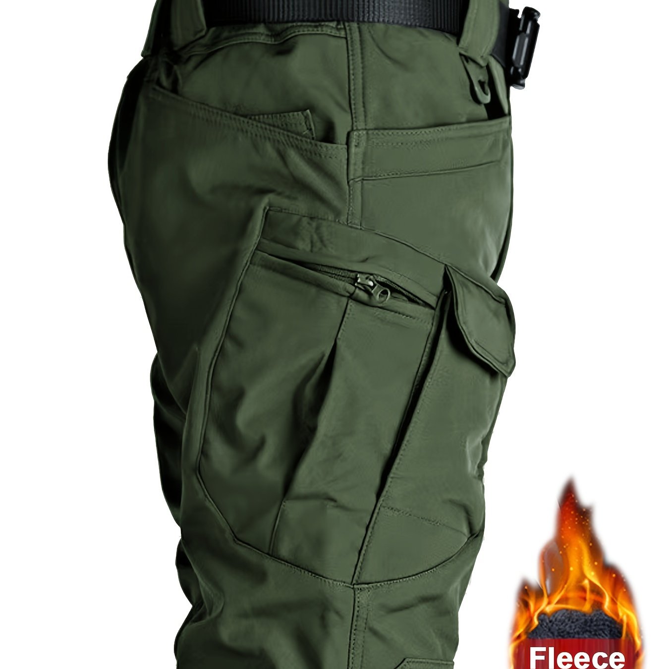 Мужские тактические штаны с флисовой подкладкой из полиэстера и спандекса, повседневные зимние для улицы с множеством карманов