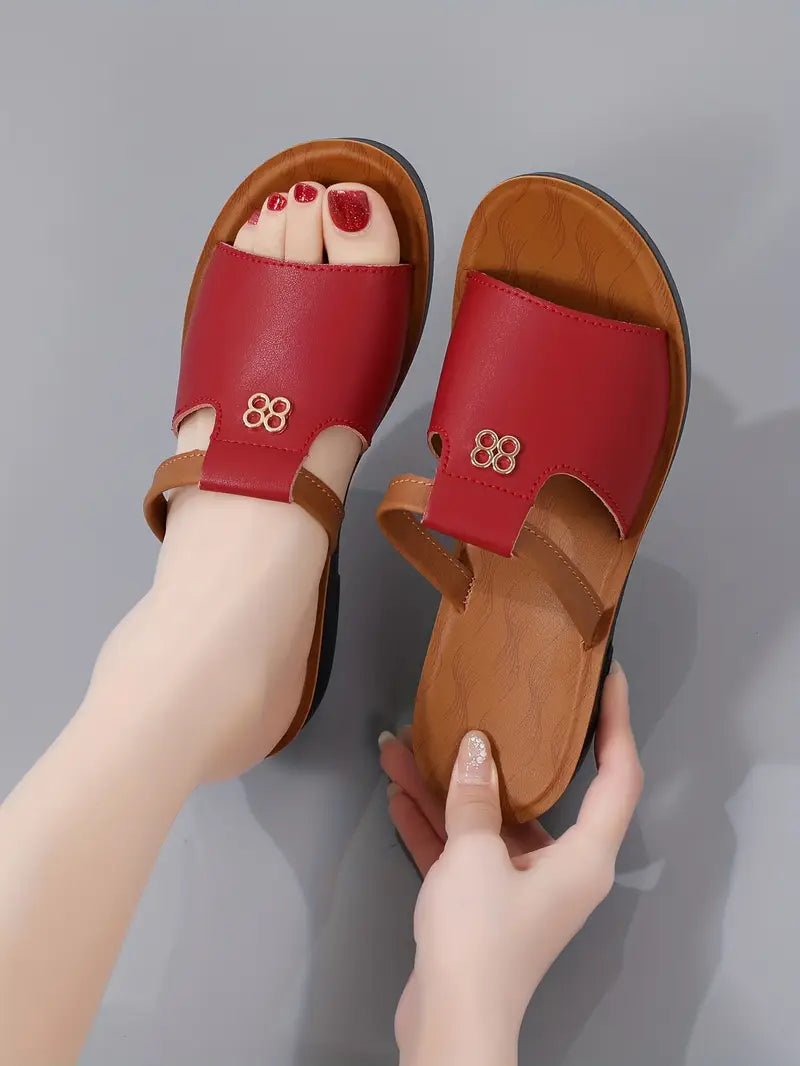Цветочные декорированные открытые туфли на танкетке черного и коричневого цвета из искусственной кожи для повседневной носки.