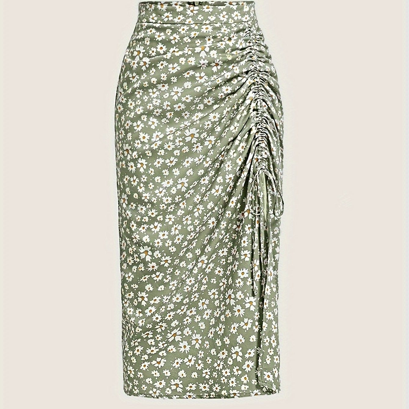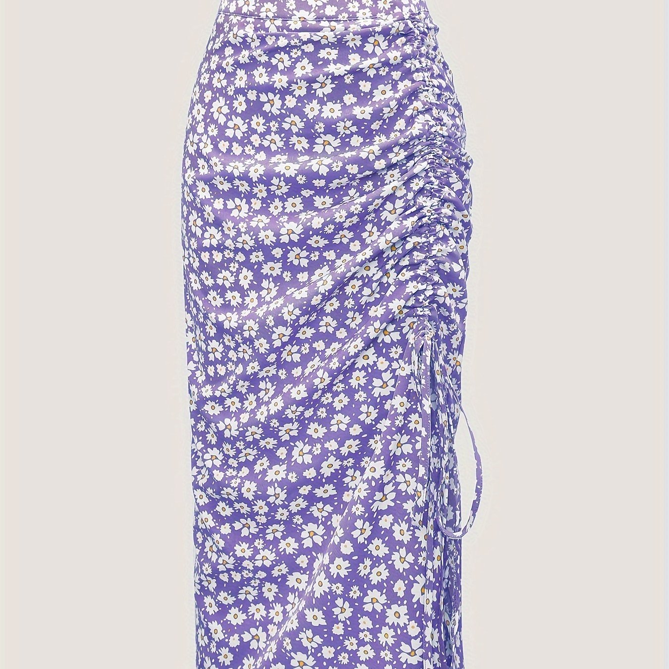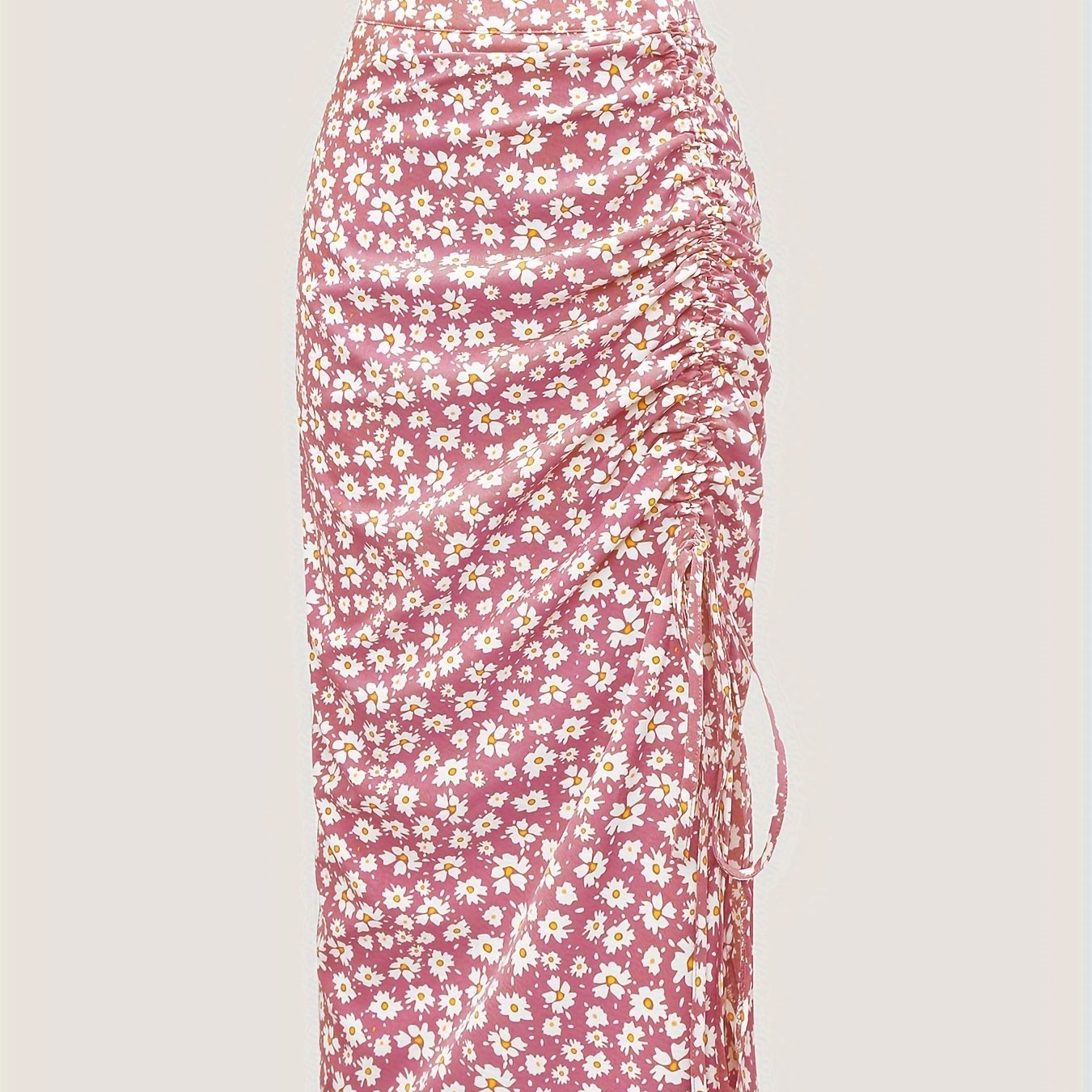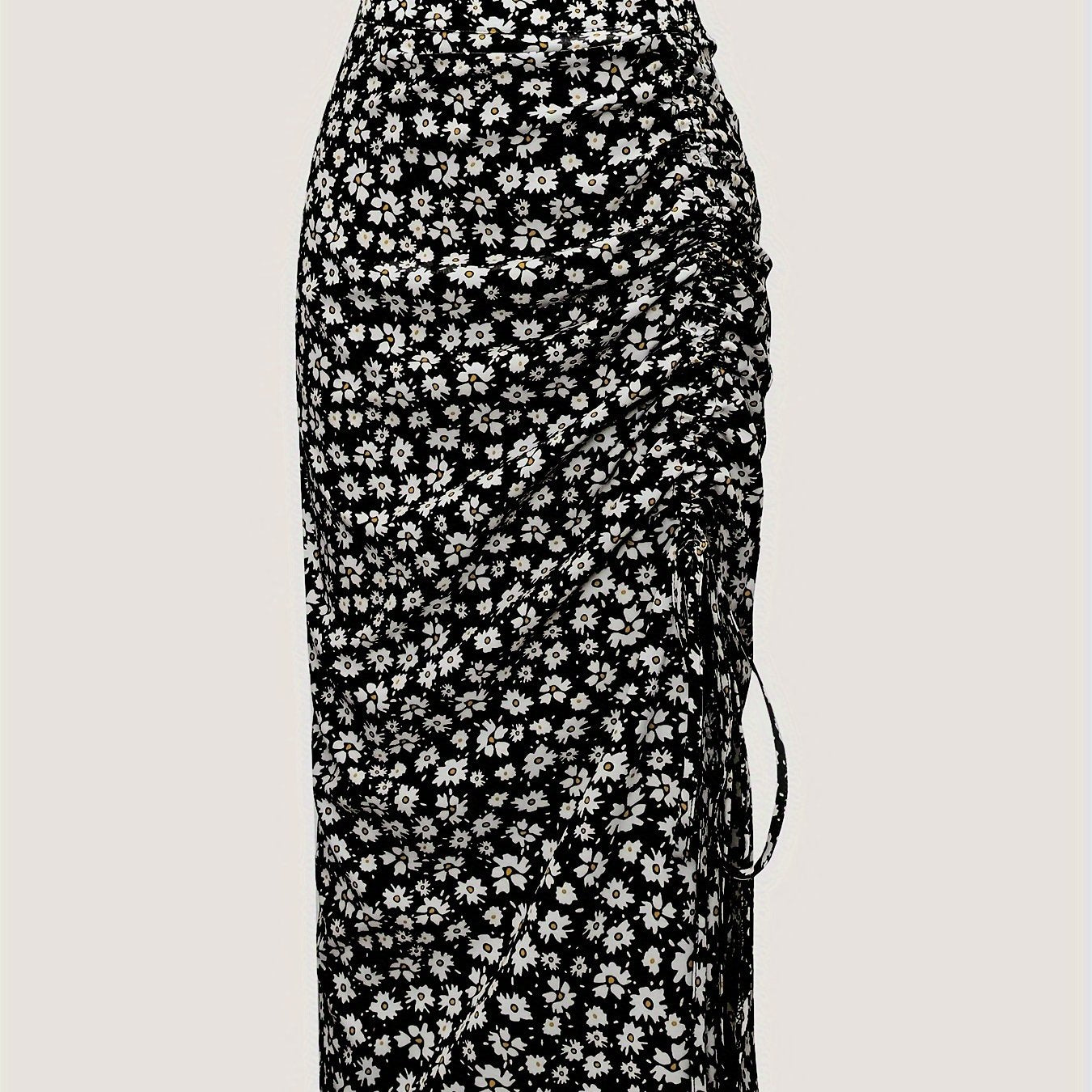 Юбка с цветочным принтом, с завязками и сборкой, юбка миди с высокой талией для весны и лета, женская одежда