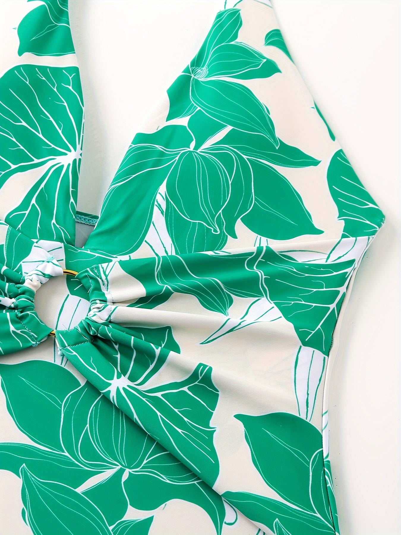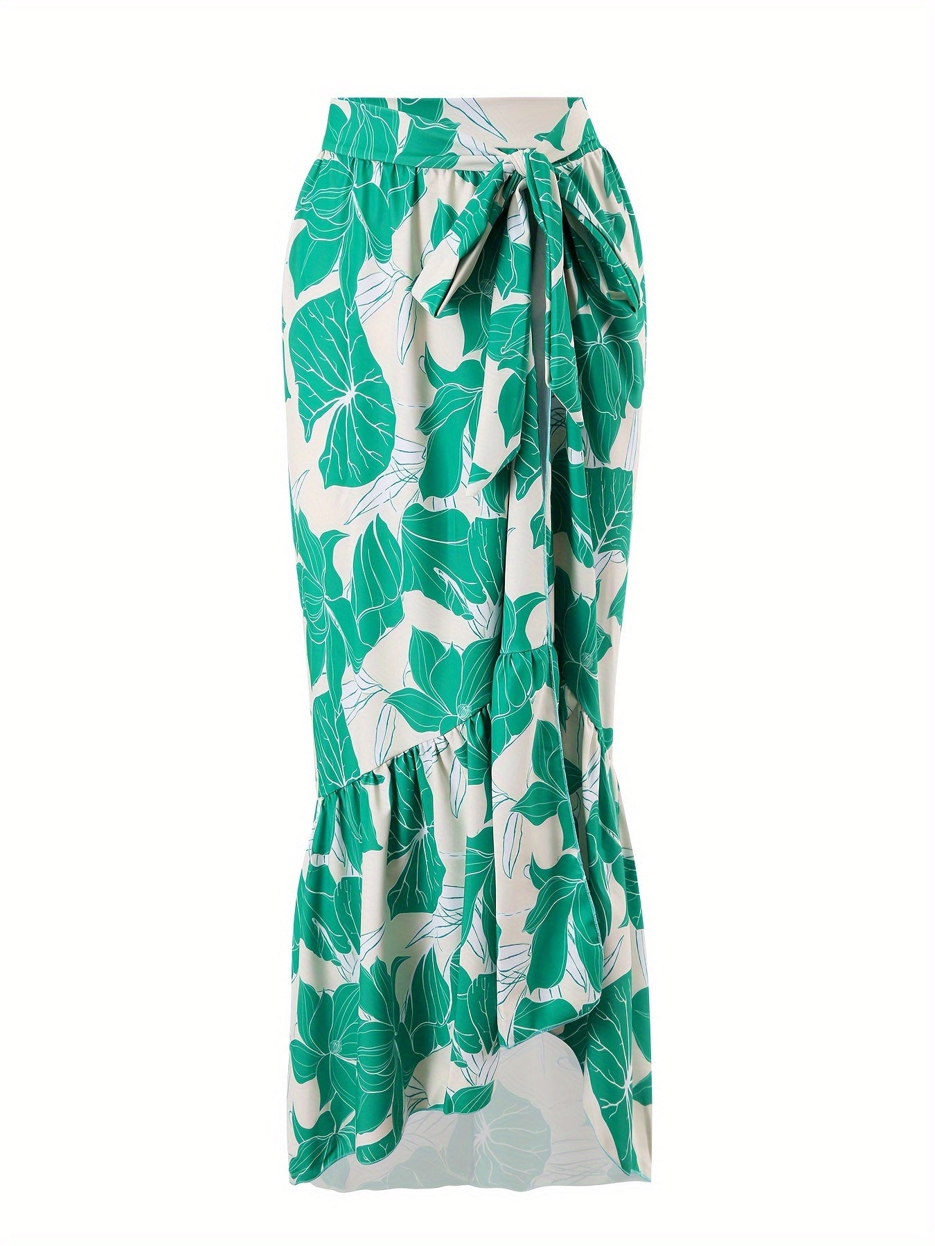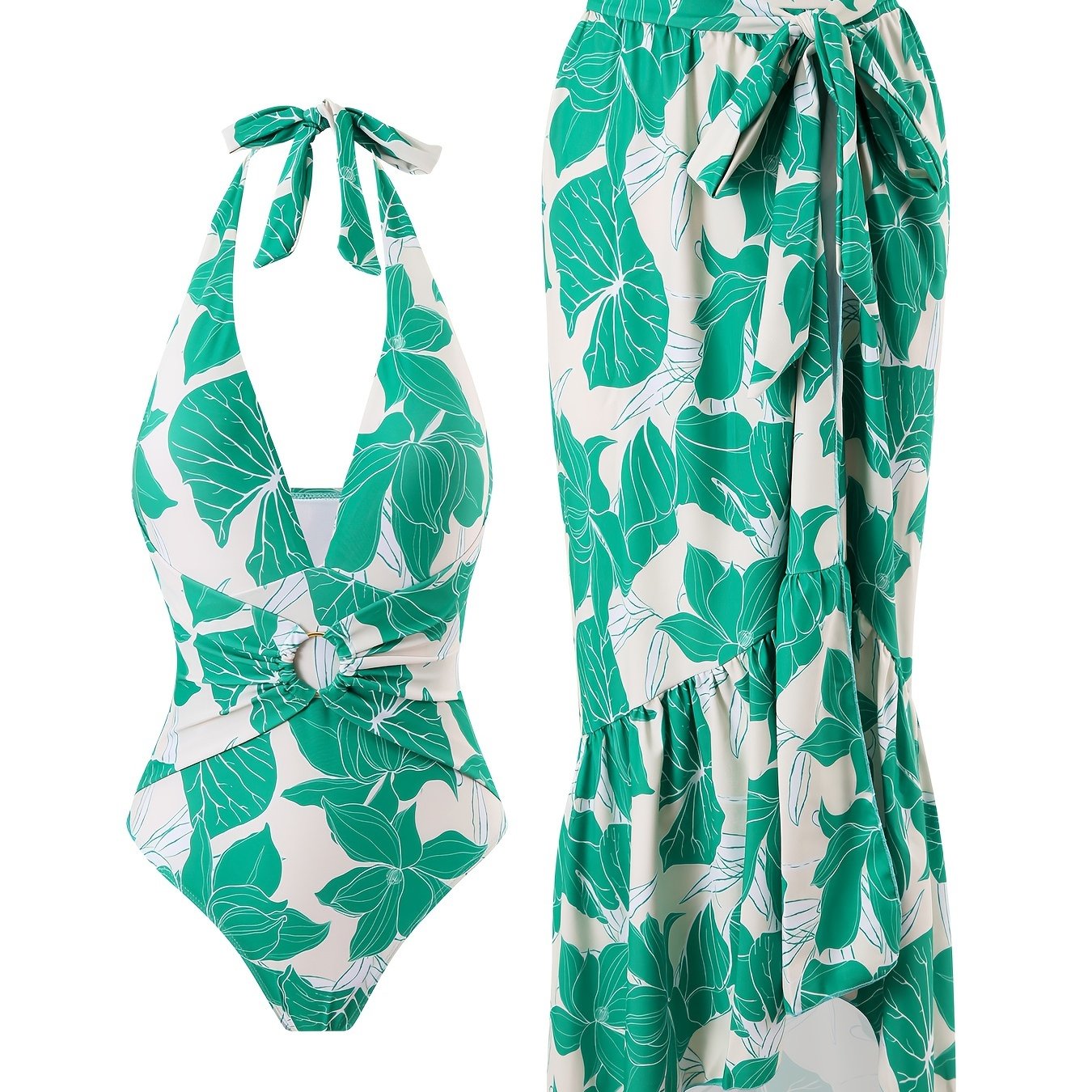 Купальник с цветочным принтом в комплекте с юбкой для пляжа - идеально подходит для отпуска и спа. Машинная стирка и эластичный.