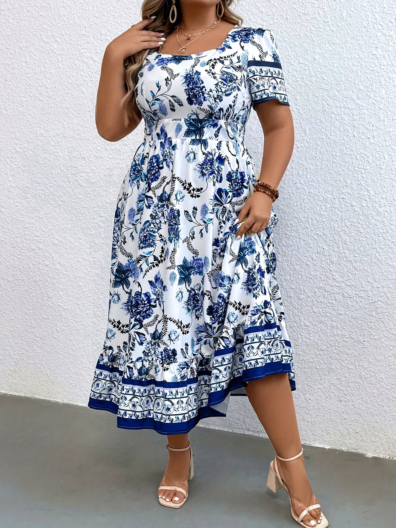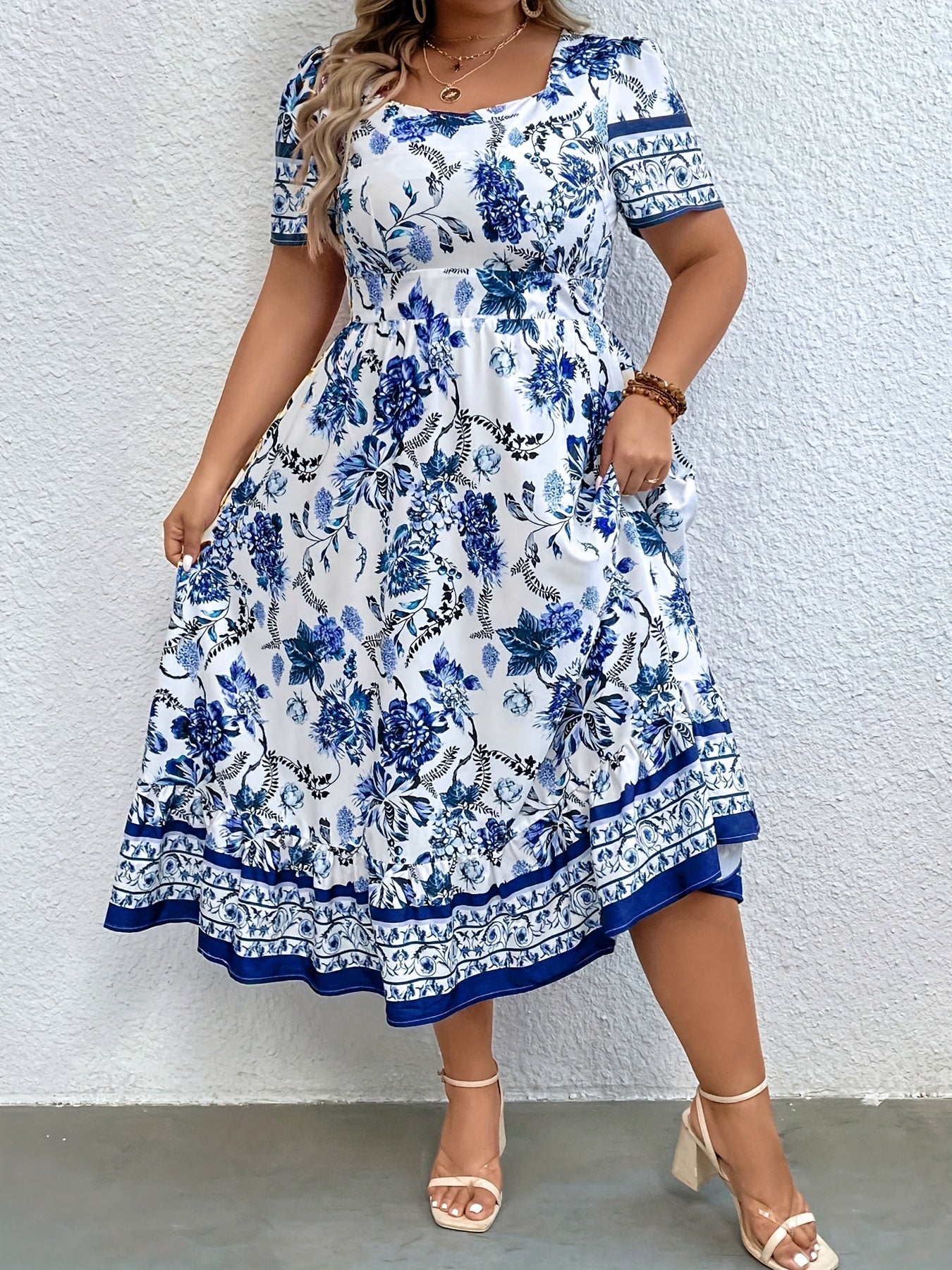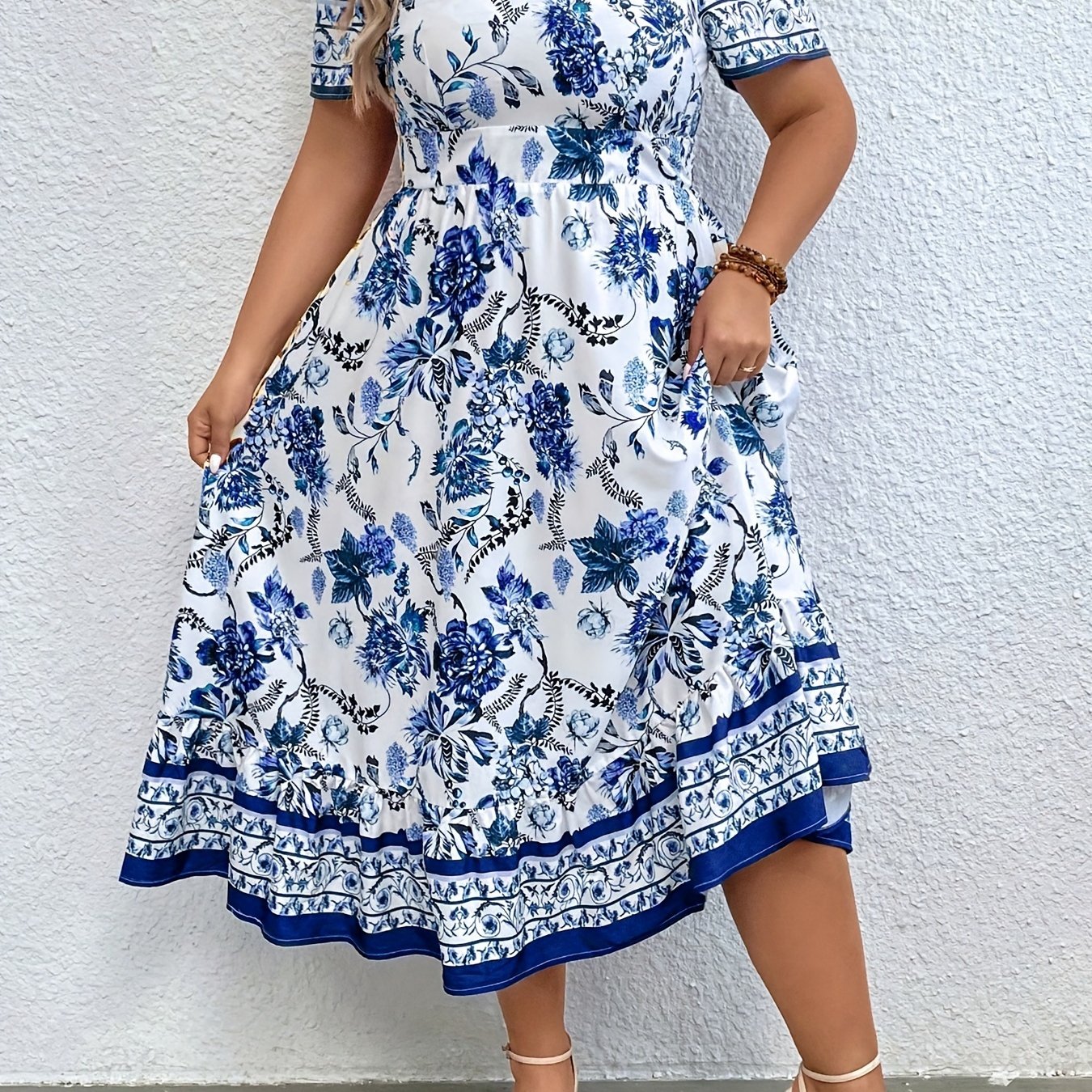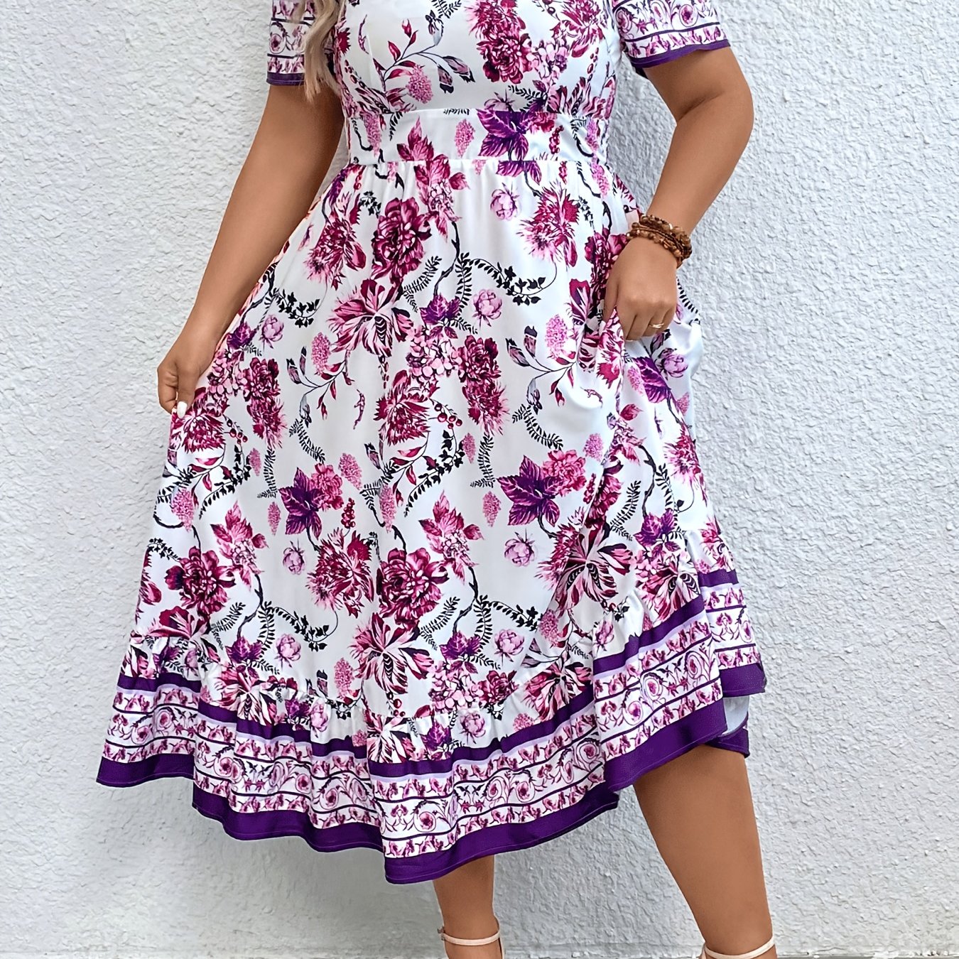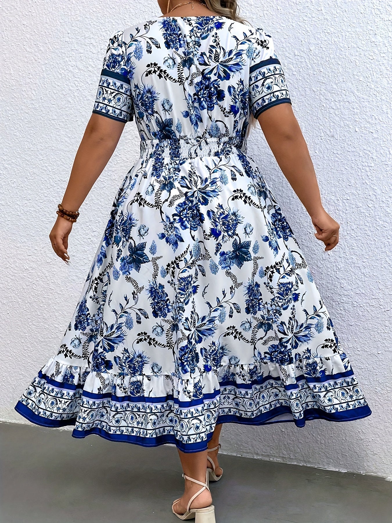 Платье с цветочным принтом большого размера с рюшей по краю и короткими рукавами, повседневное, для весны и лета