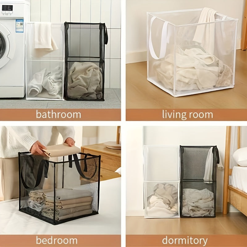 Складная корзина для грязного белья с ручками, идеальна для ванной комнаты или хранения игрушек и организации дома.