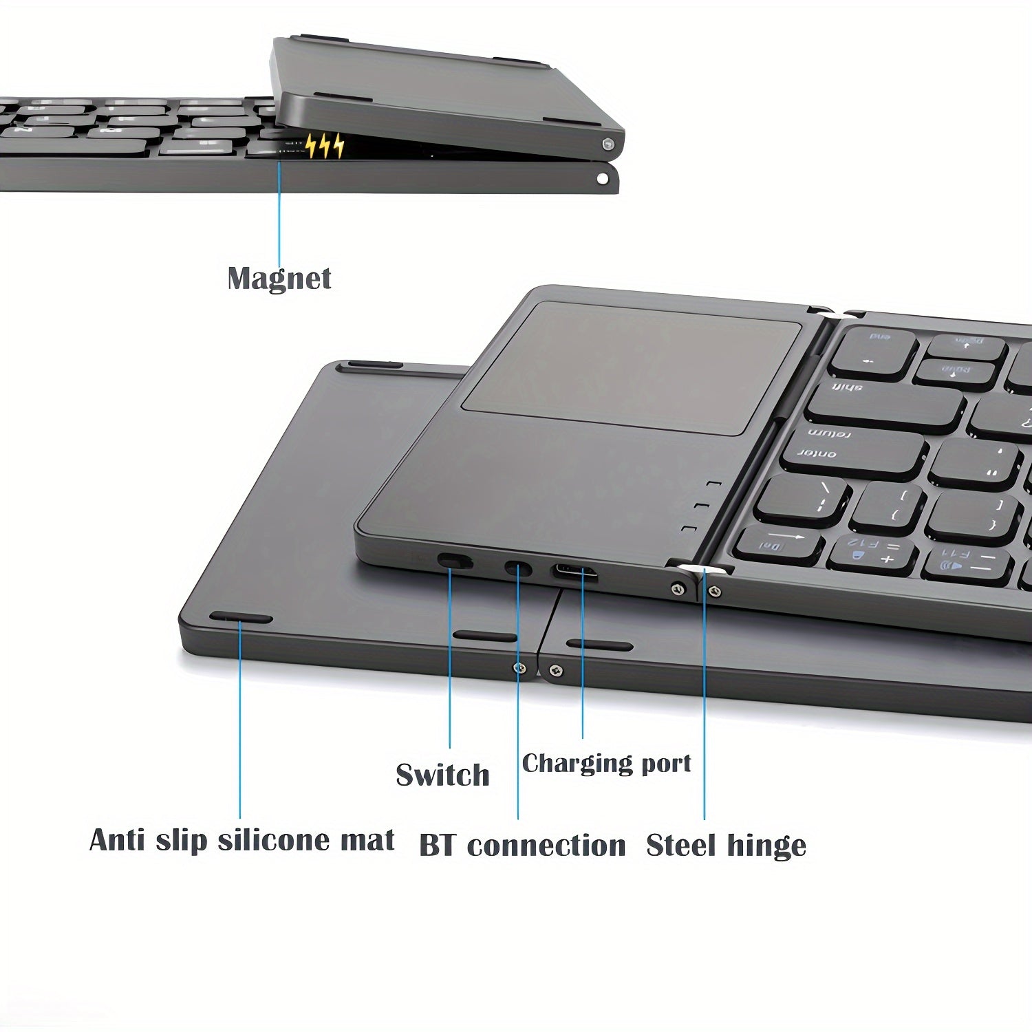 Складная беспроводная клавиатура для компьютеров, офисов и путешествий.