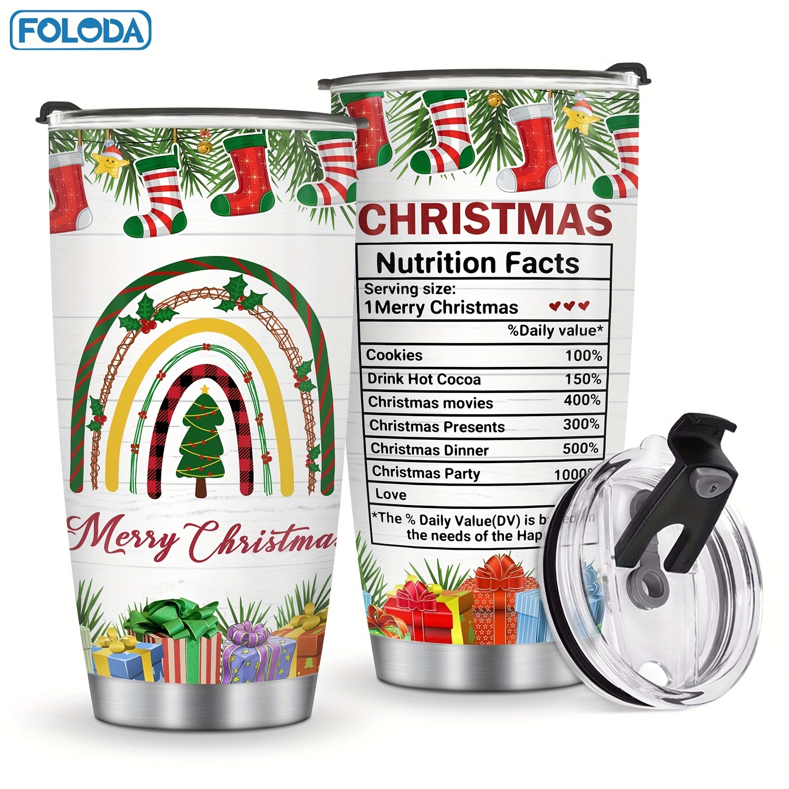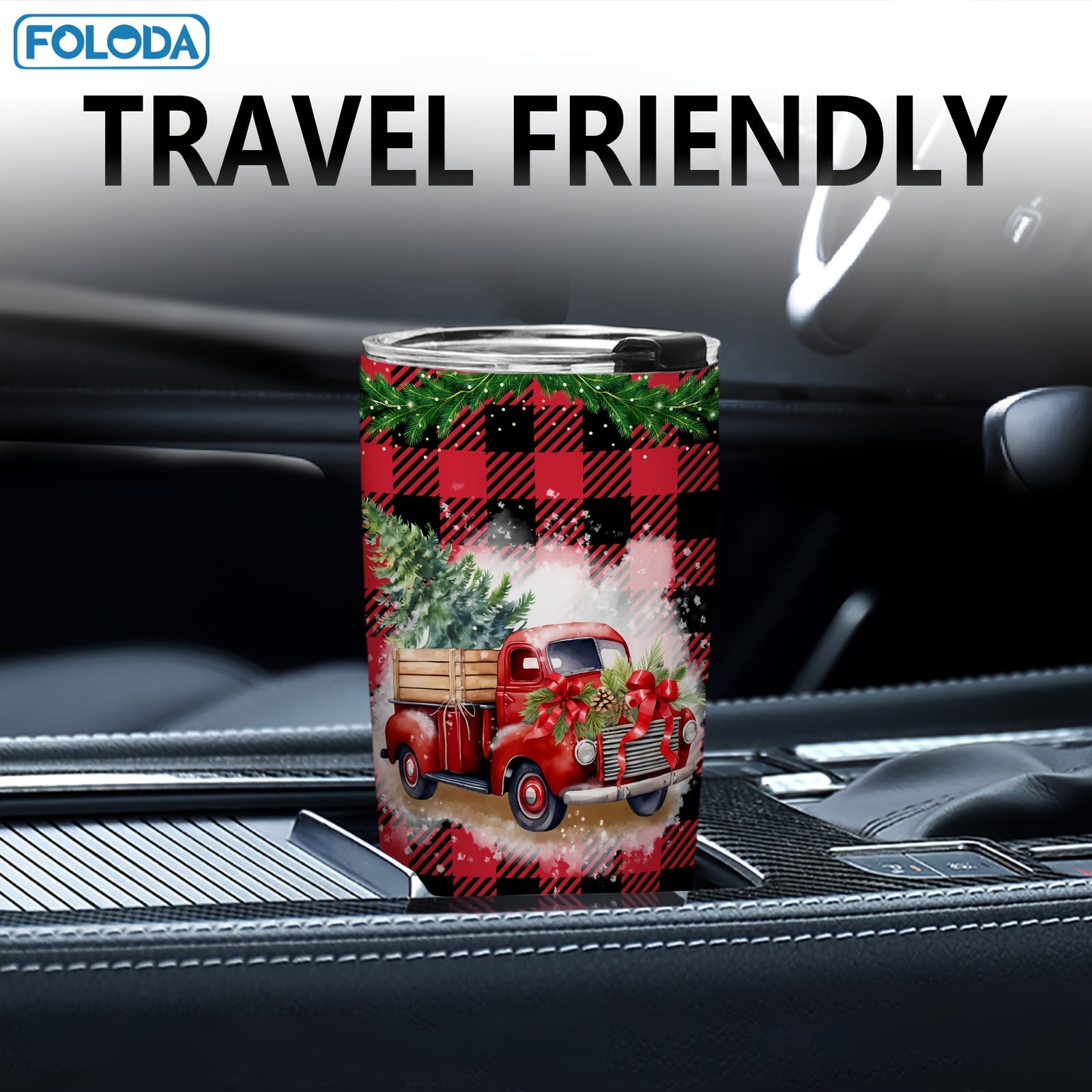 FOLODA 20oz изолированный стакан из нержавеющей стали с крышкой идеально подходит для бега и спорта. Оснащен дизайном Рождественского Красного Груза, идеально подходит для праздничных подарков.
