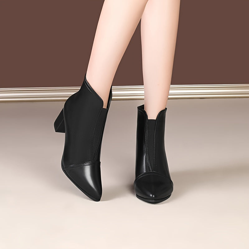 Французские черные ботильоны на среднем каблуке с заостренным носком и универсальным стилем для зимы женщин.