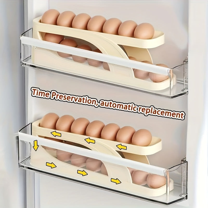 Держатель для яиц на боковой дверце холодильника с выдвижным органайзером для хранения и автоматическим лотком для кухонных принадлежностей, ящик для хранения яиц с защитой от падения для кухонного стола