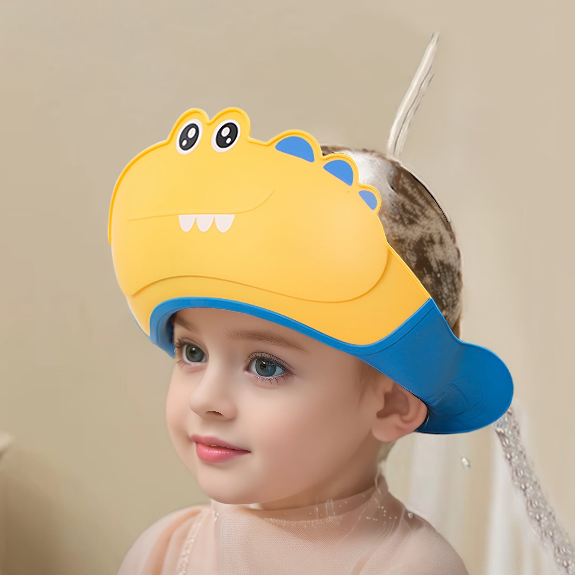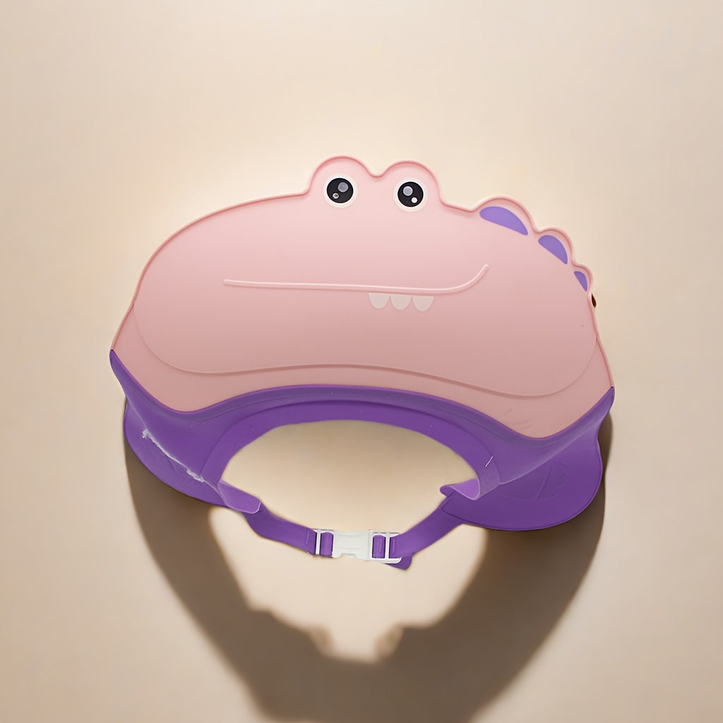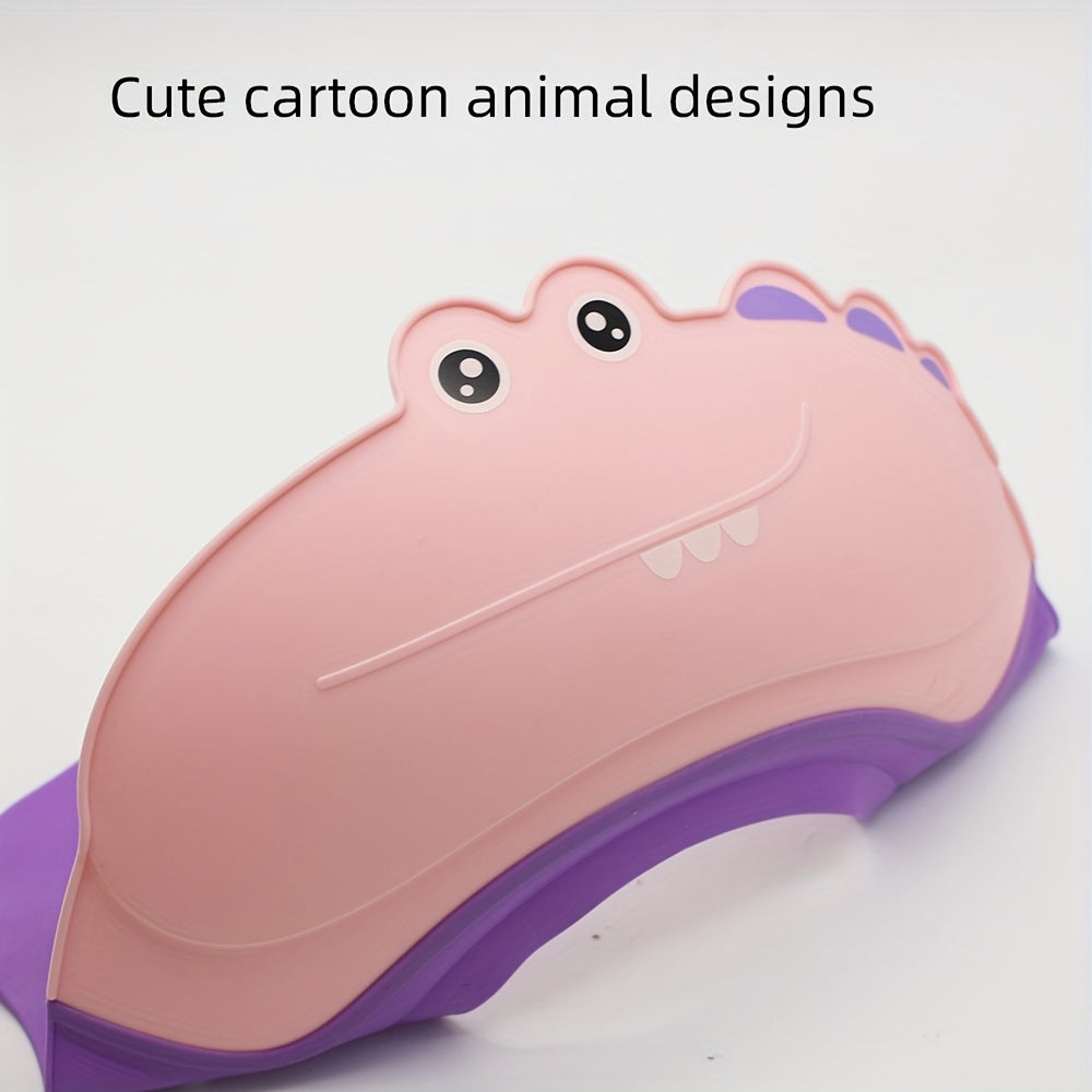 Веселый аксессуар для ванной для детей 3-12 лет: регулируемая водонепроницаемая шапочка для душа с защитой для глаз и ушей - прочный пластиковый детский дизайн с мультяшным бегемотом