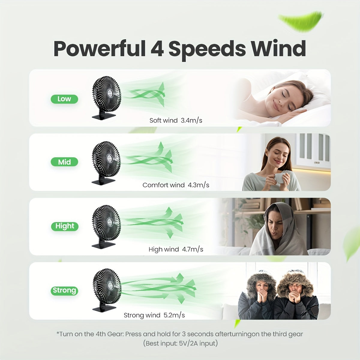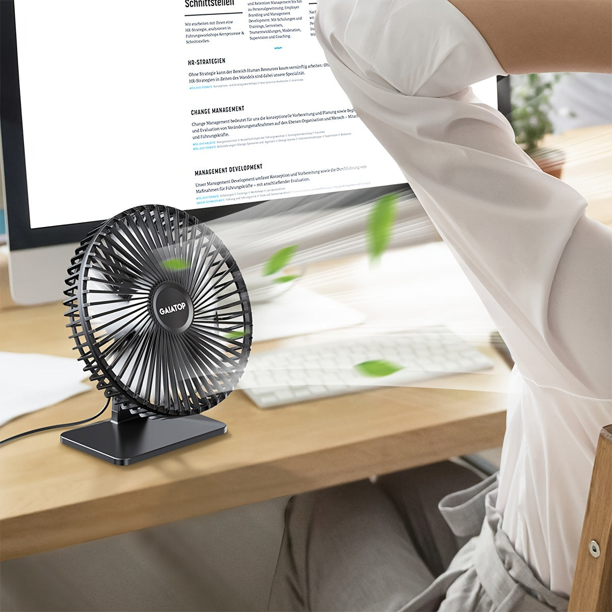Черный USB-вентилятор для стола с 3 скоростями, регулируемым вращением, компактный настольный вентилятор 19 см