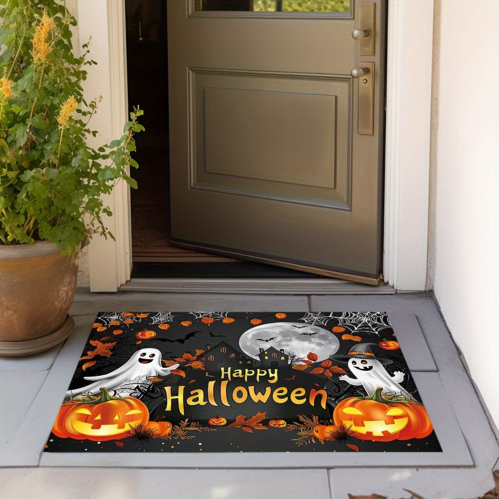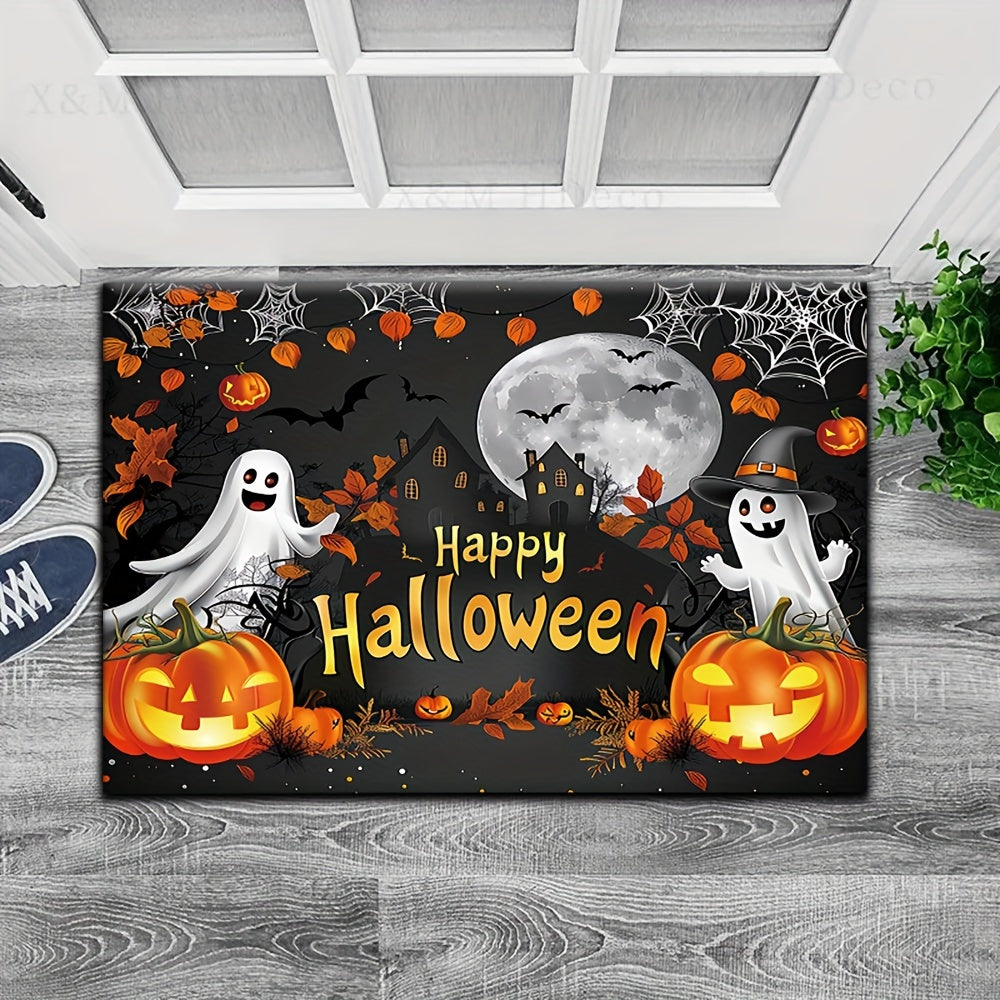 Коврик на Хэллоуин с привидениями, тыквами и листьями, нескользящий, моющийся в машине, уличное украшение