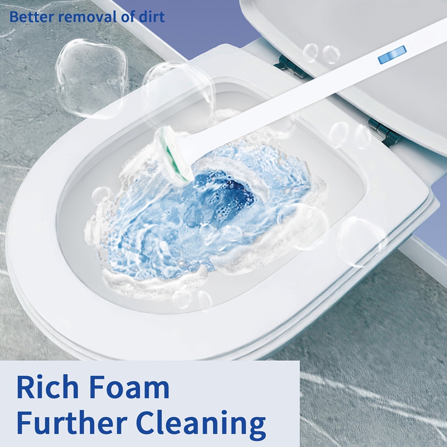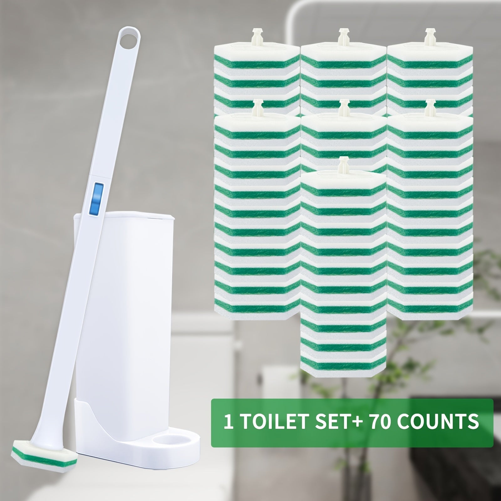 Получите универсальный набор для чистки туалета с одноразовой губкой, чистящей палкой и ведром для хранения. Специальная губка быстро образует пену и усиливает трение для тщательной чистки.